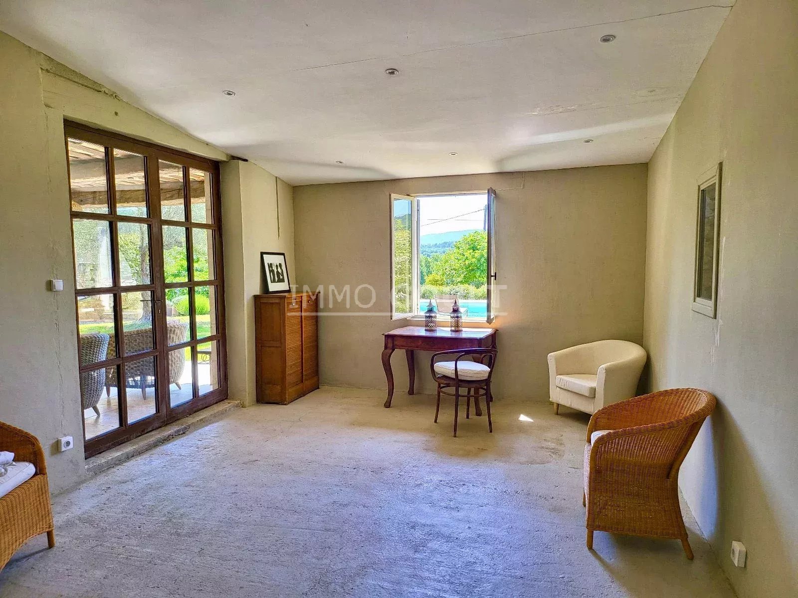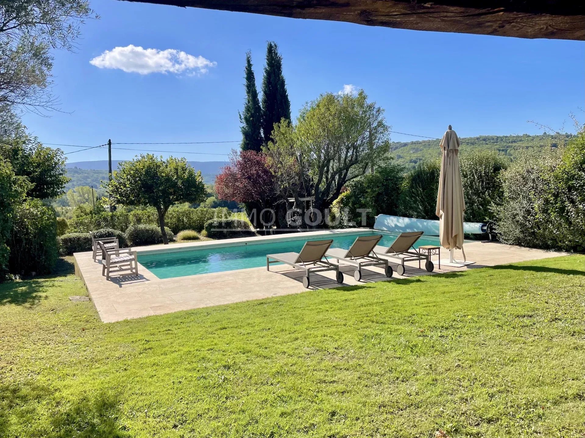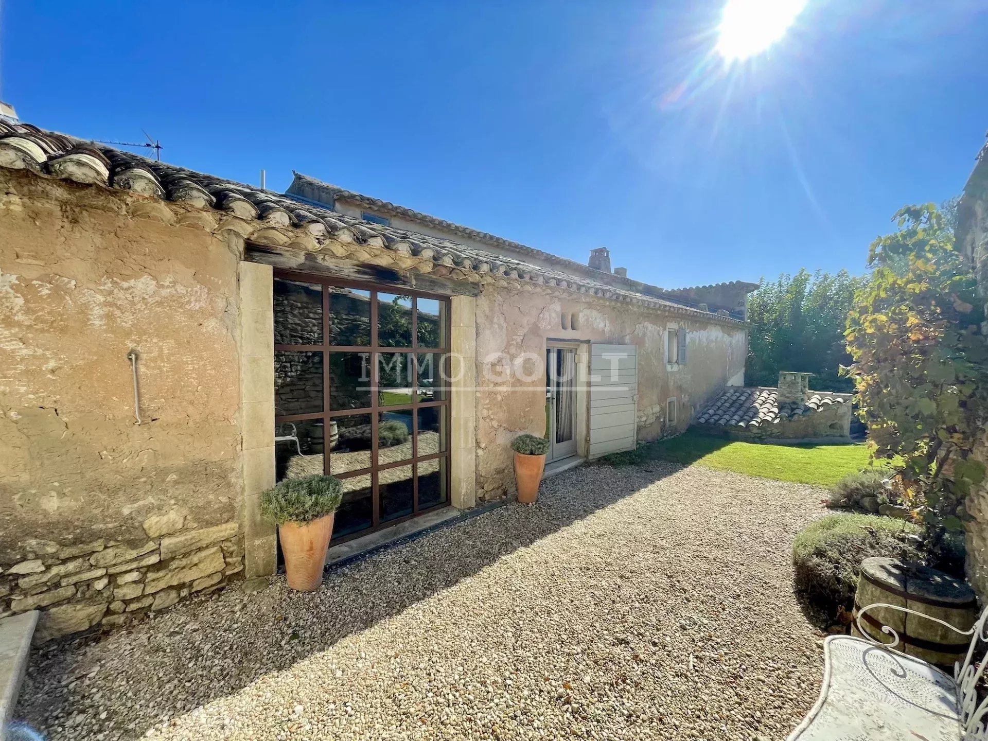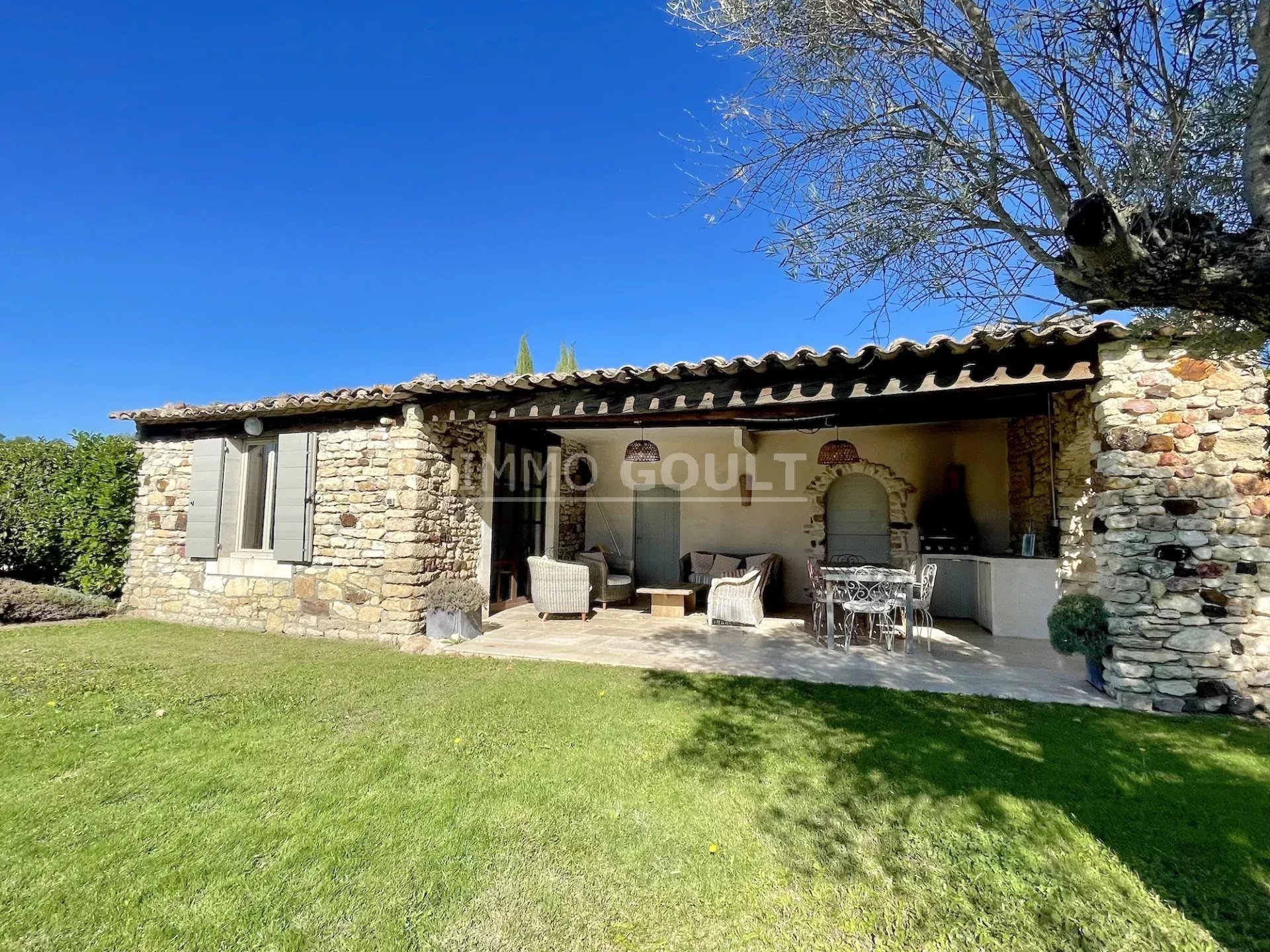 À quelques minutes du village de Goult, dans un environnement agricole préservé, bénéficiant de belles vues, charmant Mas du 19ème d’une surface habitable de 250m2 environ.