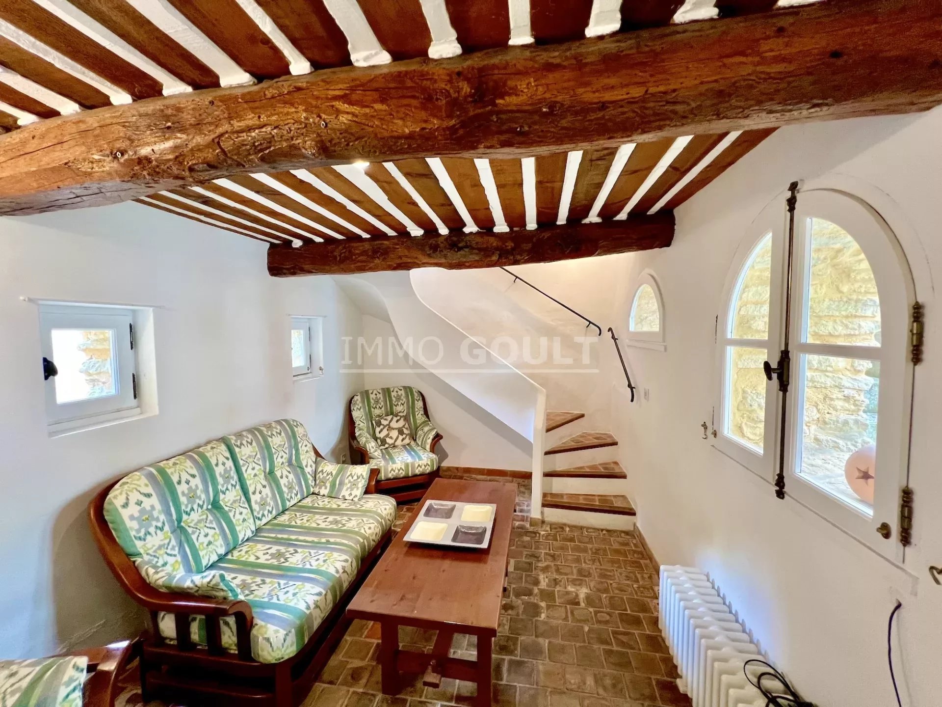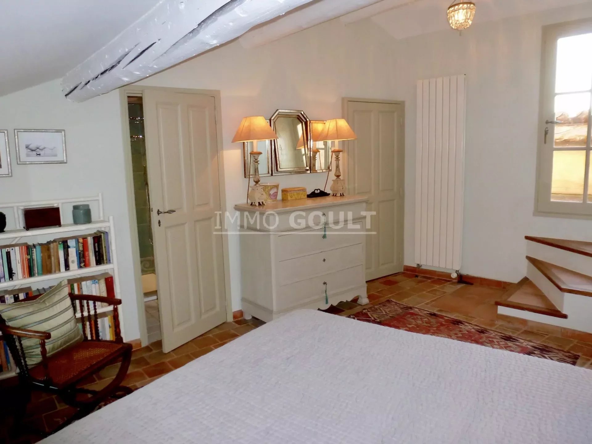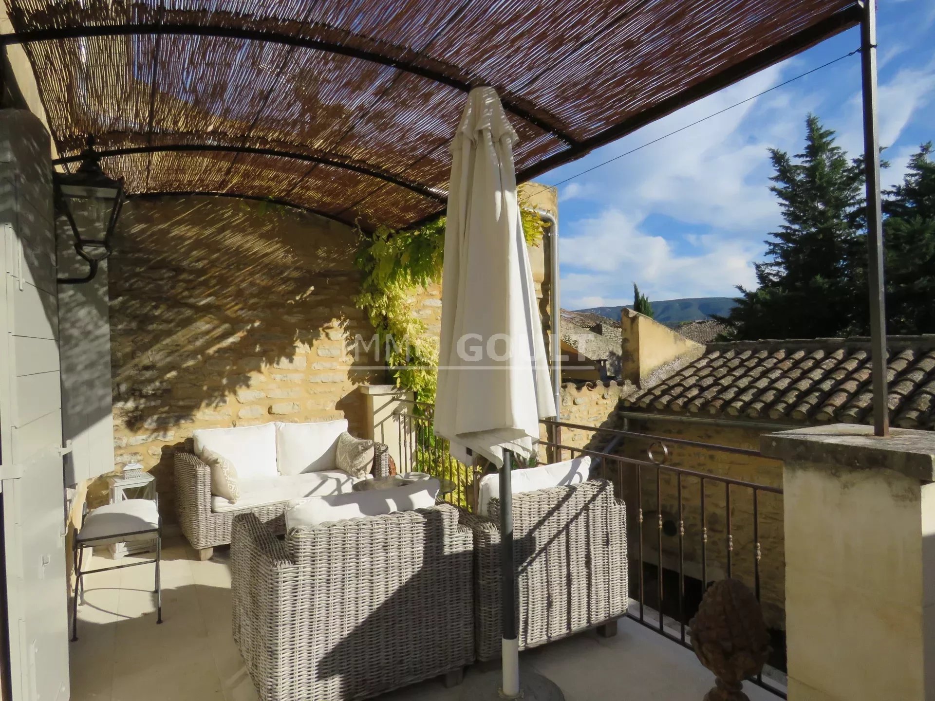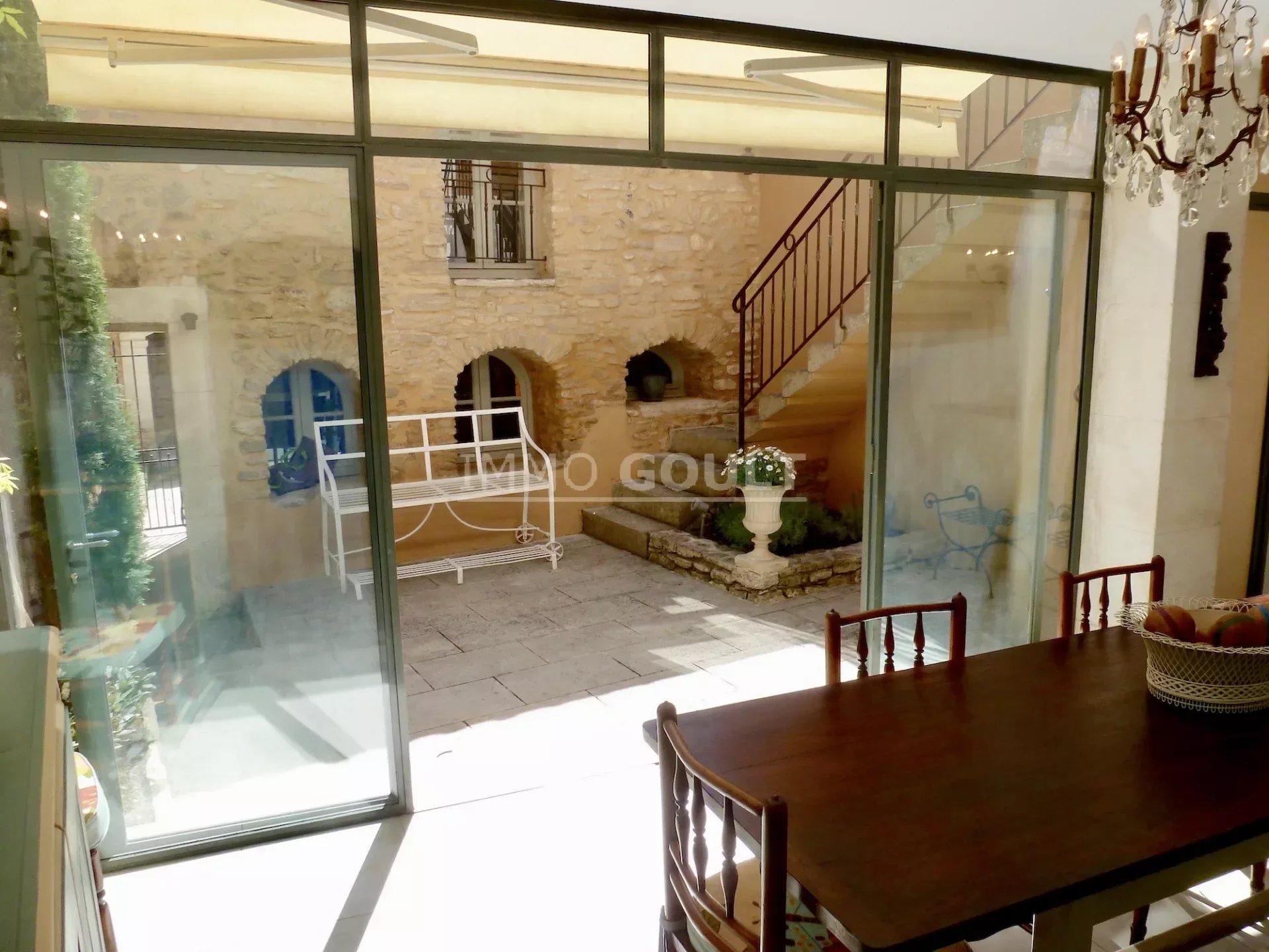 L'agence immobilière Immo Goult vous propose à la vente dans le parc du Luberon : Au coeur de Goult, un des villages les plus réputés et authentiques du Luberon, magnifique maison parfaitement restaurée d’une surface habitable de 160 m2 environ. Deux cours séparées dont une avec la bassin et deux terrasses avec vue dont une avec tonnelle agrémentent la maison et offrent de beaux espaces extérieurs de vie. Idéalement située dans le coeur du village et de tous ses commerces, tout en étant au calme, c’est une maison bénéficiant d’une restauration de qualité, aux prestations raffinées, facile à vivre du fait de son ascenseur. Produit rare, à visiter !!