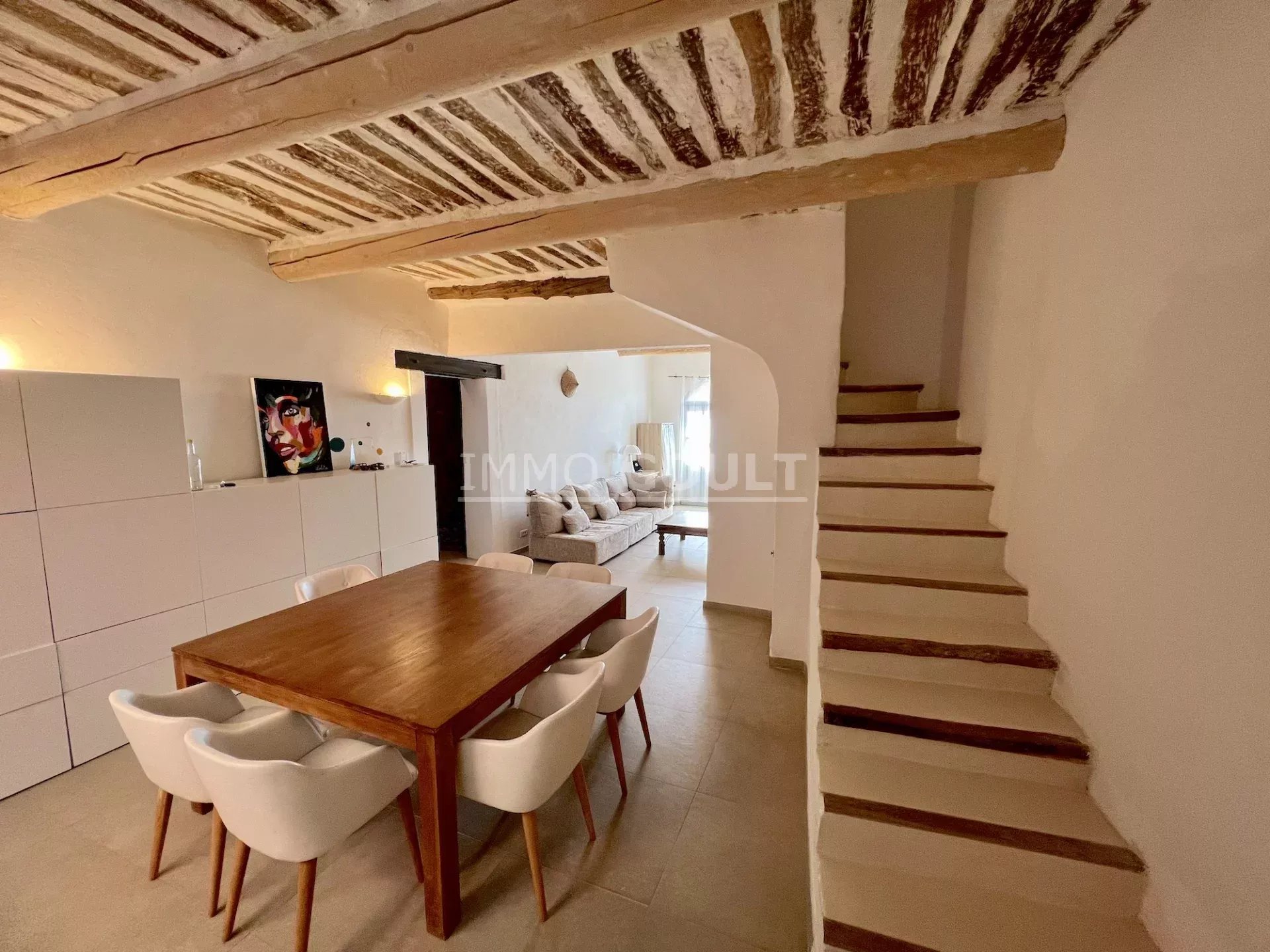 À Roussillon, village classé du Luberon, bénéficiant d’une belle vue, charmante maison, parfaitement restaurée,d’une surface habitable de 120m2 environ. Une cour de 30m2 environ offre un espace extérieur et une grande cave de 20m2 environ aménageable complète l’ensemble. Beaucoup d’âme et de charme pour cette typique maison de village lumineuse, parfaitement entretenue, confortable et conviviale. La proximité immédiate de toutes les commodités du village tout en étant à l’écart du flot touristique.