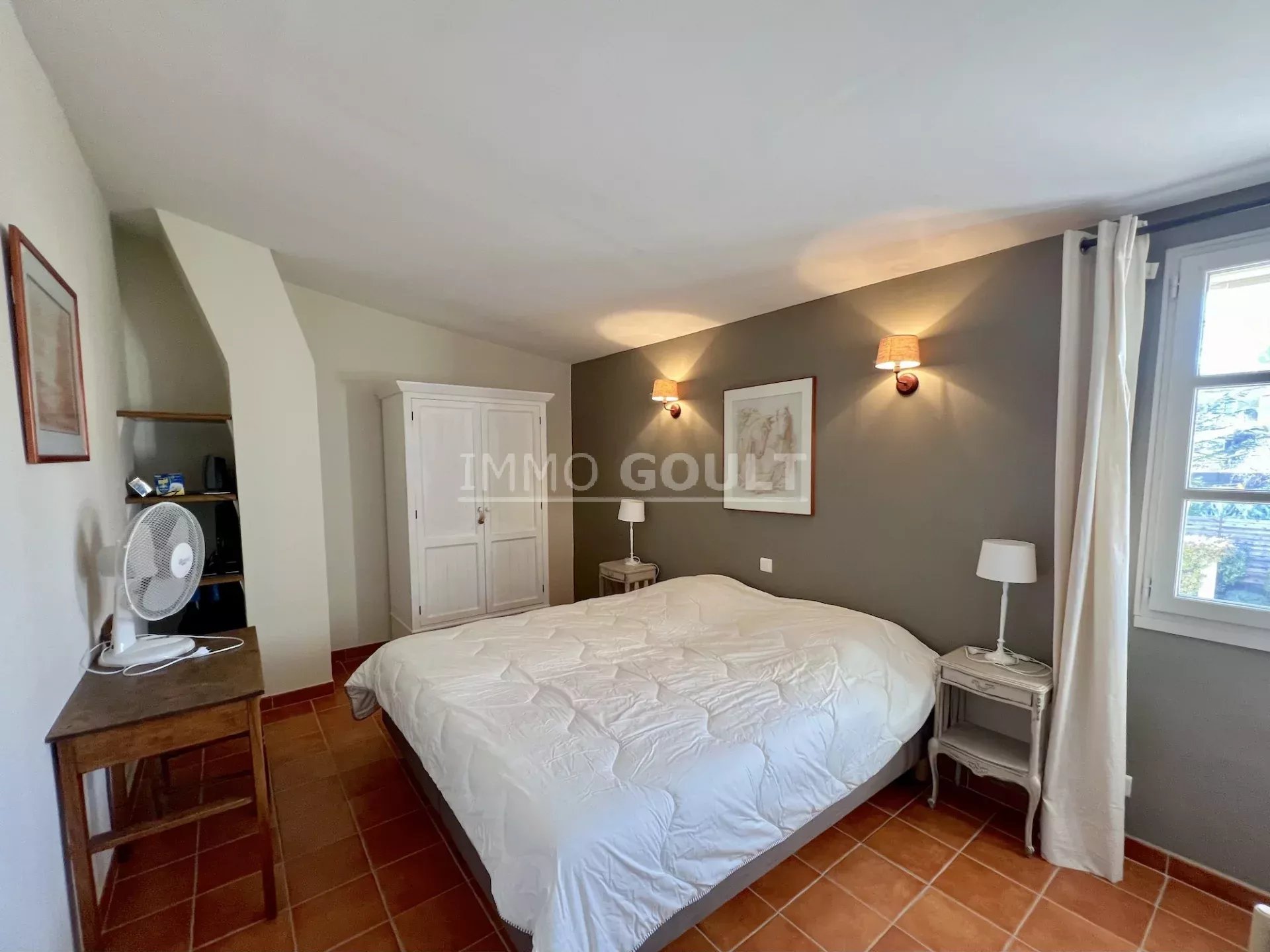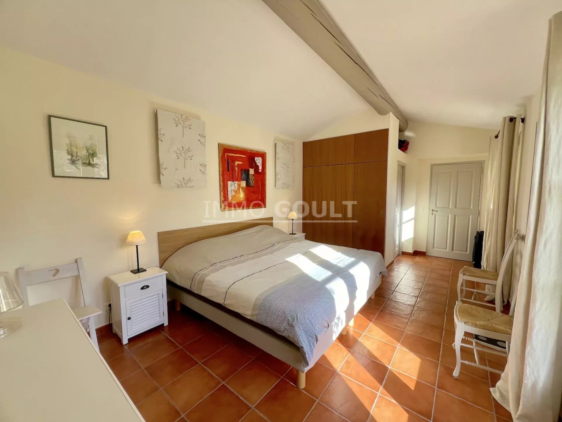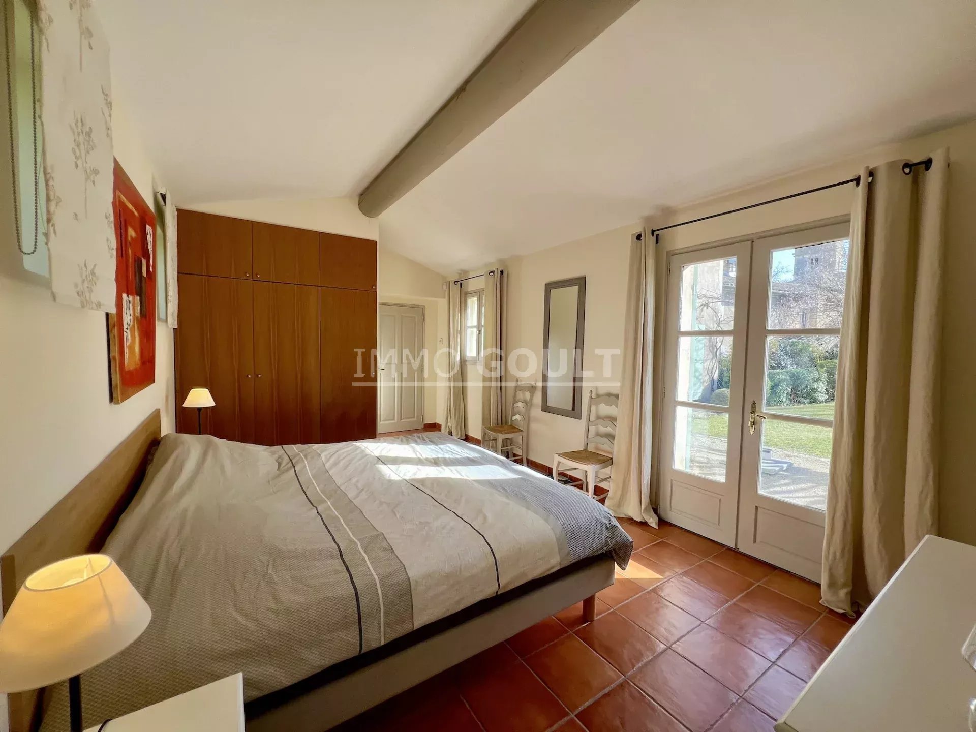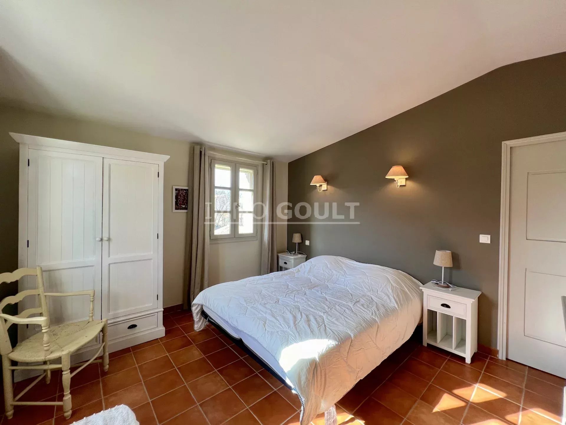 À proximité immédiates de tous les commerces de Goult tout en étant au calme, c’est une maison lumineuse, confortable, facile à vivre, parfaitement entretenue et bénéficiant d’un des plus grand jardin du village ; la campagne dans le village !! Son orientation offre de belles vues, tant sur le château, sur le Luberon, les Monts du Vaucluse et le Mont Ventoux. Le garage double est également un véritable privilège pour une maison de village.