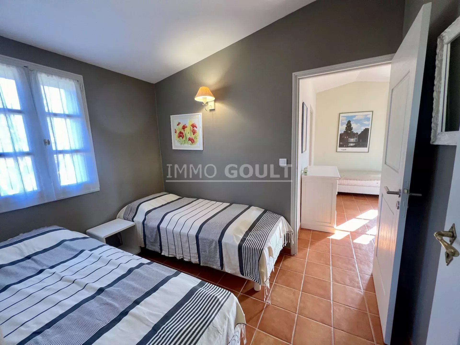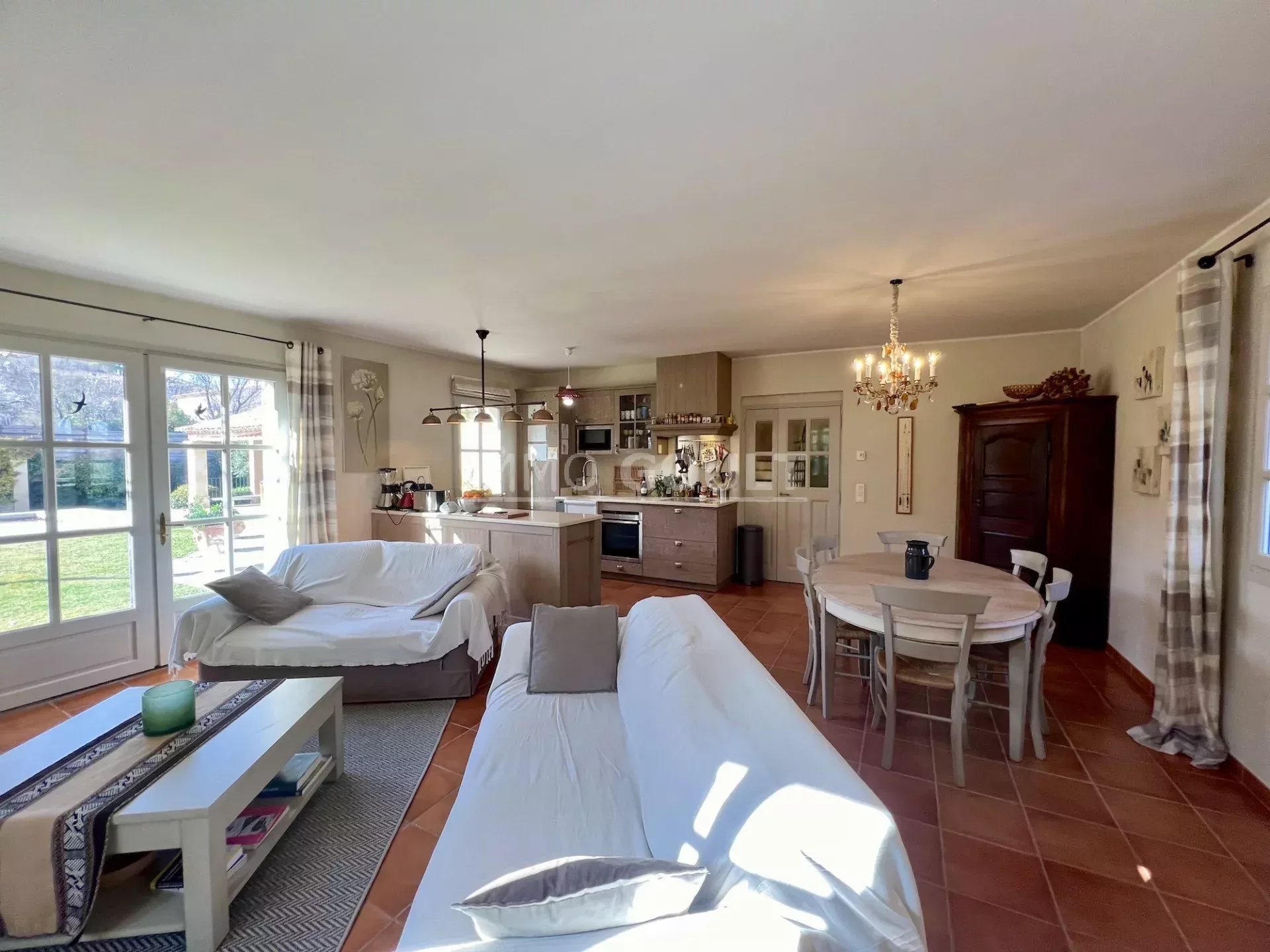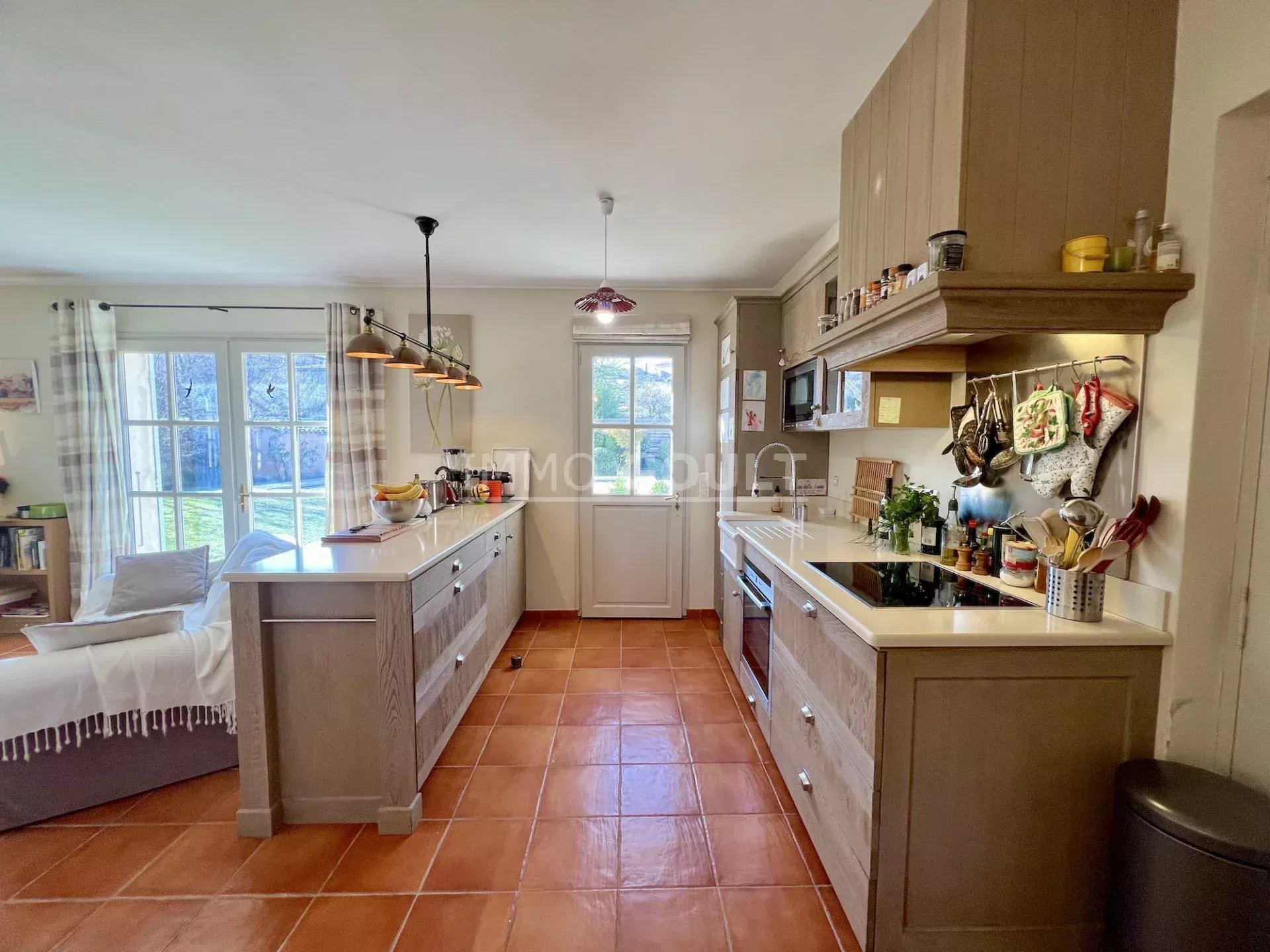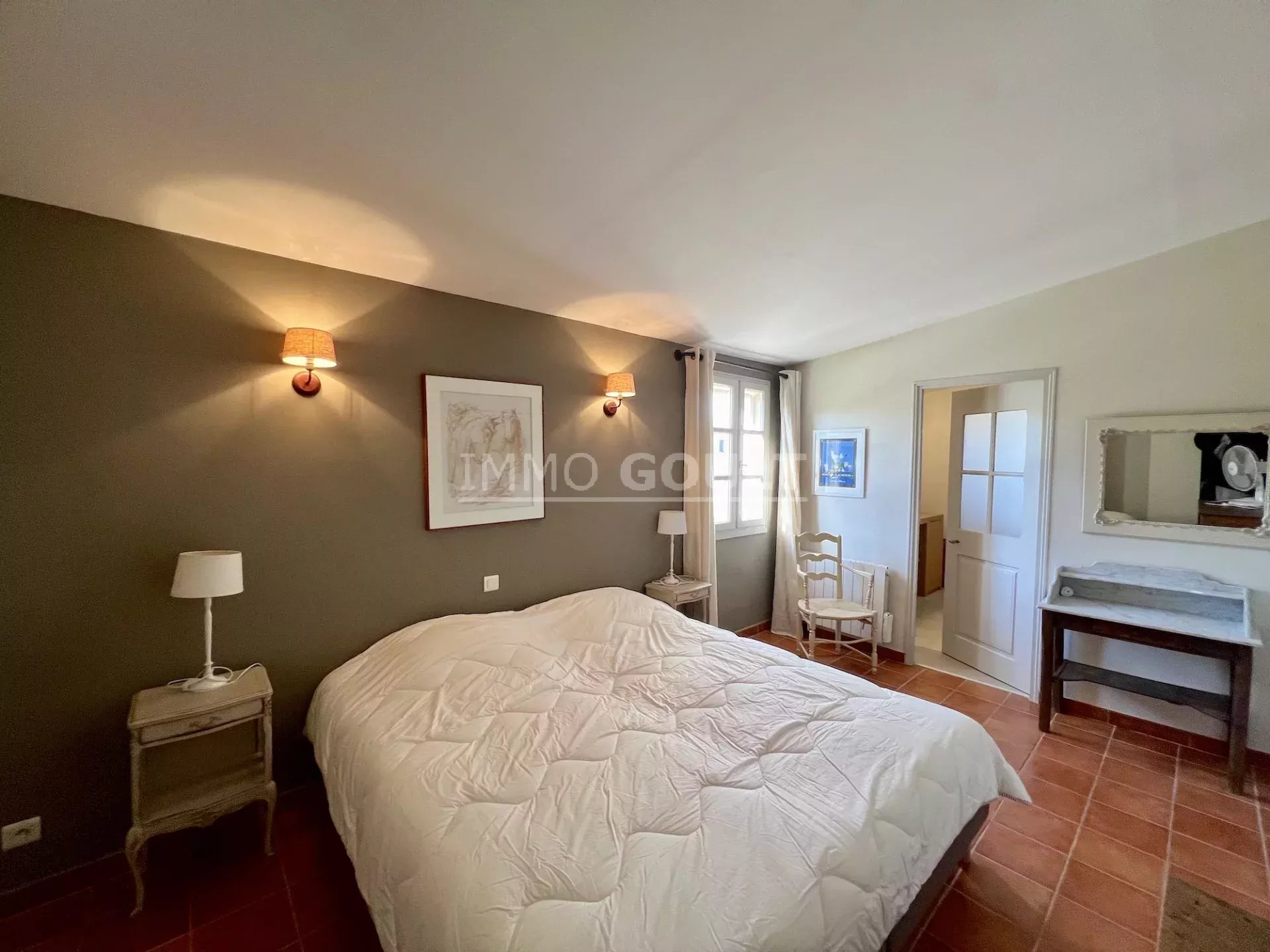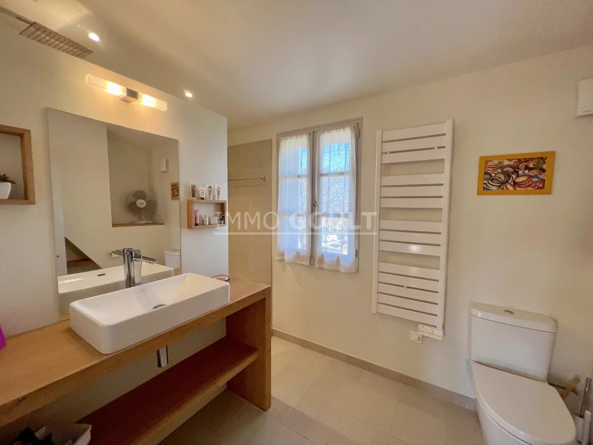 À proximité immédiates de tous les commerces de Goult tout en étant au calme, c’est une maison lumineuse, confortable, facile à vivre, parfaitement entretenue et bénéficiant d’un des plus grand jardin du village ; la campagne dans le village !! Son orientation offre de belles vues, tant sur le château, sur le Luberon, les Monts du Vaucluse et le Mont Ventoux. Le garage double est également un véritable privilège pour une maison de village.
