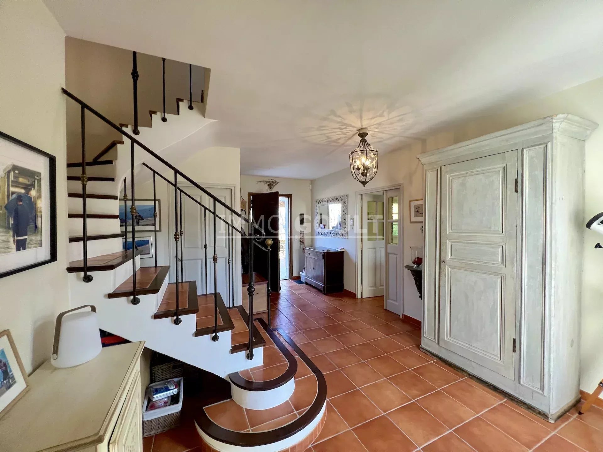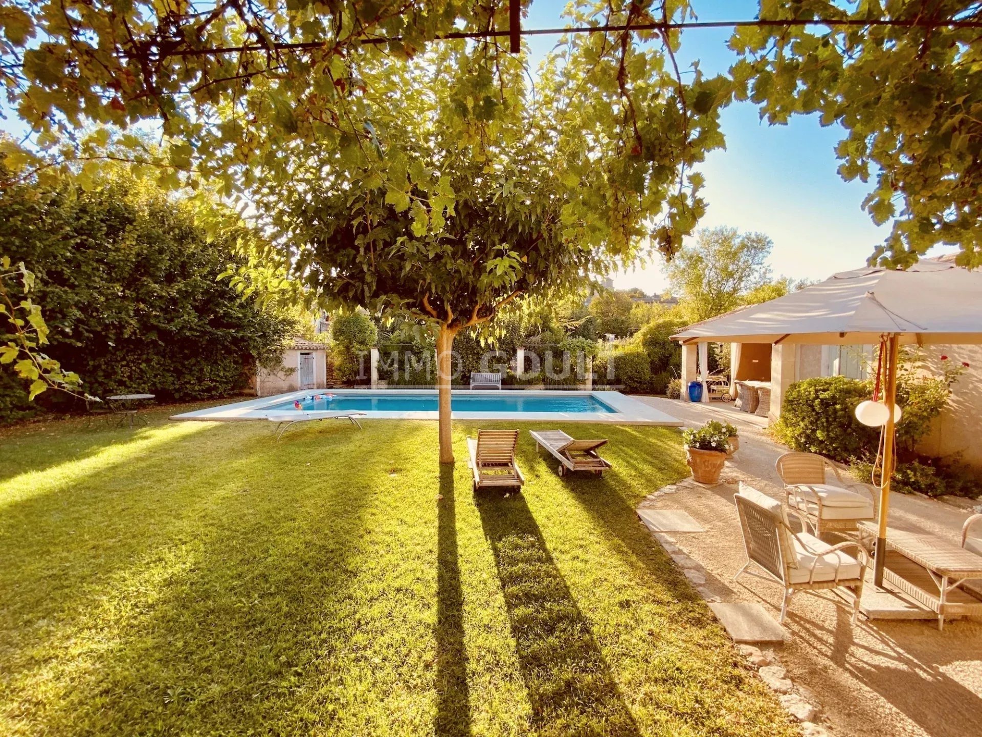 Le jardin clos de plus de 900m2 est joliment paysager d’essences provençales. Plusieurs terrasses dont une avec tonnelle, une avec fontaine, une piscine chauffée et sécurisée par un rideau électrique et un pool-house agrémentent la maison. Un grand garage de 48m2, un local technique piscine et un second local de rangement complètent l’ensemble.