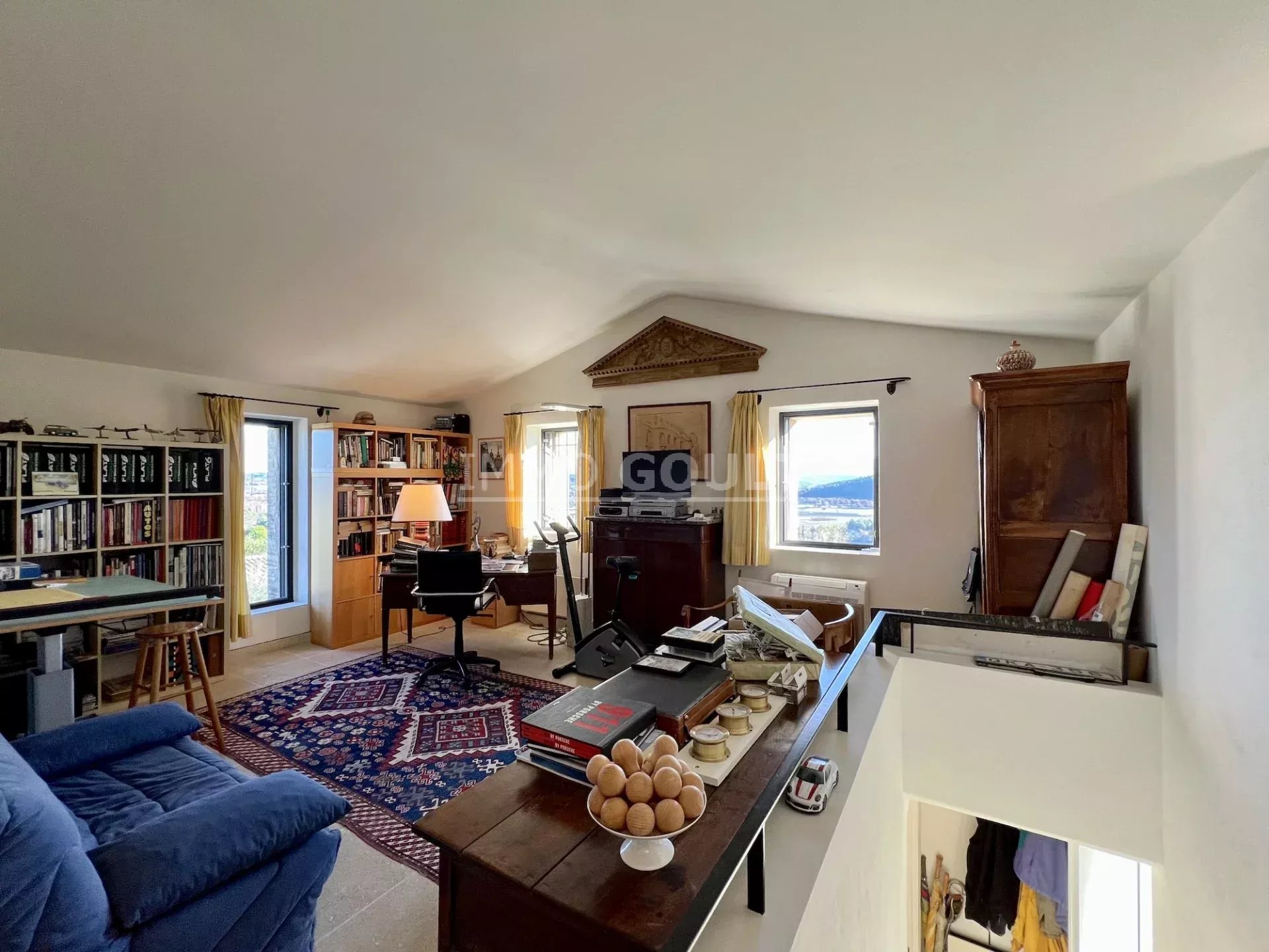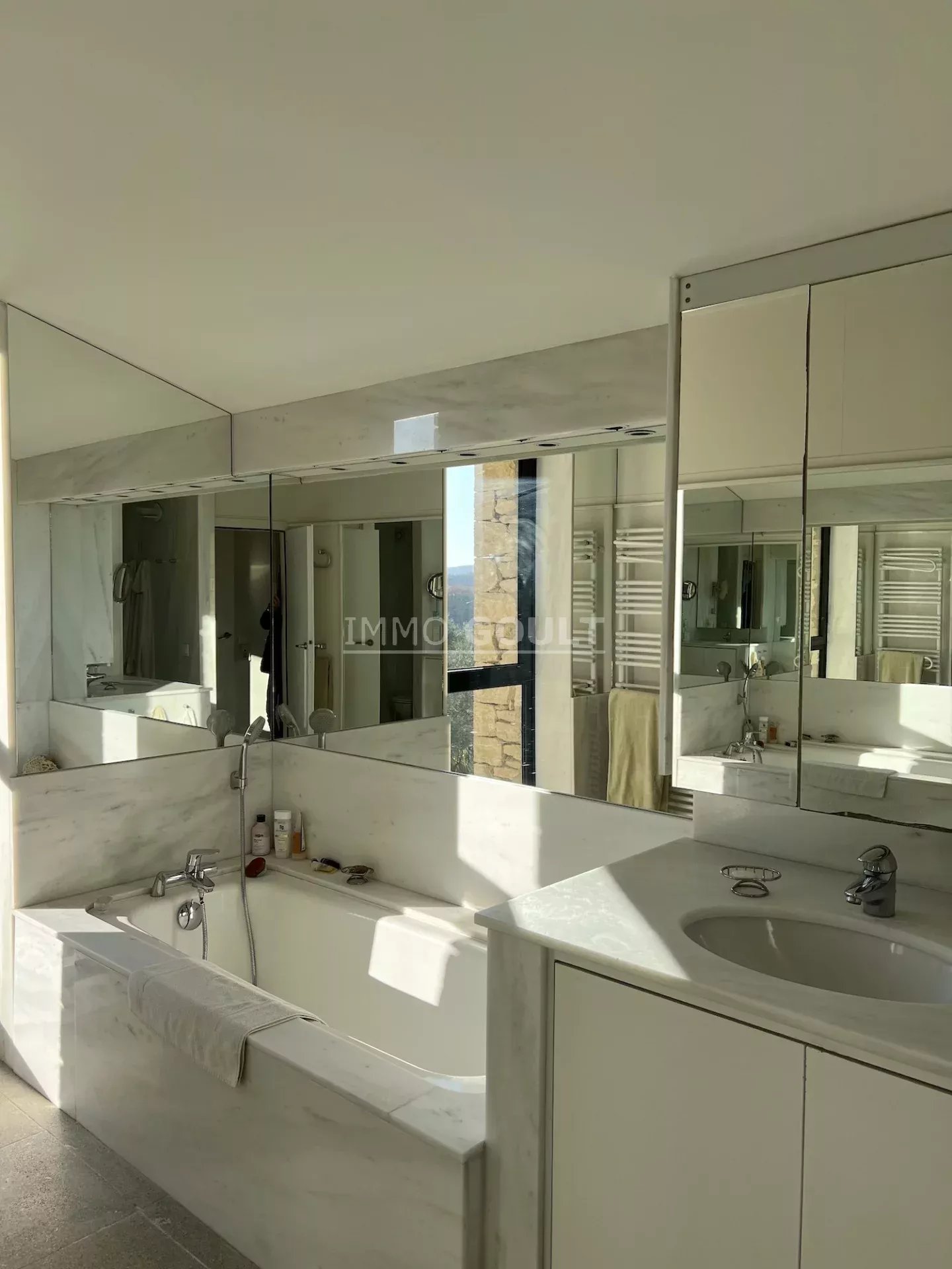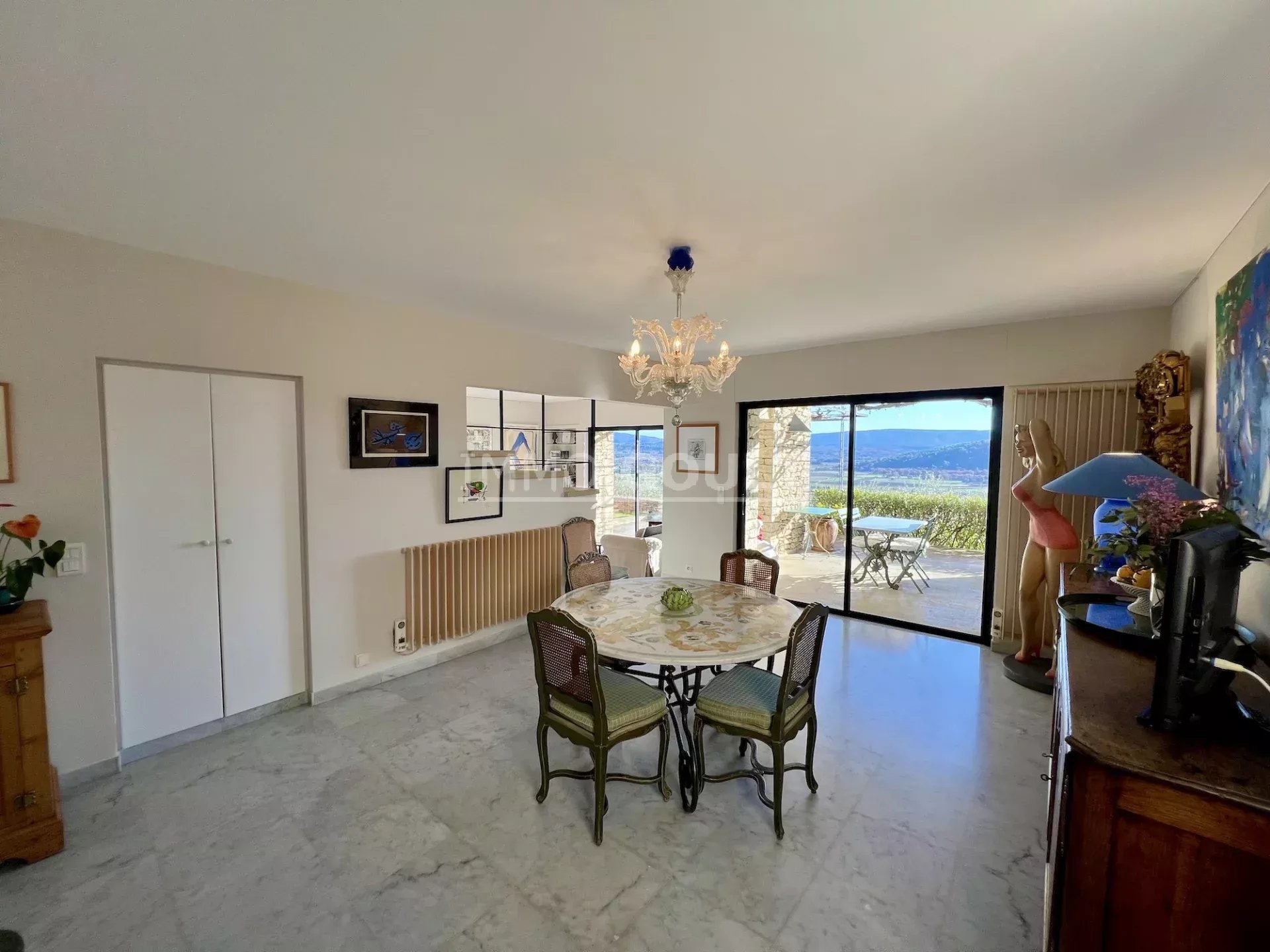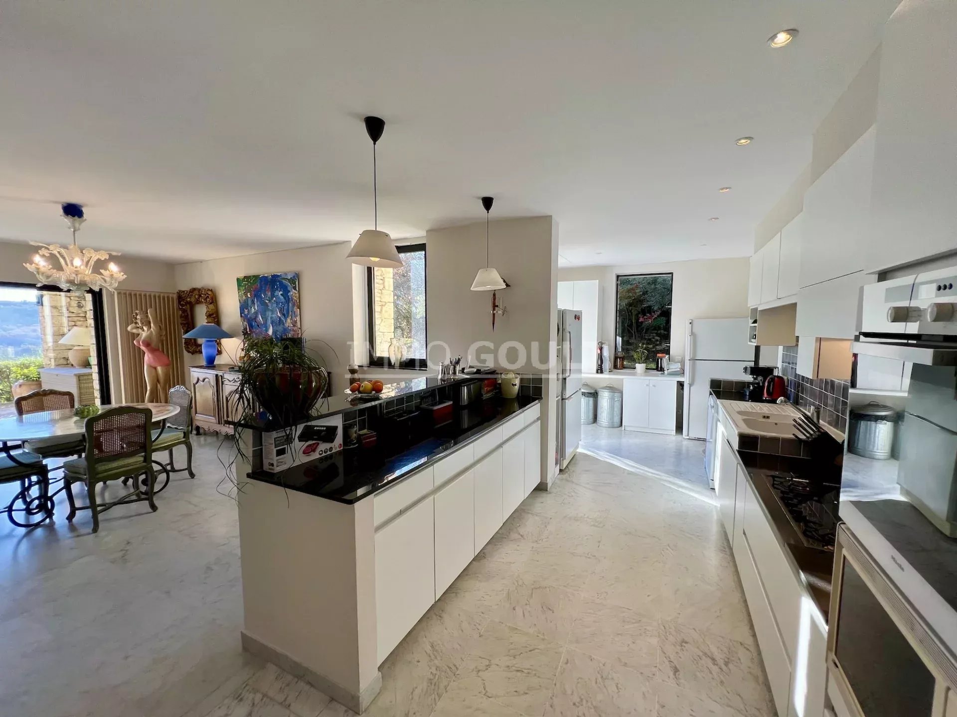 L'agence Immo Goult vous propose à la vente à l’orée du village de Gordes, bénéficiant de magnifiques vue sur le Luberon et ses villages, très belle propriété d’une surface habitable de 334m2 environ plus dépendances de 200m2 environ. Le parc de 5755m2 est planté d’essences provençales notamment d’une oliveraie (130 pieds), de fruitiers. De nombreuses terrasses, une piscine miroir de 12m x 6m avec son pool-house parfaitement équipée (cuisine, cheminée) agrémentent la propriété. Particulièrement lumineuse, de style contemporain, c’est une propriété très confortable aux prestations raffinées.