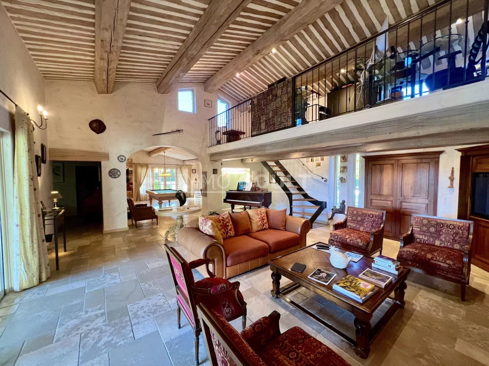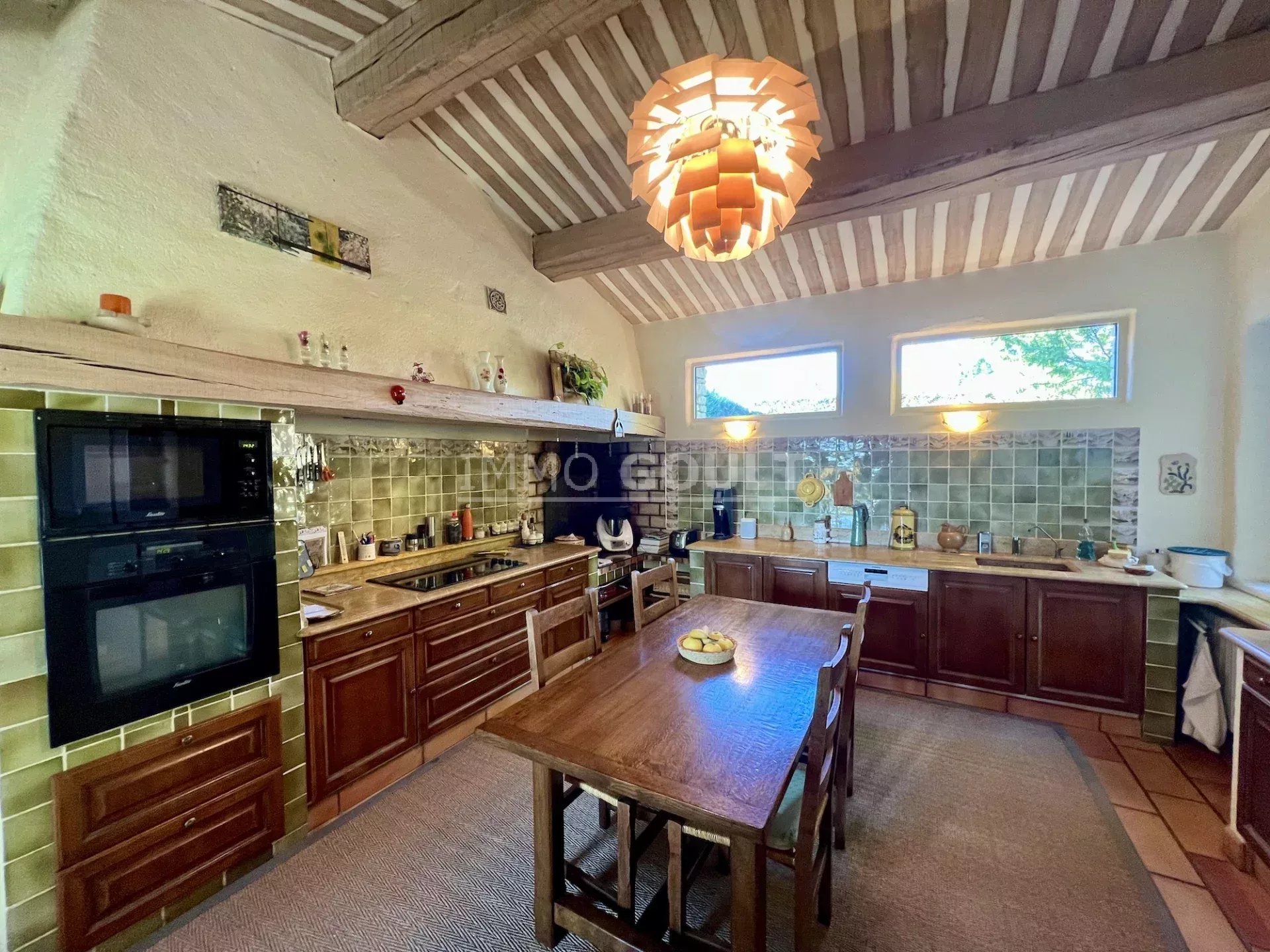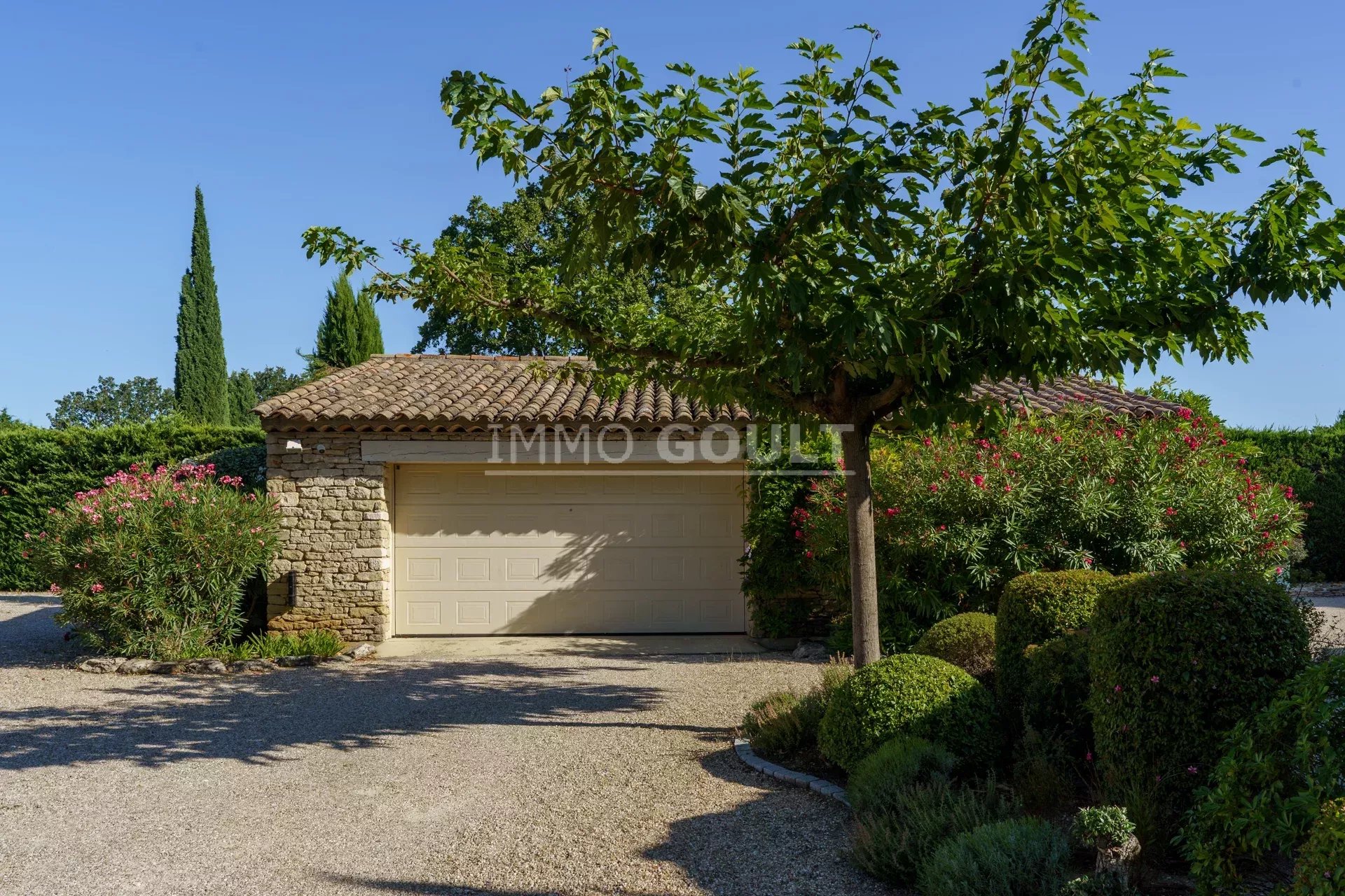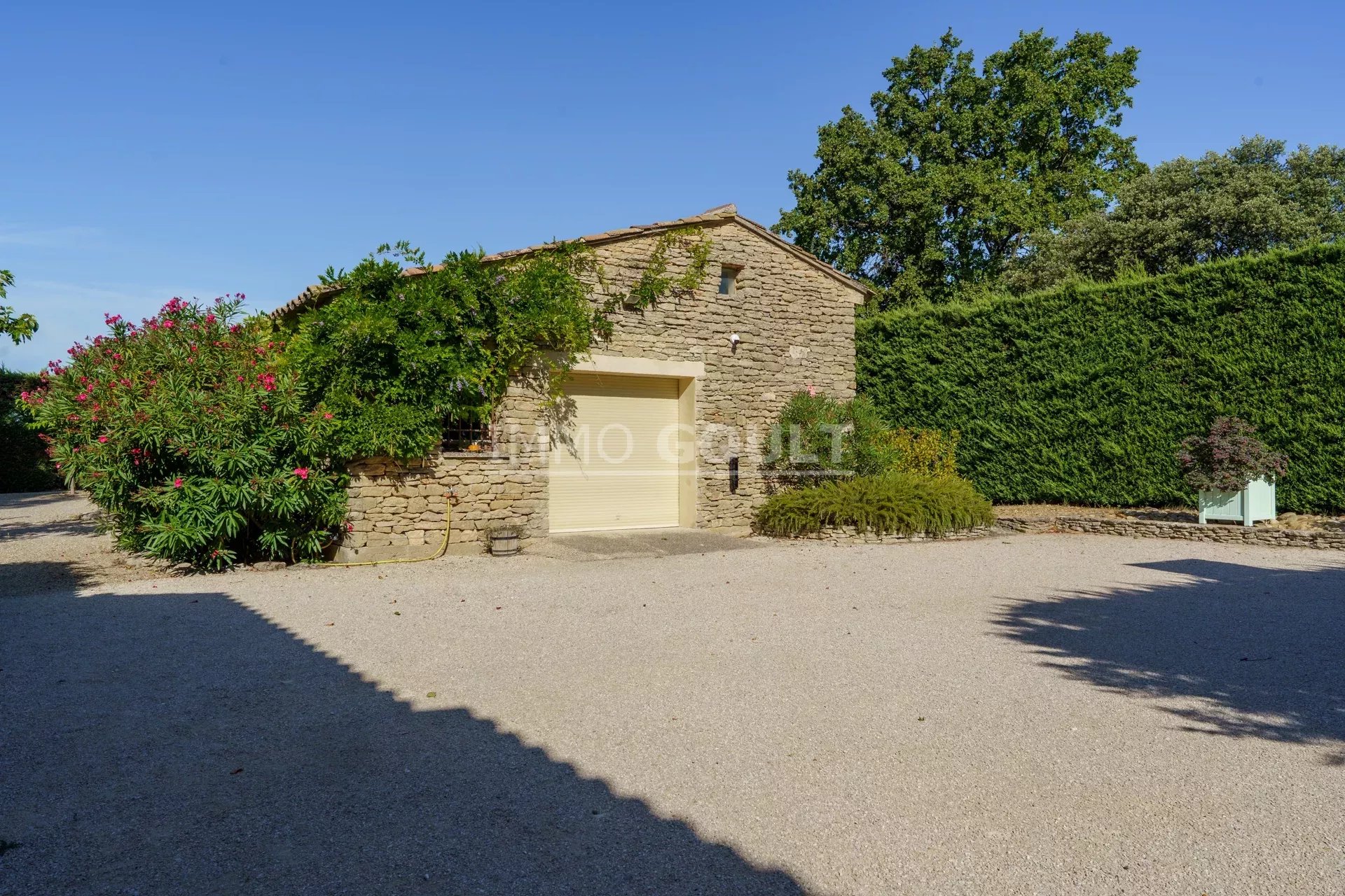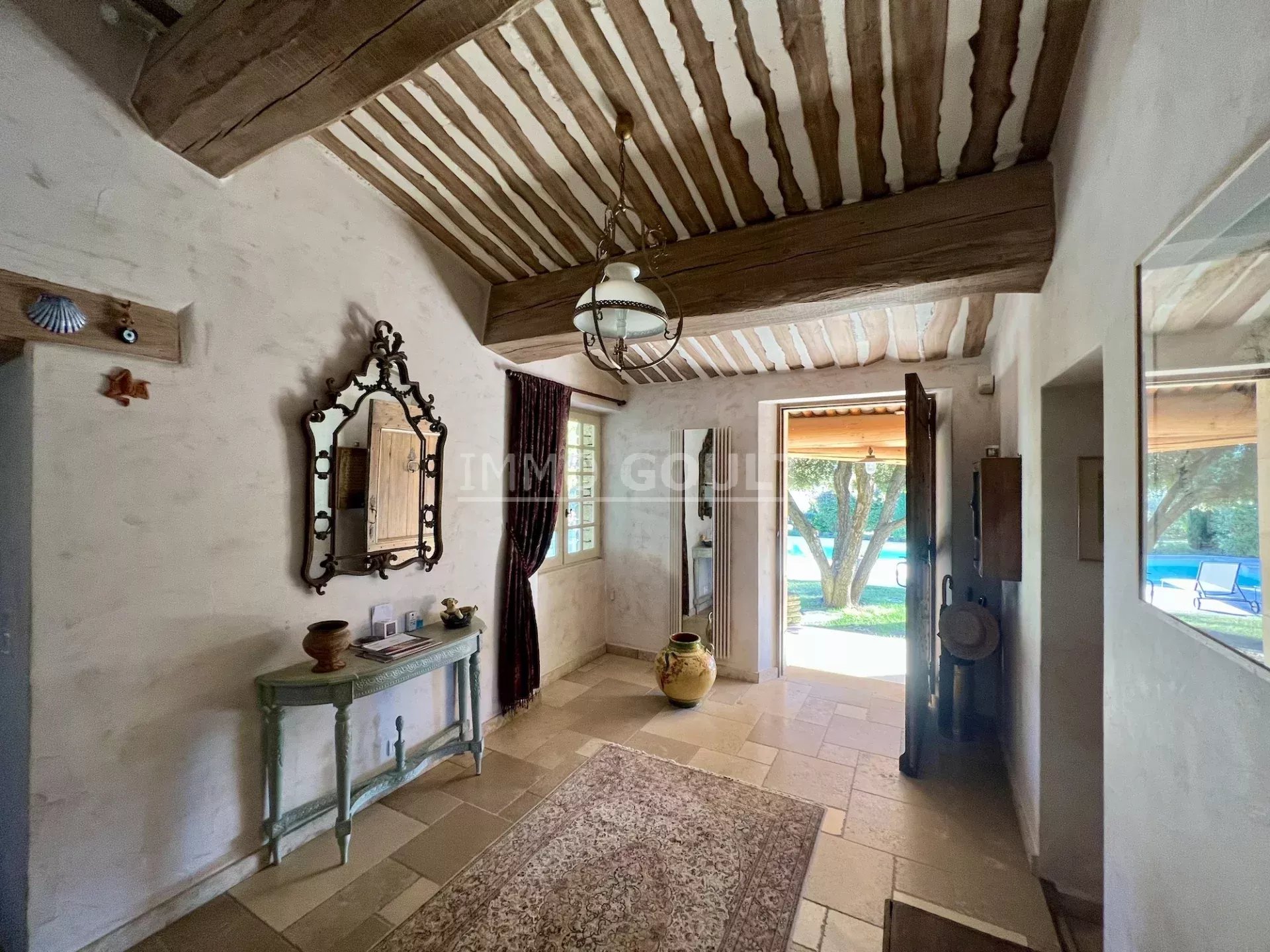 Immo Goult agence immobilière dans le parc du Luberon vous propose à la vente : Dans la campagne de Gordes, village classé, bénéficiant d'une vue sur le Luberon, très belle propriété composée d’une maison de 294m2 environ plus dépendance de 70m2 environ. Le parc clos de 7770m2 est paysager autour de la maison et planté d’une oliveraie (30 pieds), de cyprès de Florence et de fruitiers. Plusieurs terrasses dont une vaste couverte avec cheminée BBQ et une piscine sécurisée par un rideau agrémentent la maison. Au calme sans être isolée, c’est une propriété parfaitement entretenue, confortable, aux prestations techniques de qualité et qui offre de beaux volumes de réception. Idéale tant en résidence principale que secondaire.