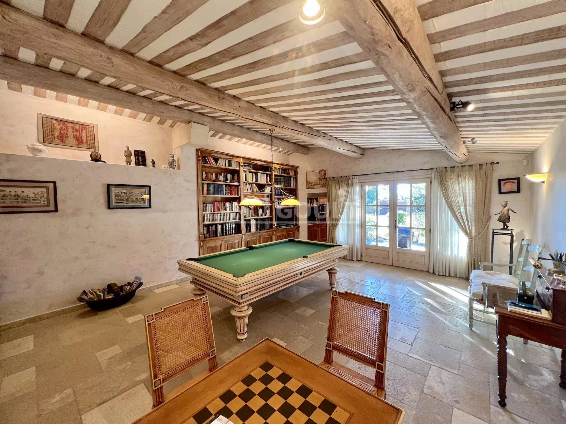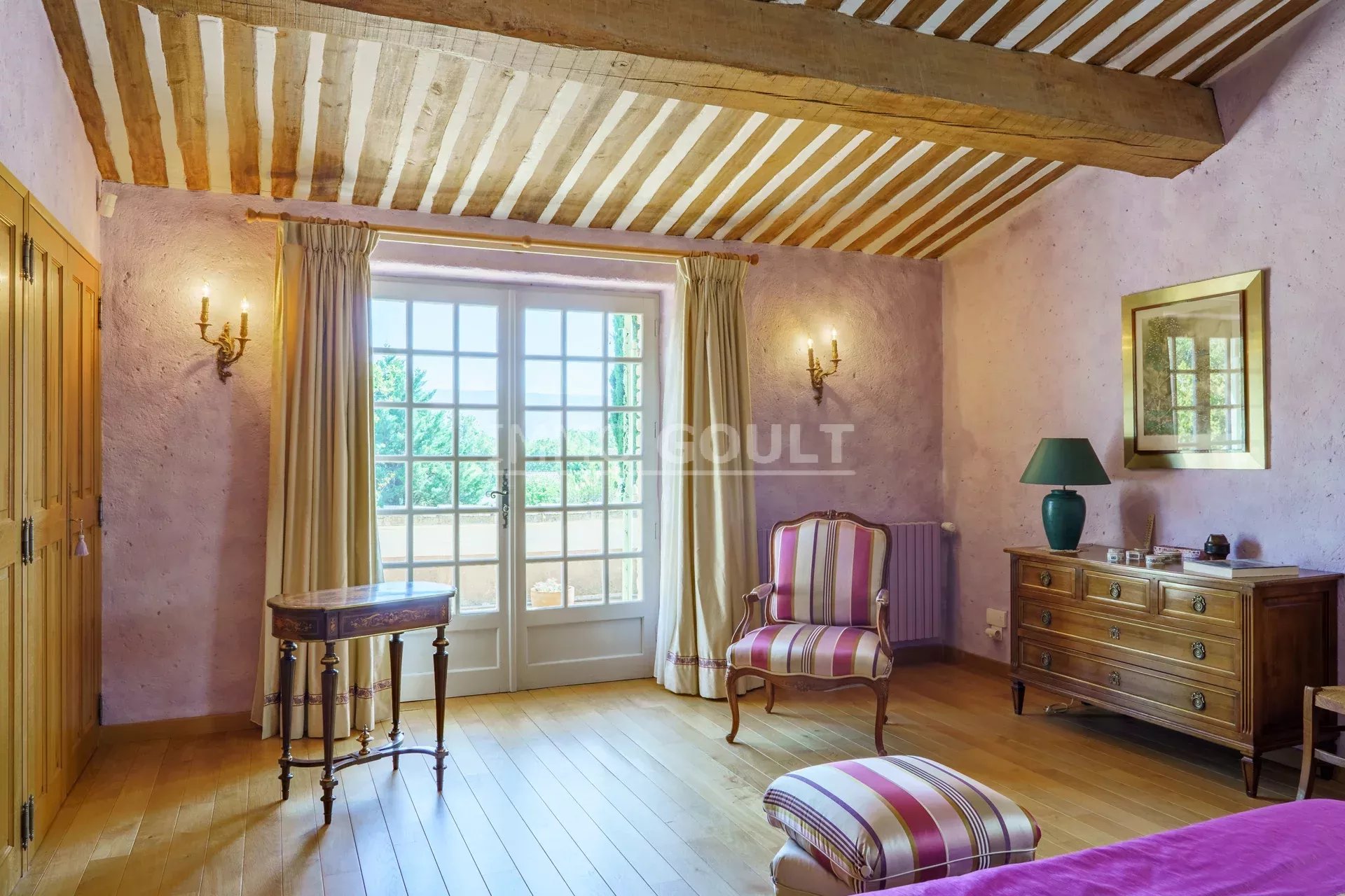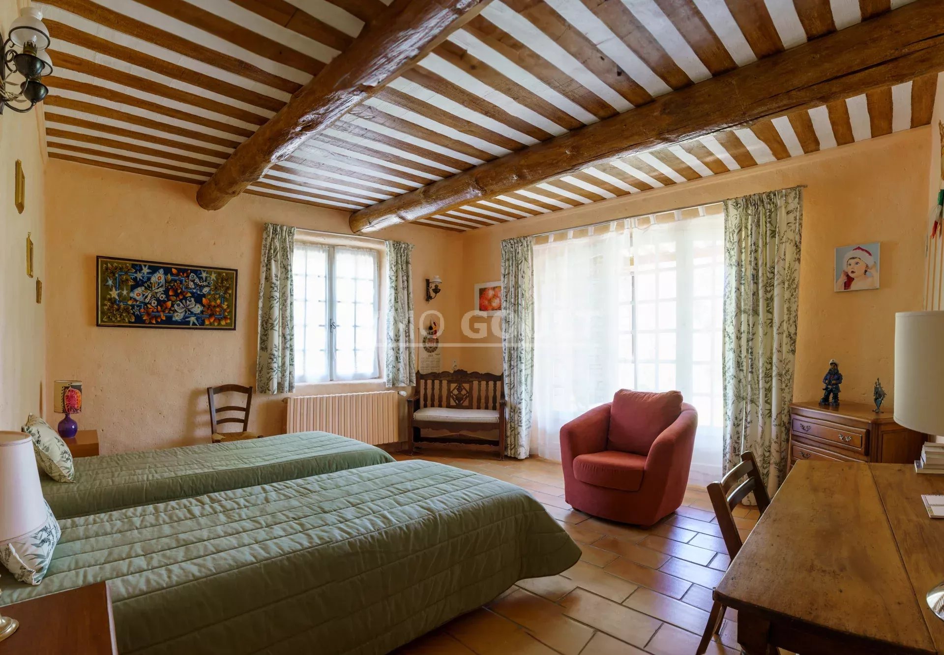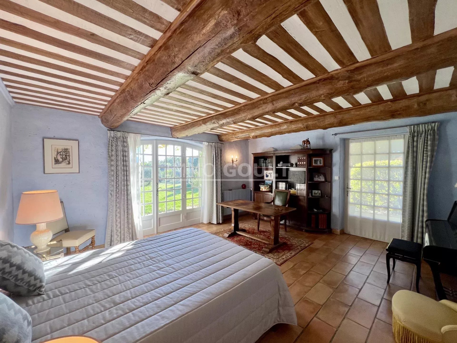Immo Goult agence immobilière dans le parc du Luberon vous propose à la vente : Dans la campagne de Gordes, village classé, bénéficiant d'une vue sur le Luberon, très belle propriété composée d’une maison de 294m2 environ plus dépendance de 70m2 environ. Le parc clos de 7770m2 est paysager autour de la maison et planté d’une oliveraie (30 pieds), de cyprès de Florence et de fruitiers. Plusieurs terrasses dont une vaste couverte avec cheminée BBQ et une piscine sécurisée par un rideau agrémentent la maison. Au calme sans être isolée, c’est une propriété parfaitement entretenue, confortable, aux prestations techniques de qualité et qui offre de beaux volumes de réception. Idéale tant en résidence principale que secondaire.