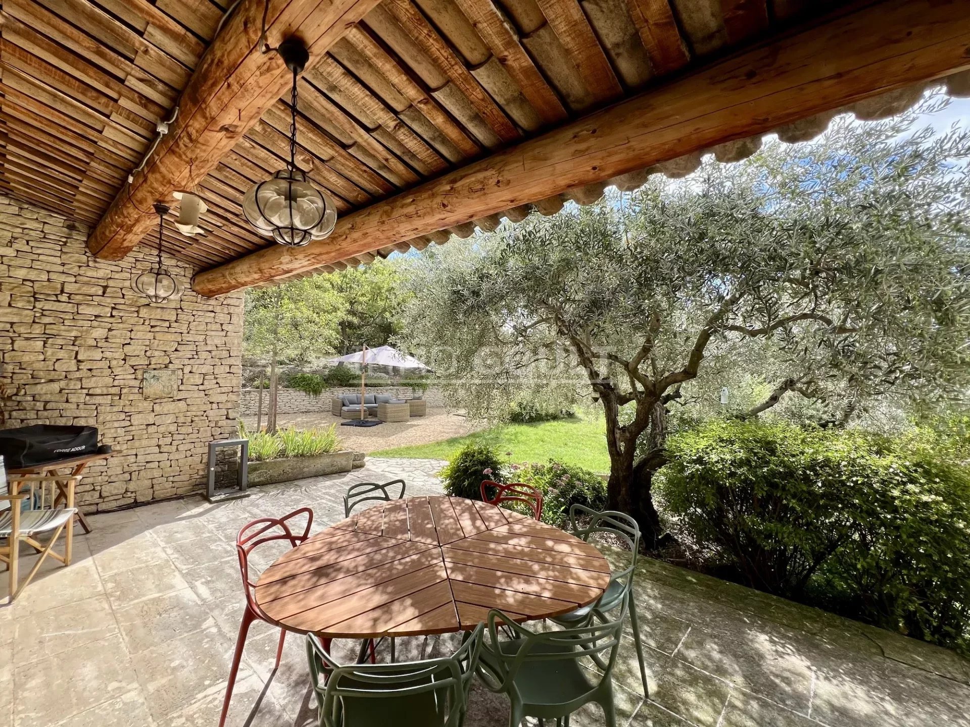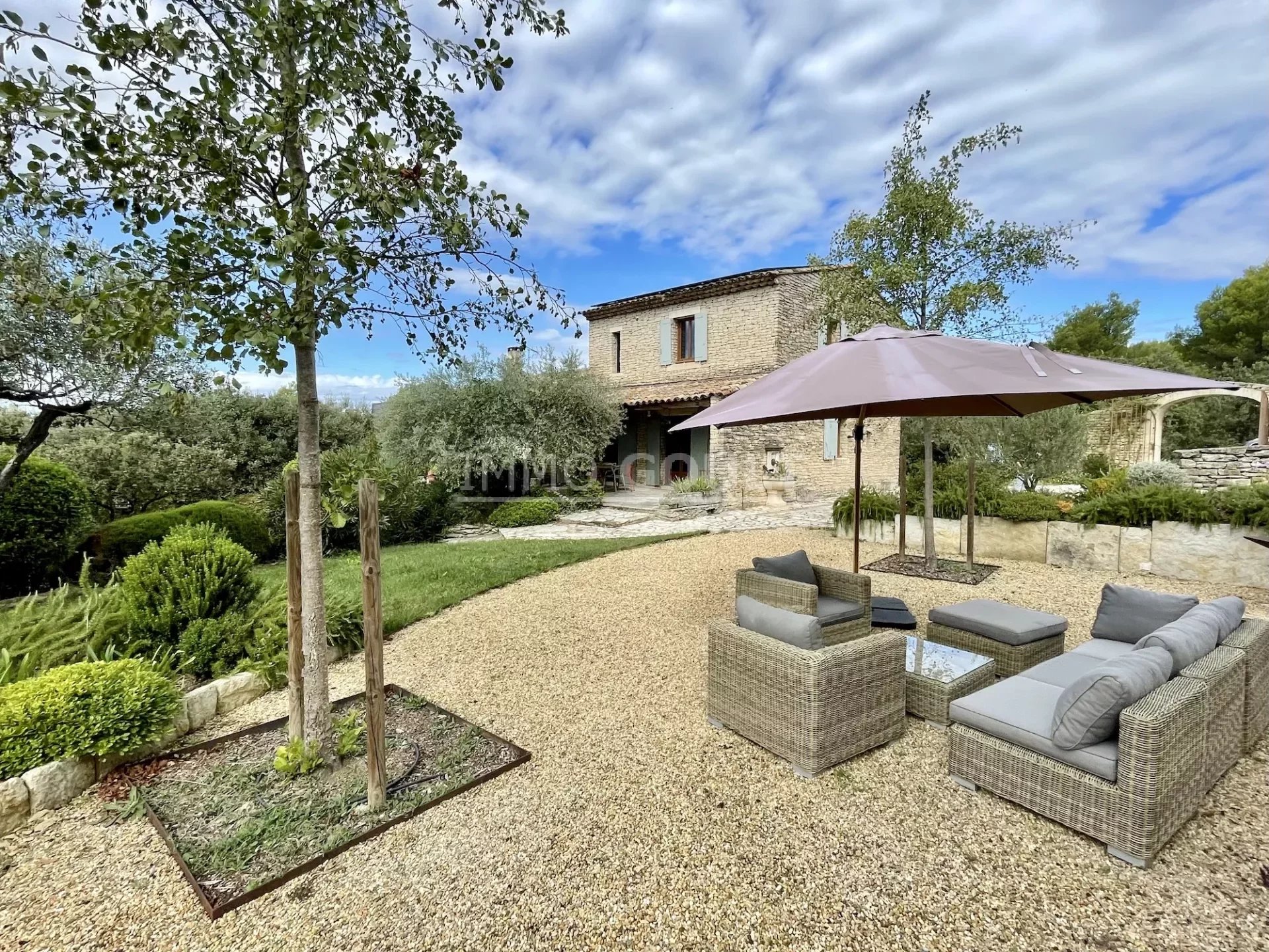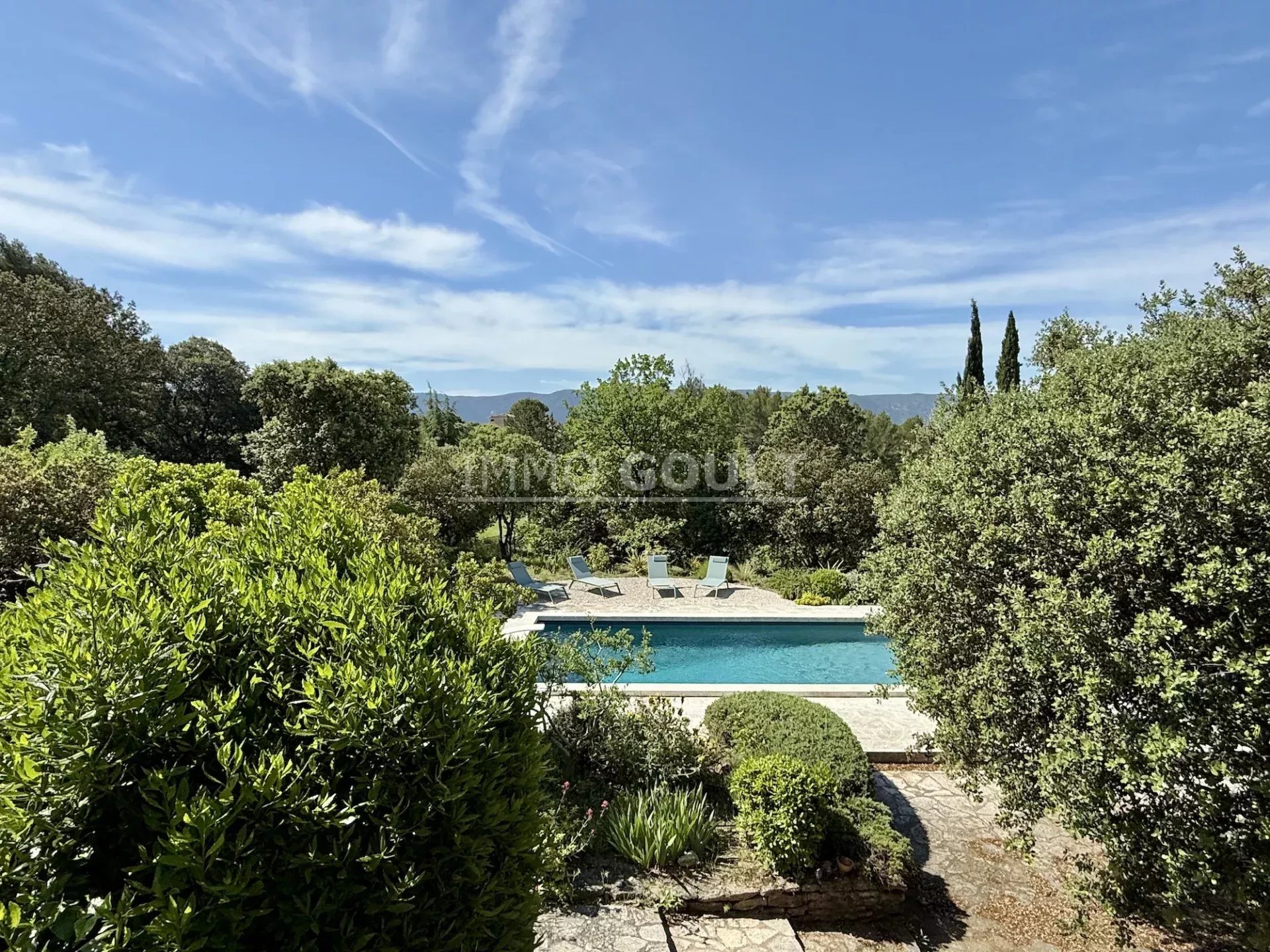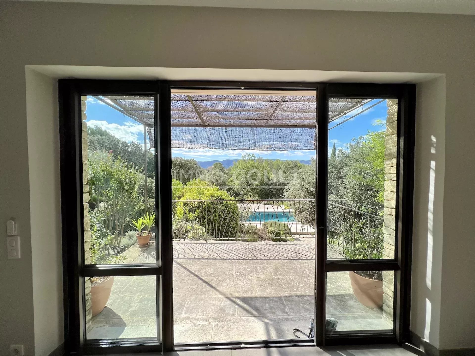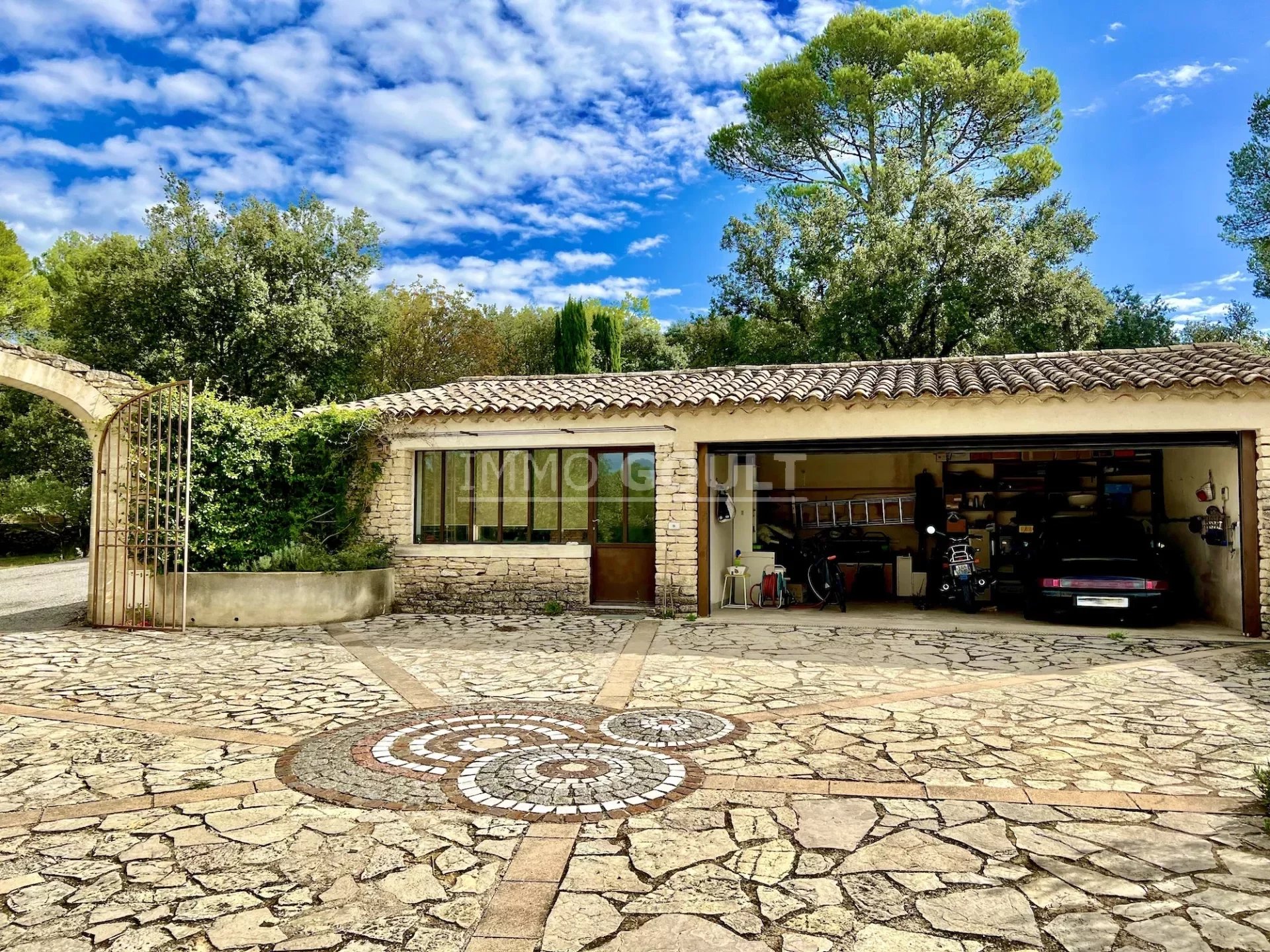 L'agence Immobilière Immo Goult vous propose à la vente dans le parc du Luberon : En campagne du village de Goult, bénéficiant d’une très belle vue sur le Luberon et les Alpilles, charmante maison en pierre d’une surface bâtie de 250m2 environ plus atelier et garage. Le terrain, en pente douce, de 9 280m2 est paysager aux abords de la maison puis planté d’essences provençales. Plusieurs terrasses dont une couverte, une autre avec tonnelle et une piscine agrémentent la maison. Un atelier/orangerie, un garage pour 2 voitures et un petit cabanon en pierre ainsi qu’un carport complètent l’ensemble. Très bel emplacement pour cette maison lumineuse, confortable, facile à vivre et qui offre de très beaux volumes d’espace de vie.