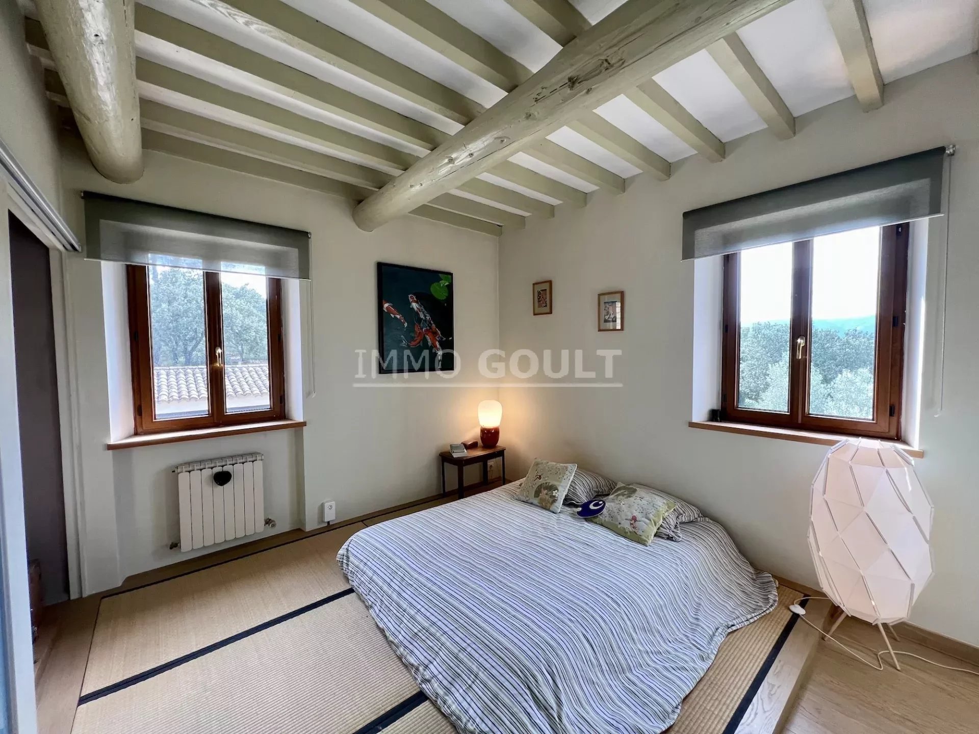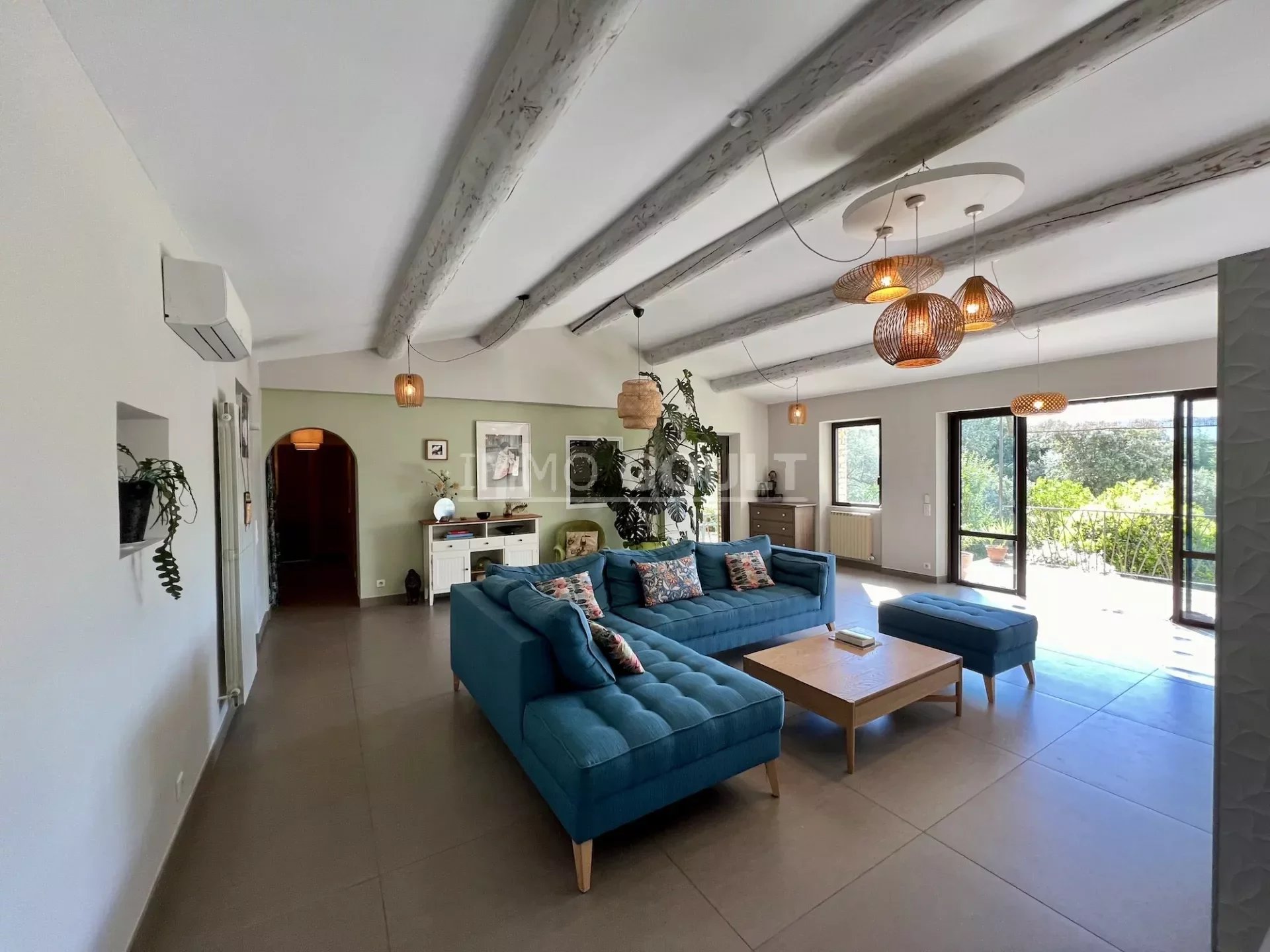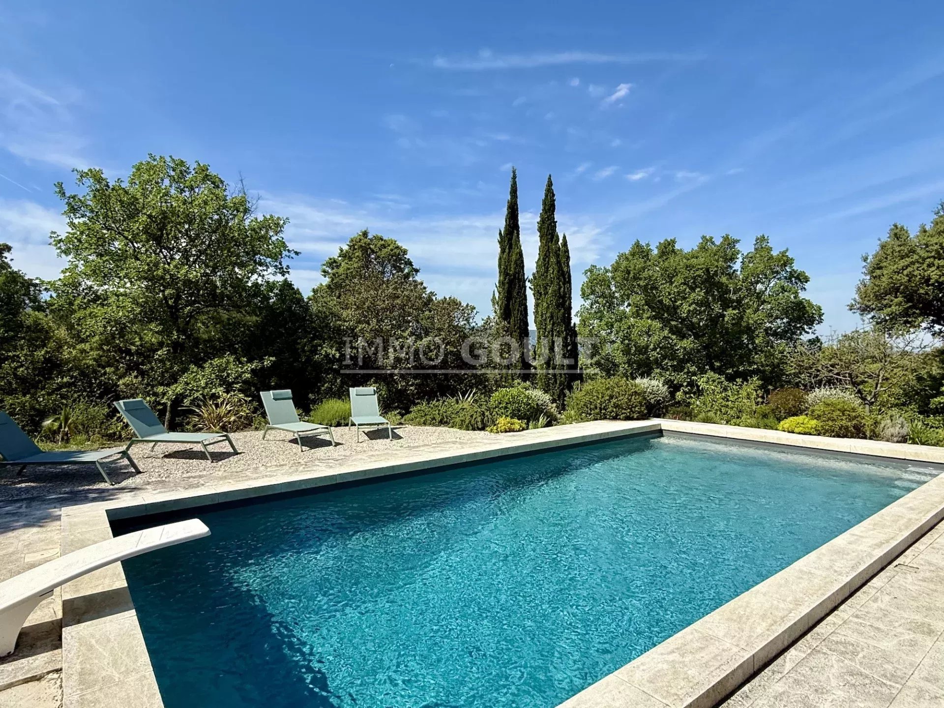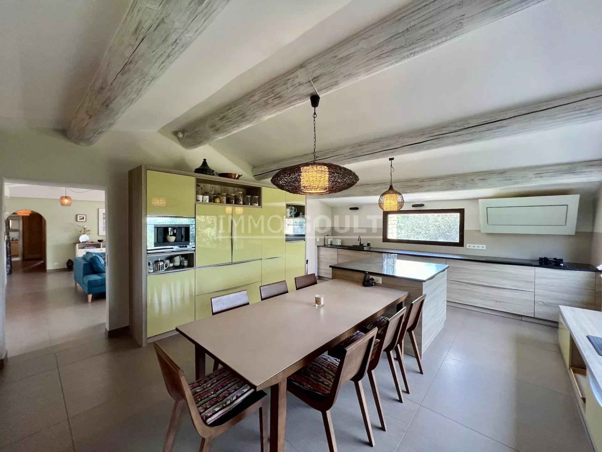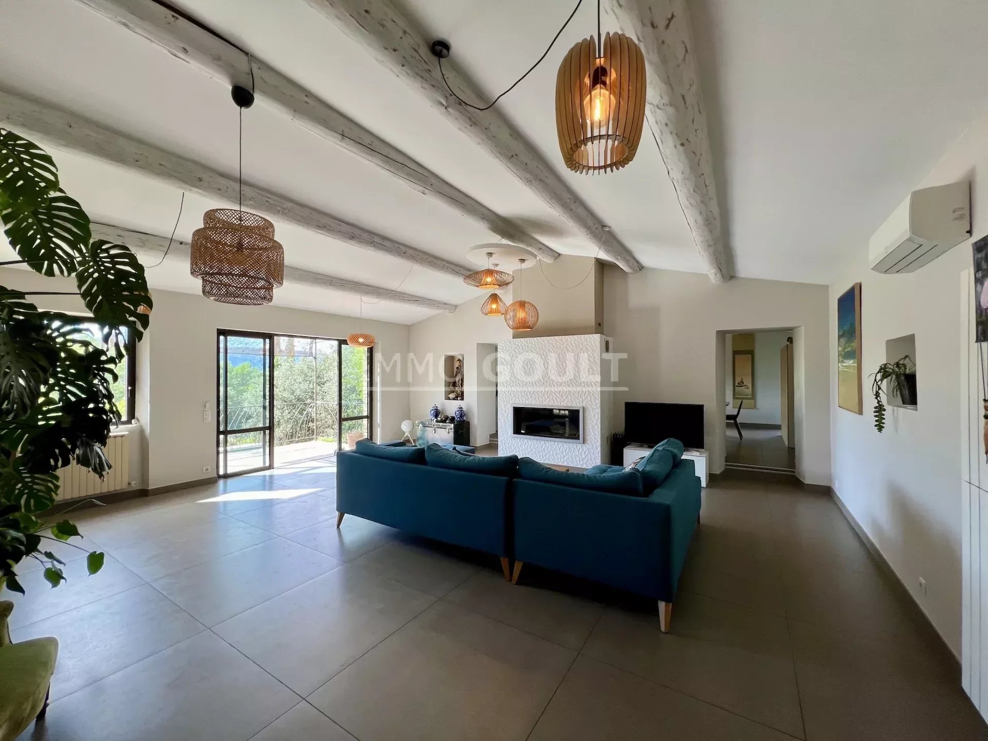 L'agence Immobilière Immo Goult vous propose à la vente dans le parc du Luberon : En campagne du village de Goult, bénéficiant d’une très belle vue sur le Luberon et les Alpilles, charmante maison en pierre d’une surface bâtie de 250m2 environ plus atelier et garage. Le terrain, en pente douce, de 9 280m2 est paysager aux abords de la maison puis planté d’essences provençales. Plusieurs terrasses dont une couverte, une autre avec tonnelle et une piscine agrémentent la maison. Un atelier/orangerie, un garage pour 2 voitures et un petit cabanon en pierre ainsi qu’un carport complètent l’ensemble. Très bel emplacement pour cette maison lumineuse, confortable, facile à vivre et qui offre de très beaux volumes d’espace de vie.