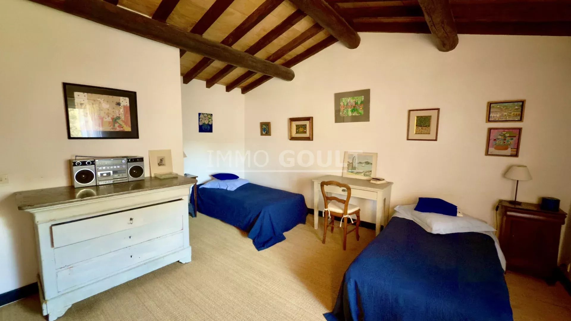L'agence Immo Goult vous propose à la vente à quelques minutes du village de Goult et de ses commerces, nichée dans la campagne environnante, élégante propriété en pierre composée d’un Mas de 1810, d’une grange, d’un bastidon, d’une maison/loft et d’un poo-house pour une surface bâtie de 510m2 environ.