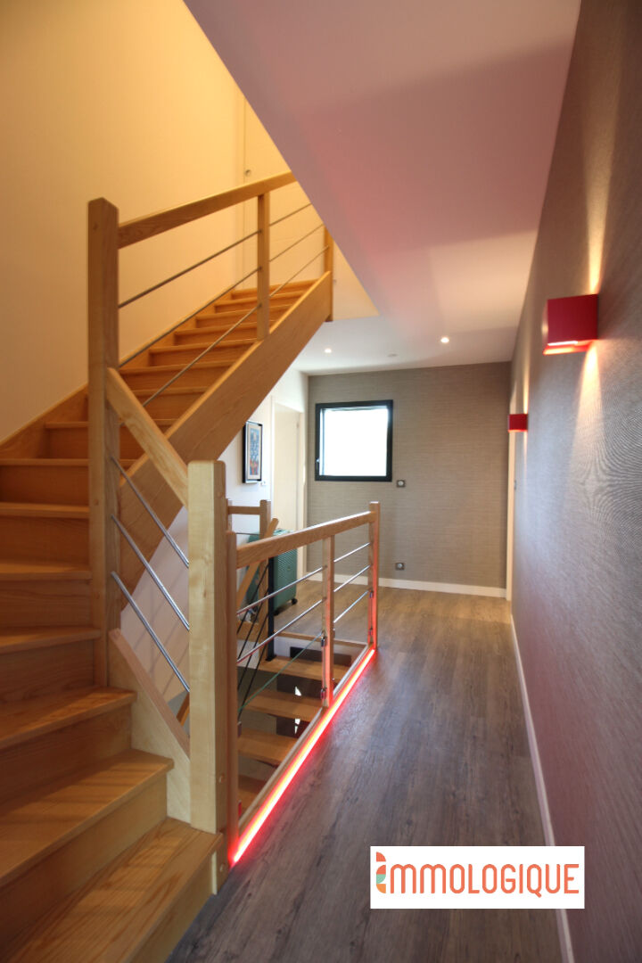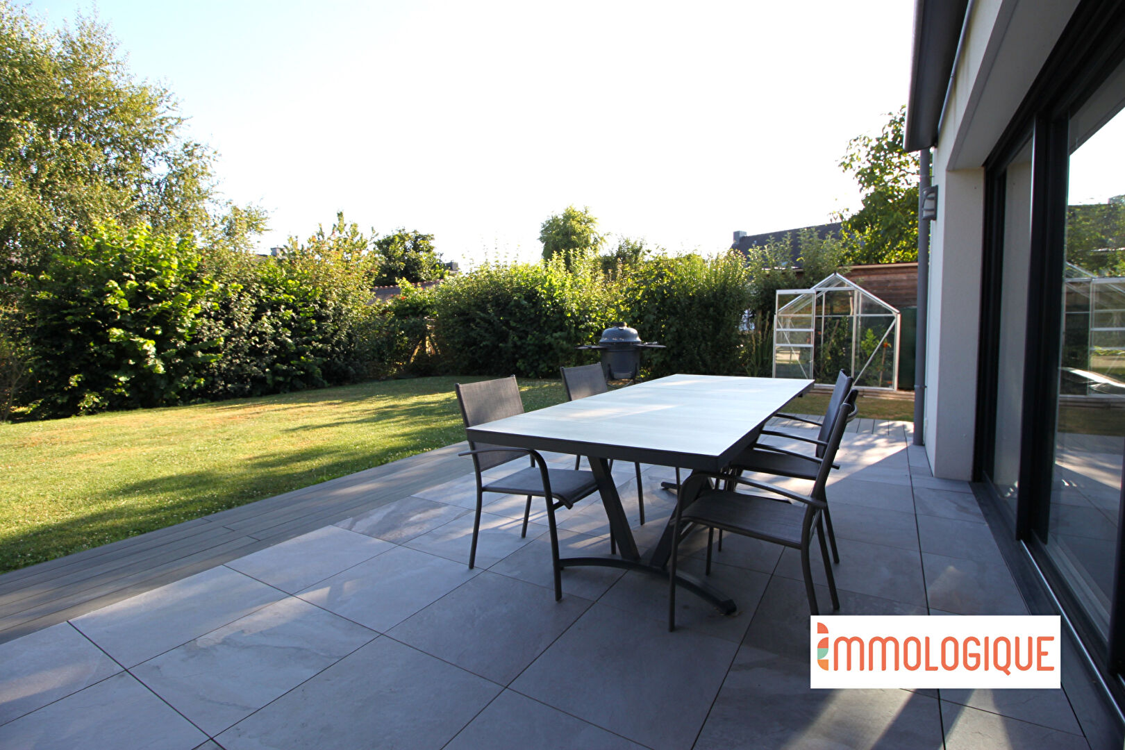 IMMOLOGIQUE vous propose cette belle maison contemporaine de 190 m² sur un terrain de près de 500 m², en fond d'impasse, dans un lotissement verdoyant et préservé. Construite avec des matériaux de qualité, ce bien peu énergivore (Classe A) vous offre de bonnes prestations telles que le chauffage par le sol au rez de chaussée, la VMC double flux, la domotique, la climatisation, le système d'alarme, des panneaux photovoltaïques, faux plafond avec éclairage leds indirect... Vous découvrirez de plain pied : une entrée avec placard, une cuisine entièrement aménagée et équipée ouverte sur une pièce de vie lumineuse exposée sud et ouest donnant accès à une terrasse sans vis à vis. Vous trouverez également une suite parentale. A l'étage : un dégagement distribue une chambre avec placard, une salle de bains, une salle de jeux ou bureau avec accès à une terrasse, deux belles chambres avec placards et leur salle d'eau privative. Au dernier niveau, un grenier aménagé. En complément, une buanderie, un garage de plus de 20 m² et un abri de jardin. Nous contacter pour plus de renseignements. CLASSE ENERGIE : A CLASSE CLIMAT : A Prix HAI 547 500 euros (530 000 euros hors honoraires + 3.30 % d'honoraires d'agence TTC soit 17 500 euros à la charge de l'acquéreur). Référence : 249FD IMMOLOGIQUE - Votre contact : Frédéric DELAMARRE - 0687513278 - (3.30 % honoraires TTC à la charge de l'acquéreur.)
