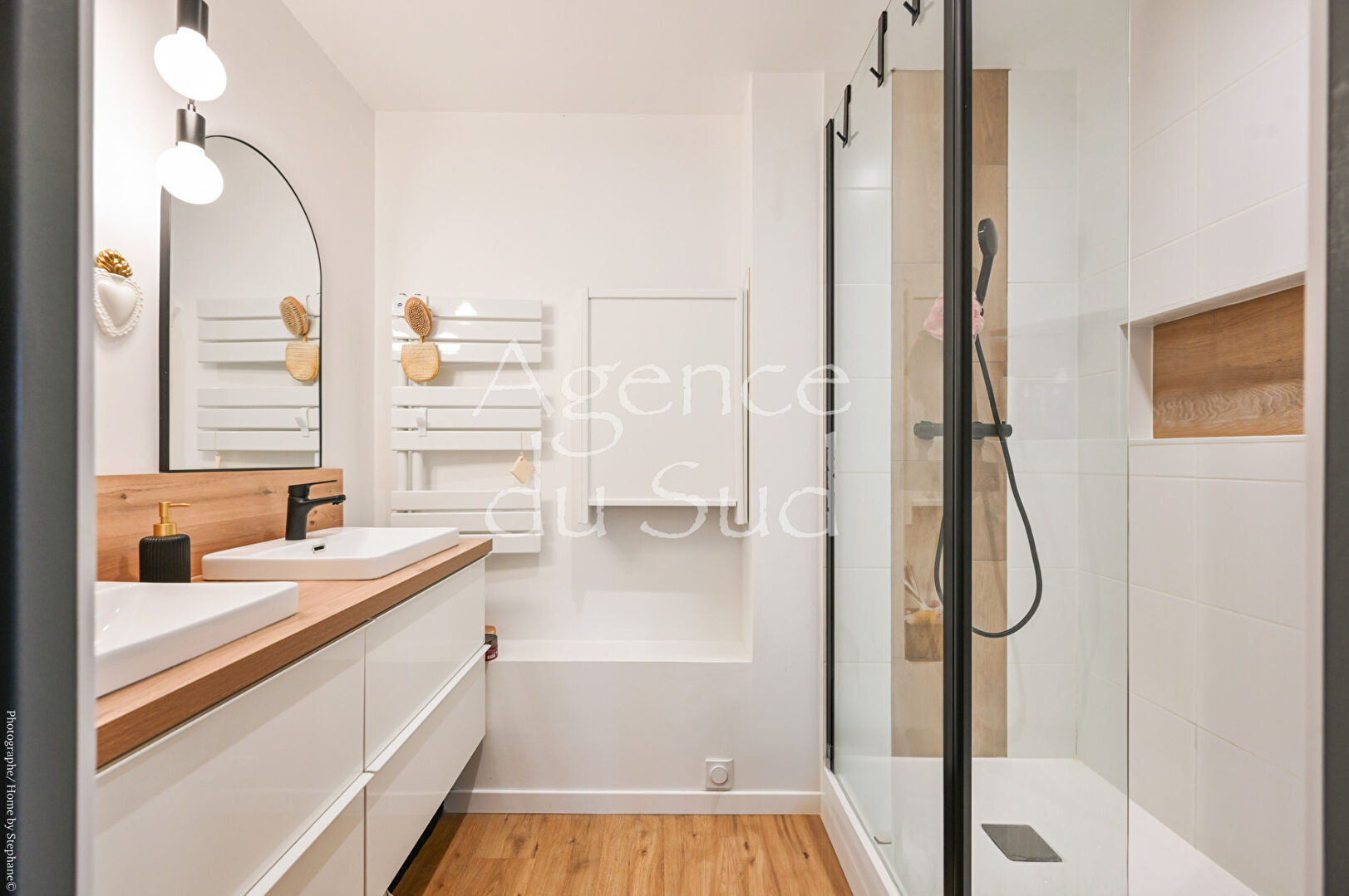 COUP DE COEUR BIEN RARE A LA VENTE Appartement T4/5 de 100 m² avec terrasse exposée plein sud, au calme absolu ! L'Agence du Sud vous propose ce superbe appartement, entièrement rénové avec goût il y a seulement 3 ans. Vous serez séduit par une vaste pièce de vie de près de 50 m², baignée de lumière grâce à sa double exposition sud/ouest. Elle comprend : - Une cuisine haut de gamme sur mesure réalisée par un cuisiniste, un espace salle à manger, un salon ouvrant sur une terrasse plein sud, au calme vue sur jardin ! Climatisation réversible dans la pièce à vivre. Par la suite, nous avons un WC avec lave main, un couloir avec plus de 4 grands placards intégrés offrant un maximum de rangement. Une salle d'eau moderne avec double vasque. Trois chambres confortables. Un second WC avec espace buanderie (possibilité d'aménager une deuxième salle d'eau). Une cave ainsi qu'une place de parking privative viennent compléter ce bien. Chauffage collectif ? Résidence calme, sécurisée et parfaitement entretenue. A visiter sans tarder ? bien rare sur le secteur ! Copropriété de 48 lots - dont 48 lots habitation. (Pas de procédure en cours). Charges annuelles : 2772 euros.