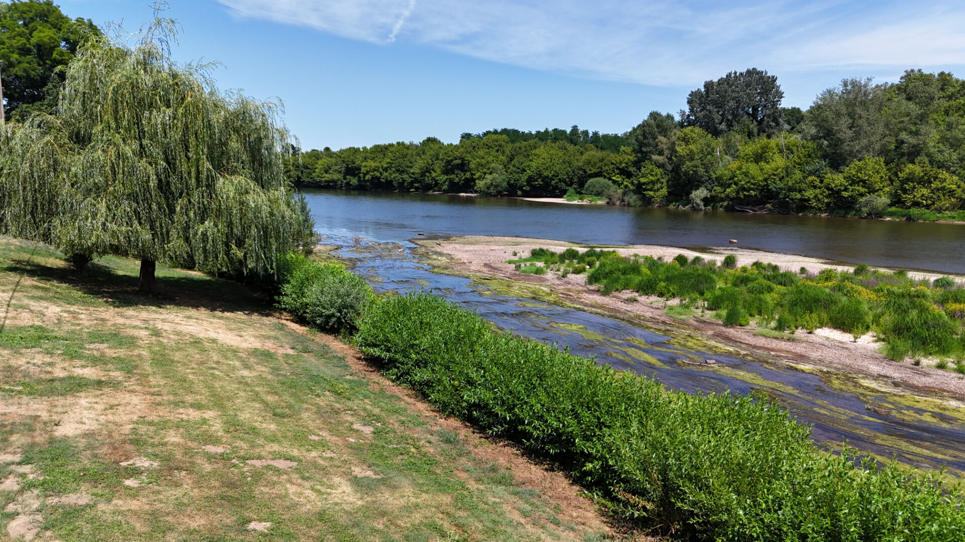 Belle maison de construction traditionnelle sur sous-sol semi-enterré habitable très bien entretenue. Elle se compose d'une grande cuisine, fonctionnelle et lumineuse avec sa climatisation. Un salon séjour de presque 55 M2 avec une cheminée par insert et son exposition face au fleuve. Nous retrouvons dans la partie nuit un couloir pourvu de plusieurs placards, deux belles chambres de 19 et 20 M2 dont une avec la climatisation. Une grande salle de bain, un WC indépendant et un cellier séparé. un accès au rdc. Ce denier dispose d'une grande pièce de vie de type salle de réception de 35 m2, d'un atelier, d'un double garage isolé de 80m2, une salle d'eau, un second WC, une cuisine séparée. L'ensemble en parfait état. En extérieur le parc arboré et clôturé dispose de deux entrées avec portails distincts. Une belle terrasse couverte face à la rivière avec son barbecue maçonné. Terrain en bord de berge. Les allées goudronnées et l'état irréprochable du jardin finiront de vous séduire. Assainissement autonome.