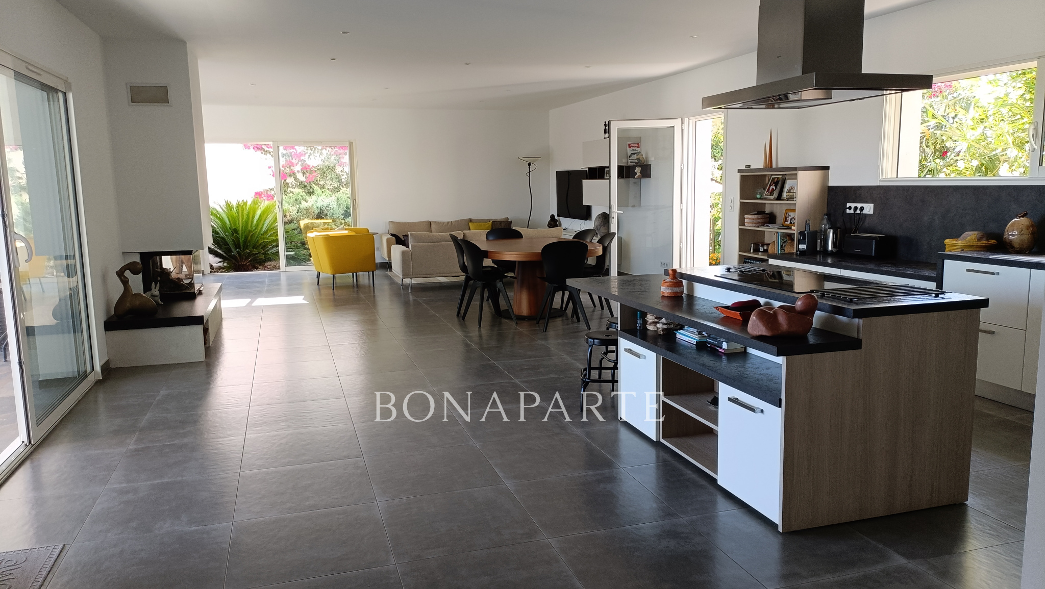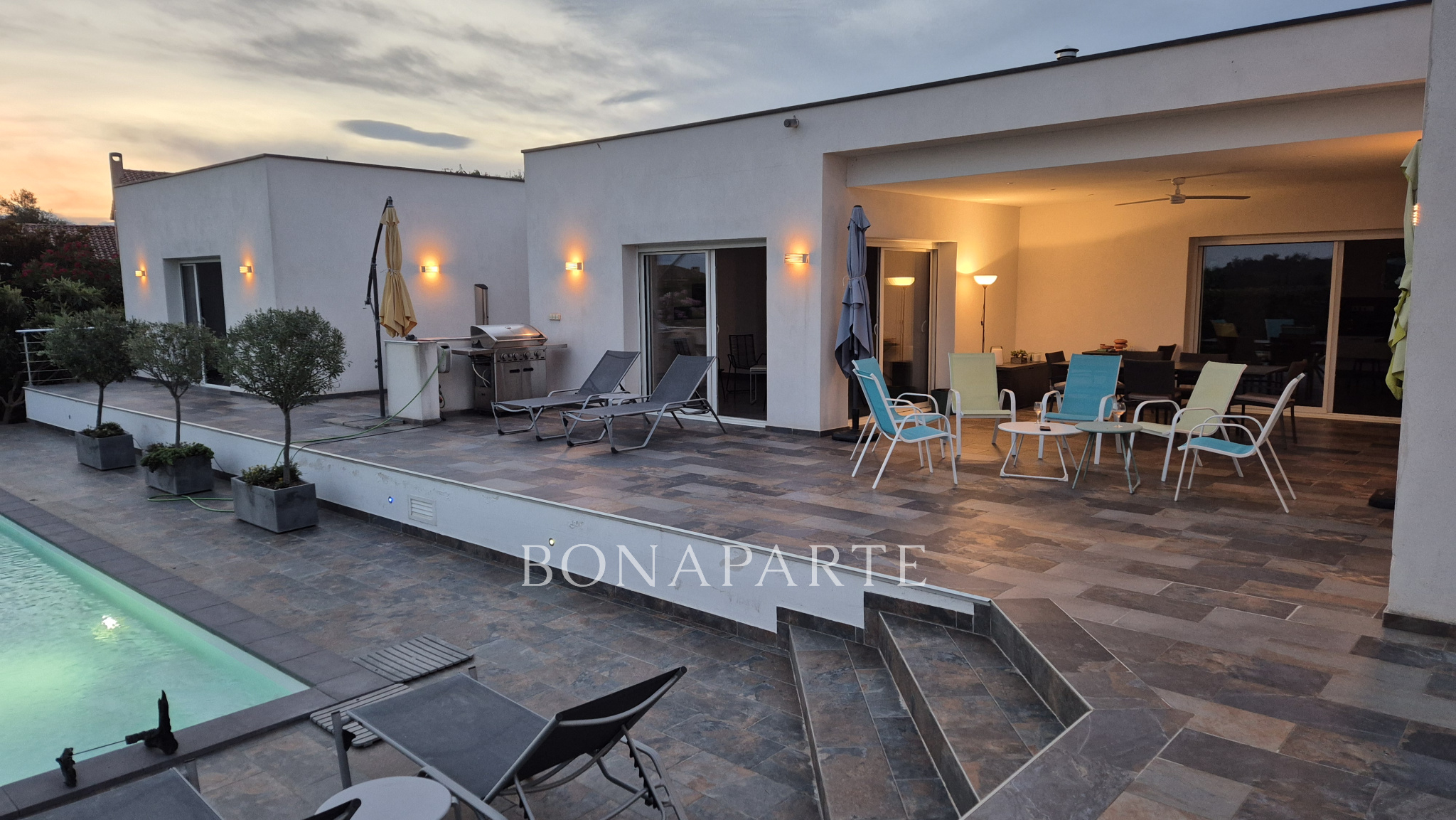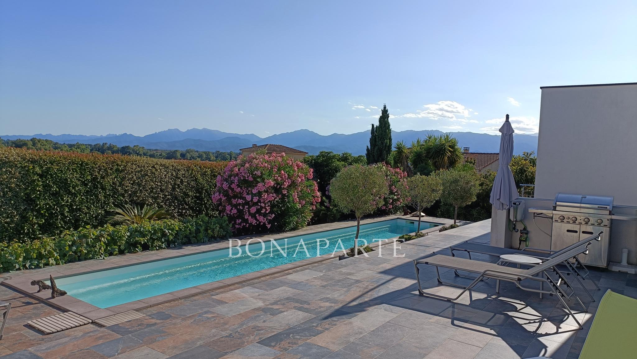 Dans un environnement Résidentiel proche du village historique d'Aléria, très belle villa moderne de plain-pied de 250 m2 avec vue magnifique sur les montagnes à seulement 10 minutes à peine de la plage.