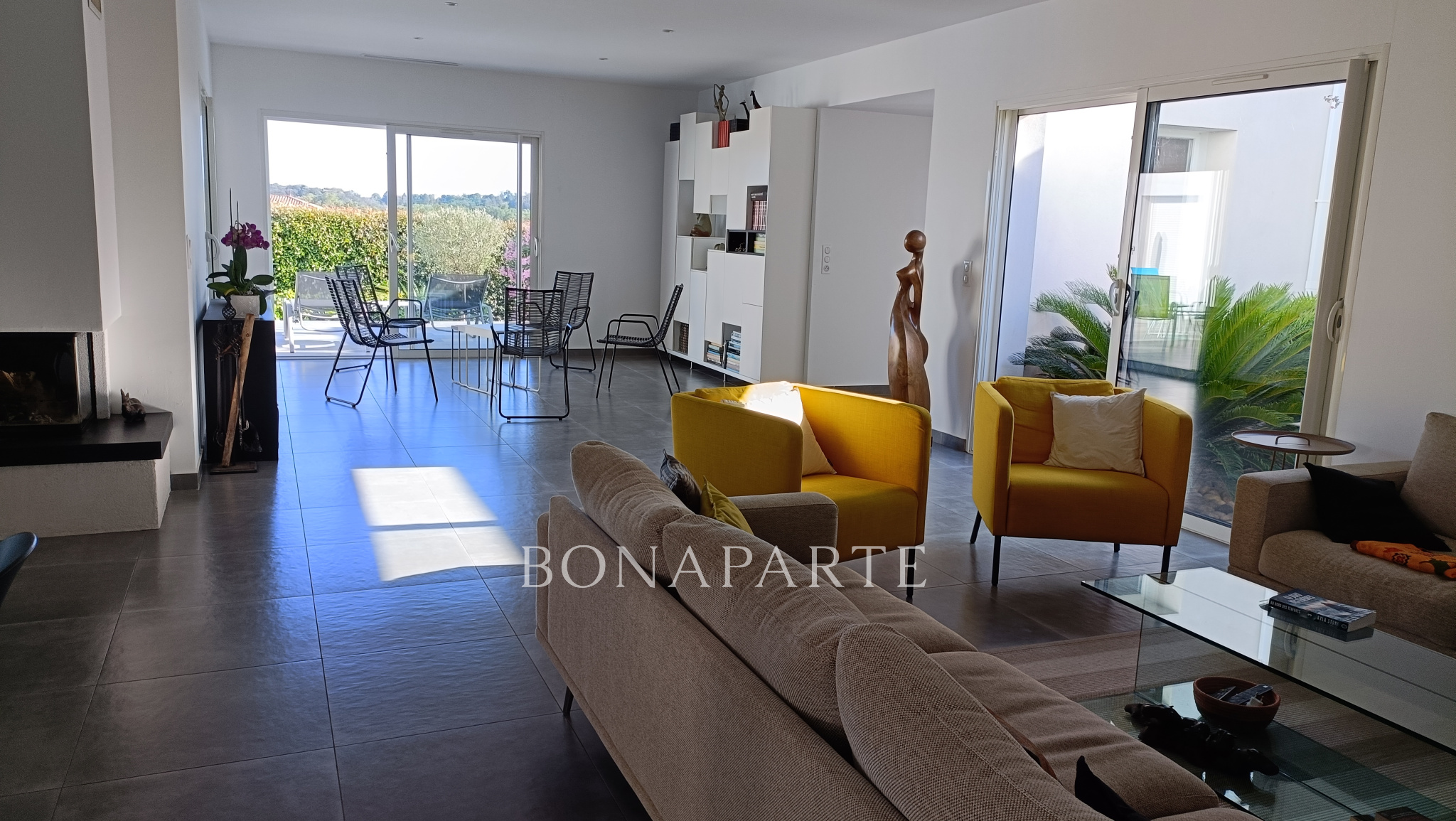 Quatre chambres en suite dont une immense. Cuisine ultra équipée. Jardin paysager . Piscine couloir de nage. Garage double.