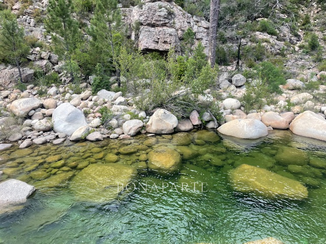 Au pied des majestueuses aiguilles de Bavella, dans un cadre naturel, cette propriété a été édifiée au siècle dernier dans un parc boisé de hautes tiges de 3ha65 bordée par l'une des plus belles rivières de Corse.