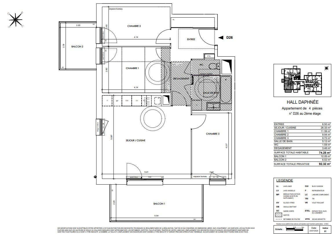 Sur la commune attractive de La Roche sur Foron, idéalement située à l'entrée du centre-ville et à proximité immédiate des commerces, appartement neuf 4 pièces de 74.25 m² au 1er étage composé d'une entrée avec placard, d'une pièce de vie de 26.33 m² donnant sur un balcon de 12.05 m², de deux chambres qui donnent sur un deuxième balcon de 6.02 m² , d'une troisième chambre, d'une salle de bain et un wc séparé. Deux garages et une cave en sous-sol sont inclus dans le prix. FRAIS DE NOTAIRE OFFERTS POUR LES PRIMO-ACCEDANTS (Photos non contractuelles). D'autres lots restent disponibles à la vente sur ce programme. Votre agence IMMO3CONCEPT vous propose + de 1000 lots à vendre dans le Genevois, Chablais, Pays Rochois, Pays de Gex et Vallée du Giffre. Contactez-nous ou consultez notre Site Internet. Copropriété de 322 lots - dont 126 lots habitation.(Pas de procédure en cours). Carine BOSSON (EI) Agent Commercial - Numéro RSAC : 884141946 - THONON-LES-BAINS.