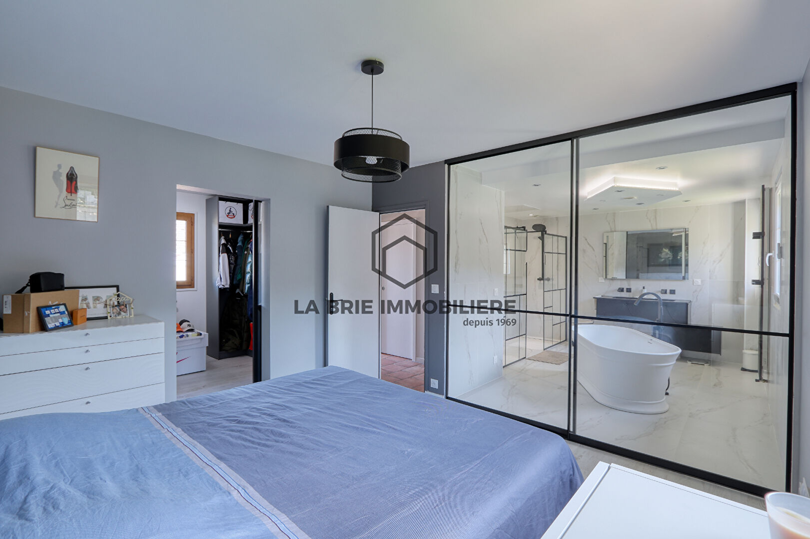 Votre agence La Brie Immobilière vous propose, en exclusivité, de venir découvrir cette maison individuelle entièrement rénovée avec goût ! Dès l'entrée de la propriété, vous profiterez d'une cour spacieuse permettant de stationner plusieurs véhicules, ainsi que d'un garage de plus de 35m². Au sein de la maison principale, vous disposerez, au rez-de-chaussée, d'une vaste entrée avec placards, d'une suite parentale offrant des prestations exceptionnelles comprenant dressing, salle de bains et douche, ainsi que d'une pièce de vie avec poêle à bois, ouverte sur la cuisine américaine. Ce bel espace communique avec une véranda spacieuse donnant accès à la terrasse et au jardin avec piscine. A l'étage : deux chambres, une salle d'eau, un W.C. séparé, ainsi qu'une mezzanine à aménager selon les besoins de la famille. Le tout dans un environnement paisible, sur une parcelle close et sans vis-à-vis de 860m². A visiter en famille ! Emilie DEGRAGE (EI) Agent Commercial - Numéro RSAC : 920 563 509 - MELUN.