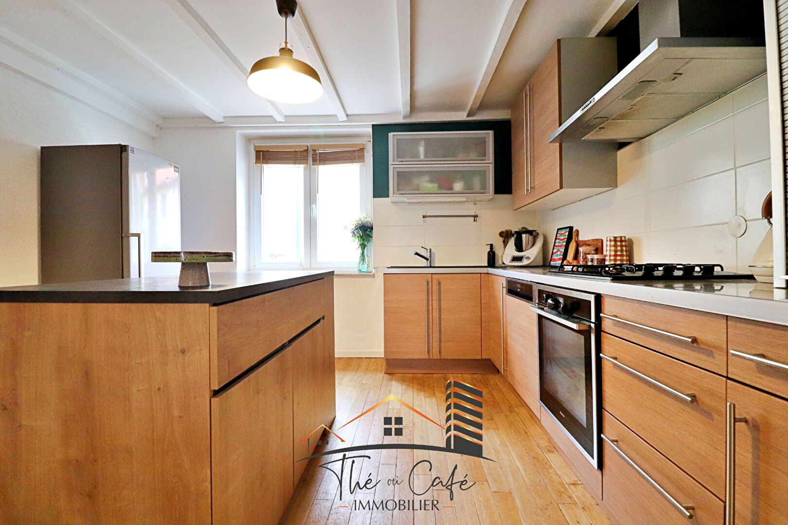 EXCLUSIVITE THE OU CAFE IMMOBILIER : ANGEVILLERS : Dans une charmante rue à sens unique, au calme et sans nuisance, venez visiter cette jolie maison de 1907, mitoyenne d'un côté, rénovée avec goût. D'une surface de 124 m2, elle offre 6 pièces de vie. Vaste espace jour composé d'une belle cuisine américaine entièrement équipée avec ilôt central, donnant sur une salle à manger et un séjour confortable en accès direct sur une terrasse très cosy et le jardin arrière. En Rez-de-chaussée, retrouvez une salle de douche, et un espace buanderie. Magnifiques escaliers anciens desservant au 1er étage une salle de bains et deux belles chambres avec parquets anciens, dont l'une donnant sur une terrasse suspendue. Dans les combles, deux autres chambres agréables dont une avec un dressing aménagé. Retrouvez une remise à l'extérieur, ainsi qu'un jardin clos avec accès par la rue arrière. A quelques mètres de la maison, le bien bénéficie d'un grand garage individuel fermé avec électricité. Rue calme, stationnement facile et proximité de la frontière luxembourgeoise. Maison rénovée, ne nécessitant pas de travaux. Si cette coquette maison de famille vous intéresse, contactez notre agence ! DPE : D Uniquement chez Thé ou Café Immobilier. 03 74 95 10 92 www.theoucafeimmobilier.com