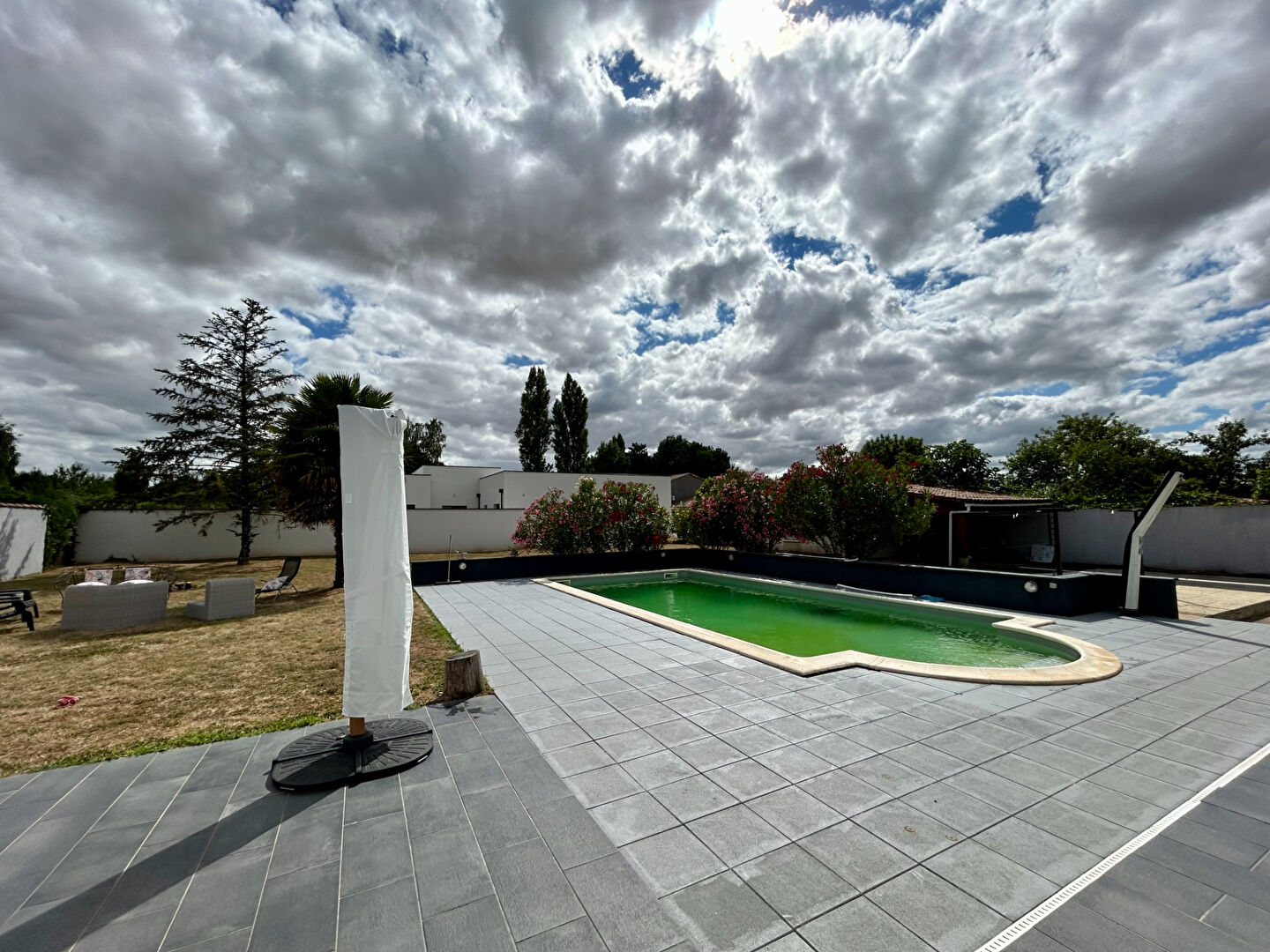 Mougon, non loin des commodités (école maternelle et primaire, médecin, dentiste, boulangerie, pharmacie, garage automobile, bar, ...) et à 10 minutes en voiture de l'entrée de Niort, pavillon de plain-pied construit en 1982 et agrandi en 2000 d'une superficie habitable de 203 m² comprenant: entrée, cuisine aménagée et équipée de 25 m², séjour-salon de 55 m² avec présence d'une cheminée (insert), vestiaire, cellier, dégagements, 2 wc, salle de bains, salle d'eau, 5 chambres et un grand bureau. Cave, chaufferie. Garage non attenant à la maison avec un préau devant. Terrain entièrement clos de 1 592 m², avec présence d'une piscine 4.5 * 9 m (liner et filtre à verre neufs). Chauffage au gaz de ville. Contacter l'agence ADI de La Crèche au 05 49 05 42 34 ou Ludovic PERON au 06 28 60 94 93 pour obtenir de plus amples renseignements. (3.87 % honoraires TTC à la charge de l'acquéreur.)