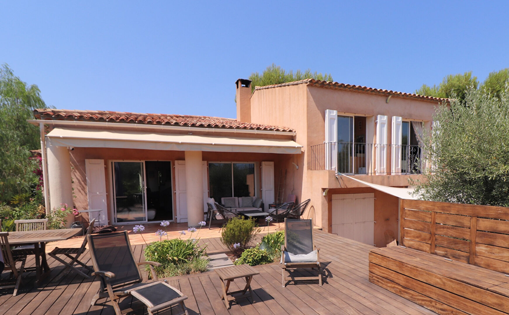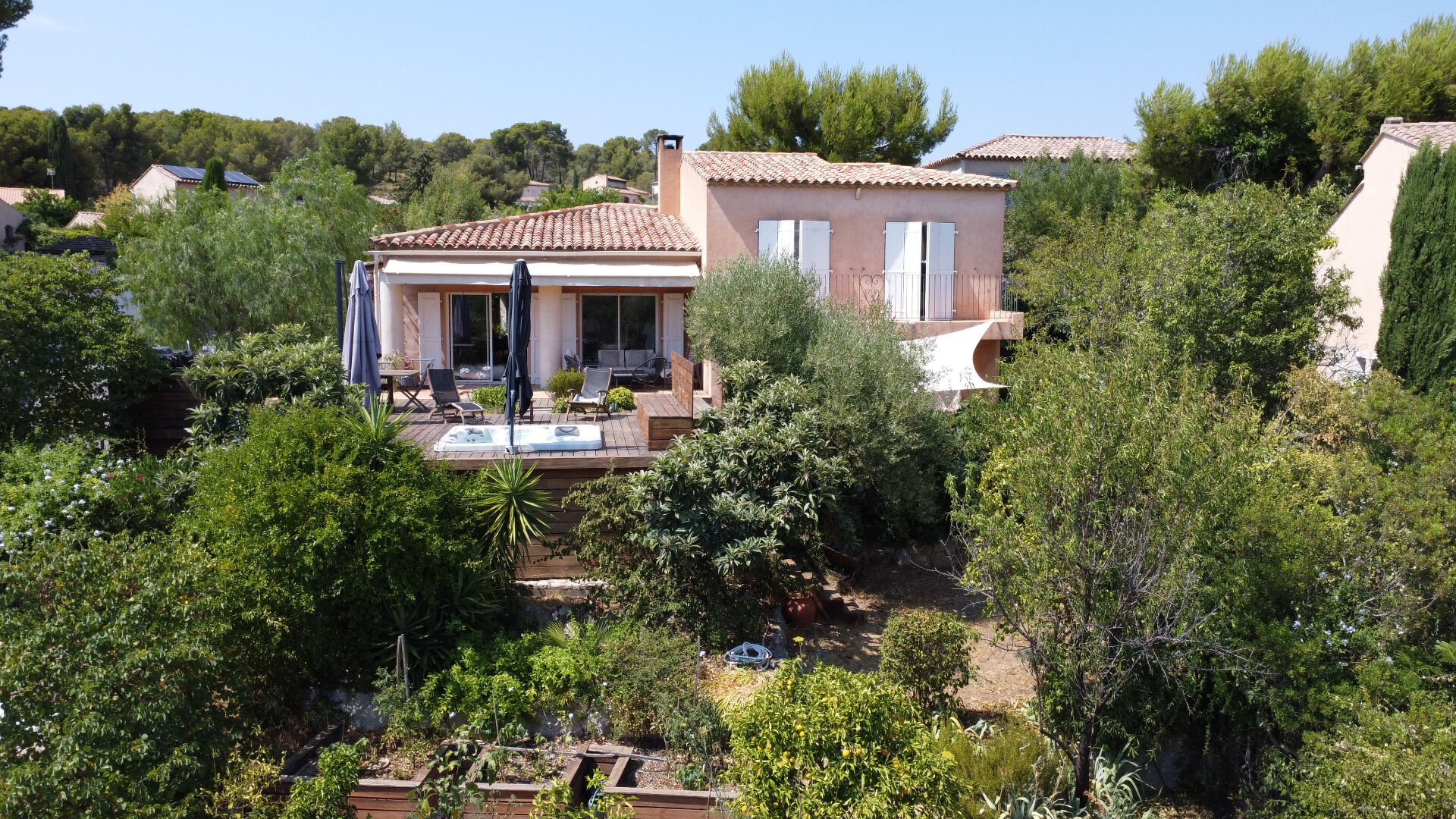 LA CADIÈRE D'AZUR A proximité du village et des commodités. La plages des Lecques est à 10mn en voiture. Villa construction traditionnelle en parfait état, de 142m² habitables sur un terrain de 800 m², avec une vue imprenable sur la vallée de Saint-Côme. A l'intérieur, vous découvrirez un vaste espace de vie lumineux comprenant un séjour, une salle à manger et une cuisine ouverte de 61m², le tout donnant sur deux terrasses : l'une, ombragée, idéale pour les journées d'été ; l'autre, orientée plein sud, en bois exotique, équipée d'une cuisine d'été et d'un jacuzzi 5 places. Une mezzanine surplombant la pièce à vivre peut être aménagée en bureau ou espace détente. En demi-niveau, deux chambres avec salle d'eau et accès direct au jardin. A l'étage, deux autres chambres, chacune avec balcon, partagent une seconde salle d'eau et bénéficient également d'une vue dégagée sur la vallée. Au sous-sol, vous profiterez d'un garage et d'un espace buanderie de 41m². Prestations de qualité : climatisation réversible, chauffe-eau thermodynamique, fibre optique, tout-à-l'égout, insert cheminée, alarme. A l'extérieur, le jardin paysager accueille de nombreux arbres fruitiers et plusieurs espaces propices à la détente et aux moments paisibles. Honoraires 3.82%TTC à la charge de l'acquéreur inclus dans le prix de vente. Prix hors honoraires : 865000 euros. Mandat 1093. (3.82 % honoraires TTC à la charge de l'acquéreur.)