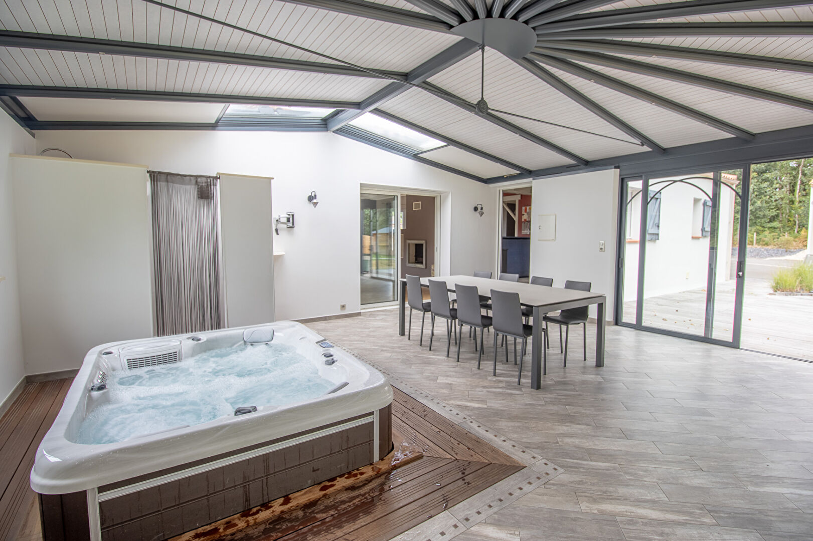 Située à La Garnache, à 40 km de Nantes et 25 km des plages. Dans un quartier calme résidentiel et arboré, à proximité d'une école, d'un parc de loisirs et des commerces. Découvrez cette maison de 159 m² + 50 m² de véranda avec spa. De plain-pied, elle est construite sur un grand terrain de 1587 m², sans vis-à-vis. Elle comprend une véranda de 50 m² avec jacuzzi, un salon avec cheminée, une cuisine ouverte sur la salle à manger, un bureau, quatre chambres dont une suite parentale, une salle de bain, un WC séparé et un double garage avec cave. Le jardin est arboré, entièrement clos, avec une terrasse en bois, un terrain de pétanque à l'ombre et une cabane. Une maison agréable, spacieuse et bien située. Aucun travaux à prévoir. Coup de coeur assuré ! (3.90 % honoraires TTC à la charge de l'acquéreur.)