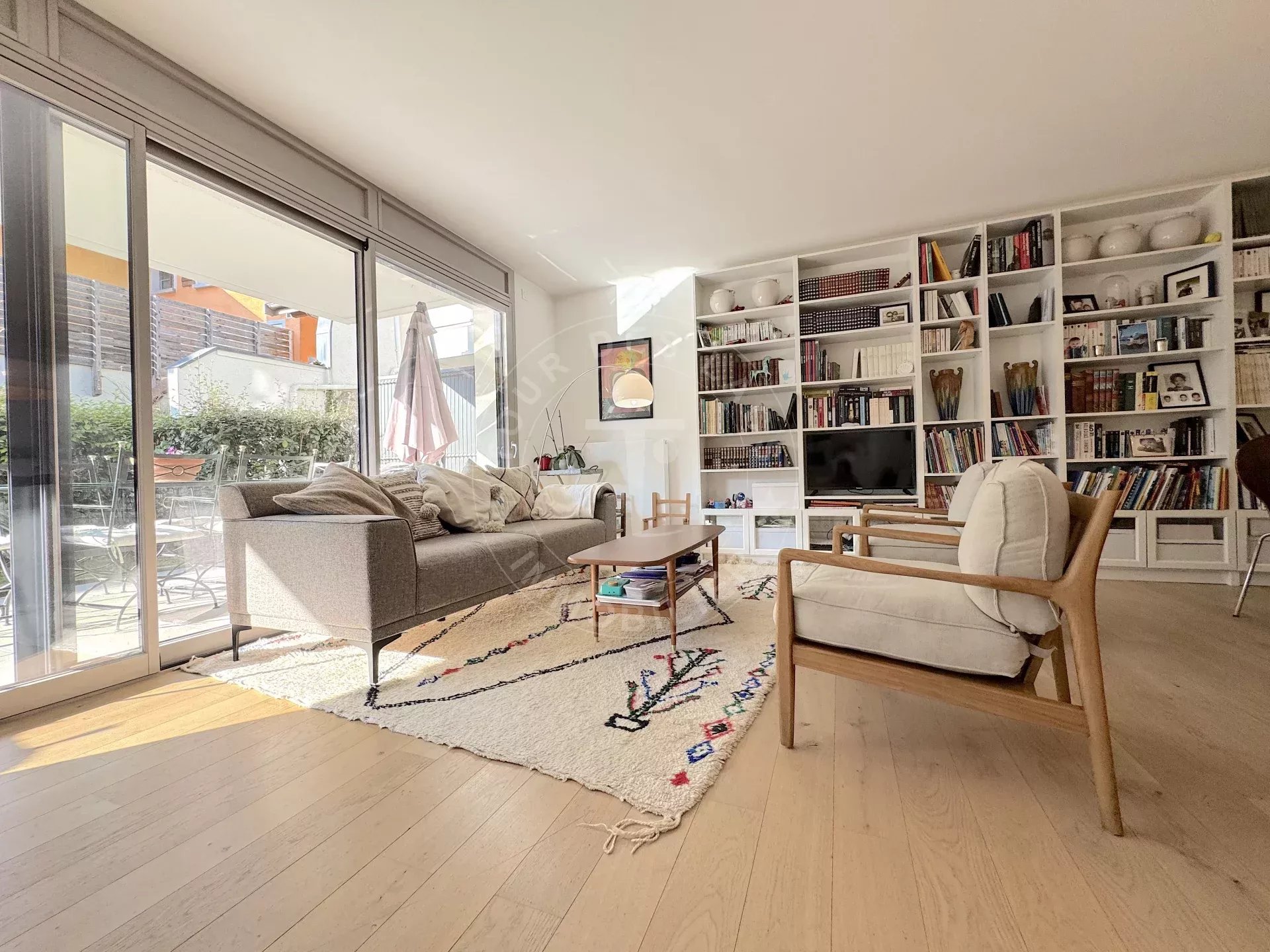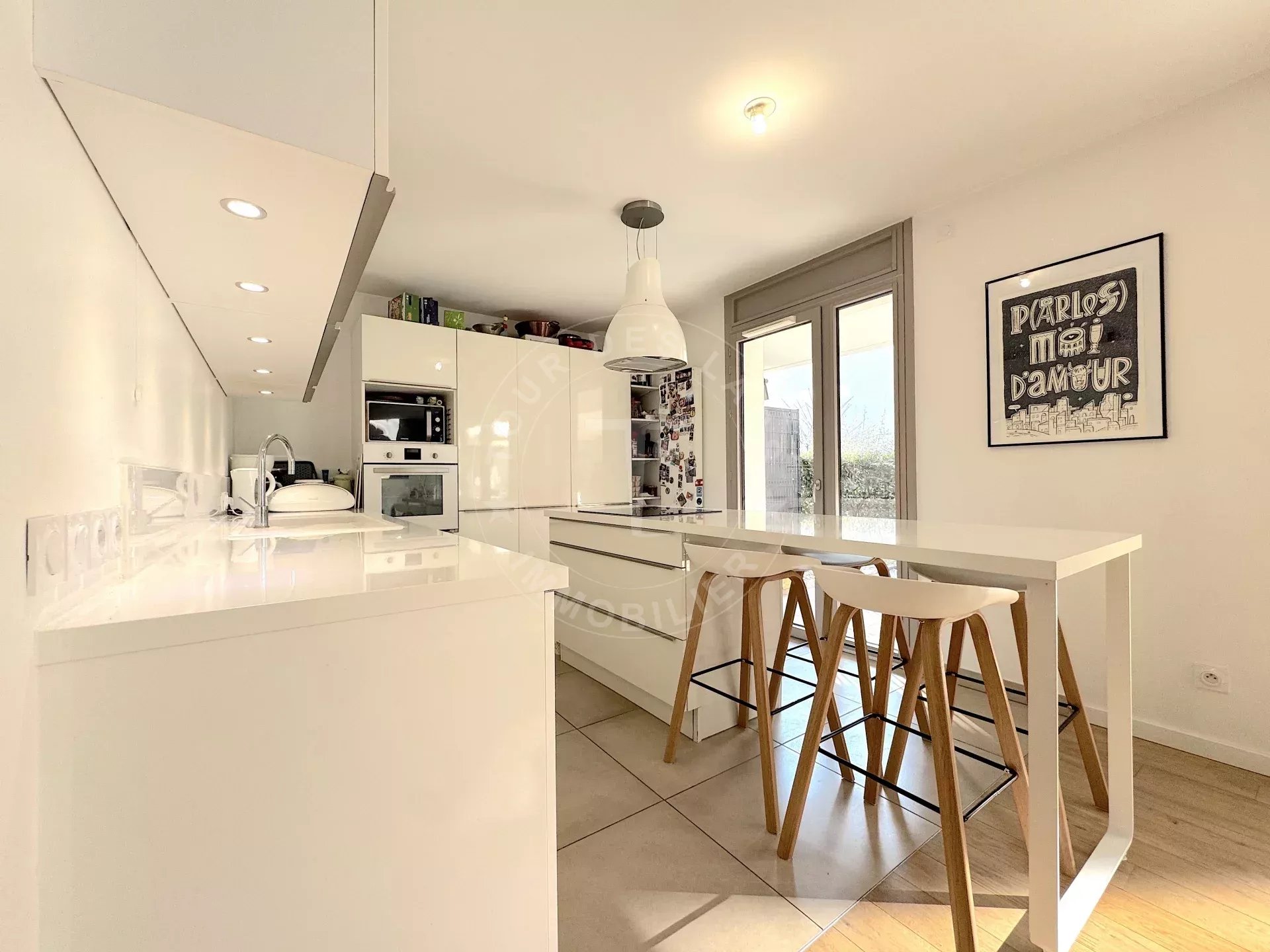 Dès l’entrée, vous profitez d’un espace optimisé avec rangements, qui s’ouvre sur une superbe pièce de vie de 50 m². Ce bel espace intègre un séjour chaleureux, une salle à manger conviviale et une cuisine ouverte entièrement équipée. Il se prolonge naturellement sur une terrasse et un agréable jardin privé, parfaits pour vos moments en plein air.