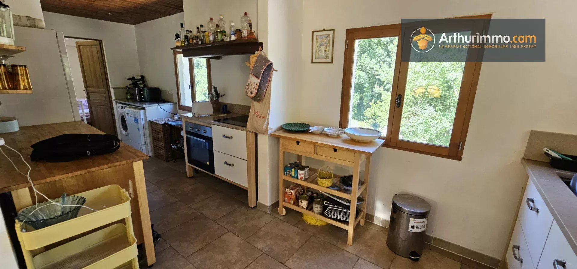 Cette propriété confortable comprend une cuisine ouverte sur la salle à manger, un salon chaleureux et des portes-fenêtres donnant sur la grande terrasse.
