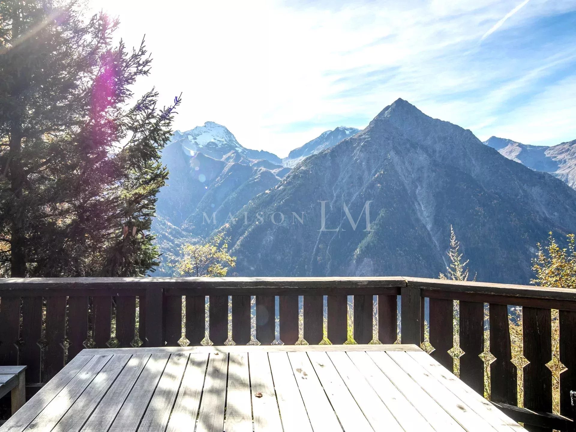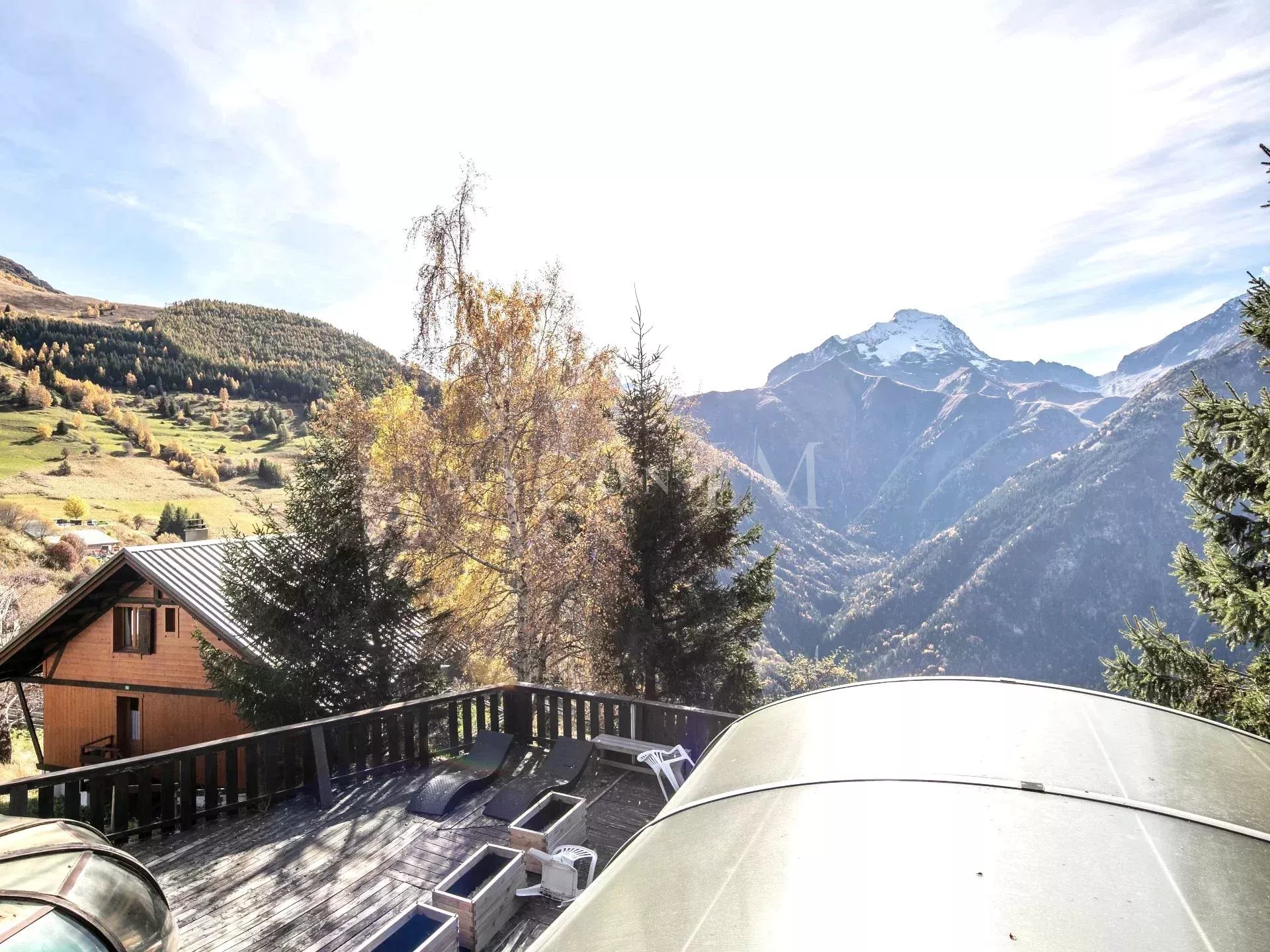 Emplacement exceptionnel avec vue panoramique sur les montagnes et sur Venosc pour ces deux chalets d'une surface totale de 240 m² sur environ 700 m² de terrain.