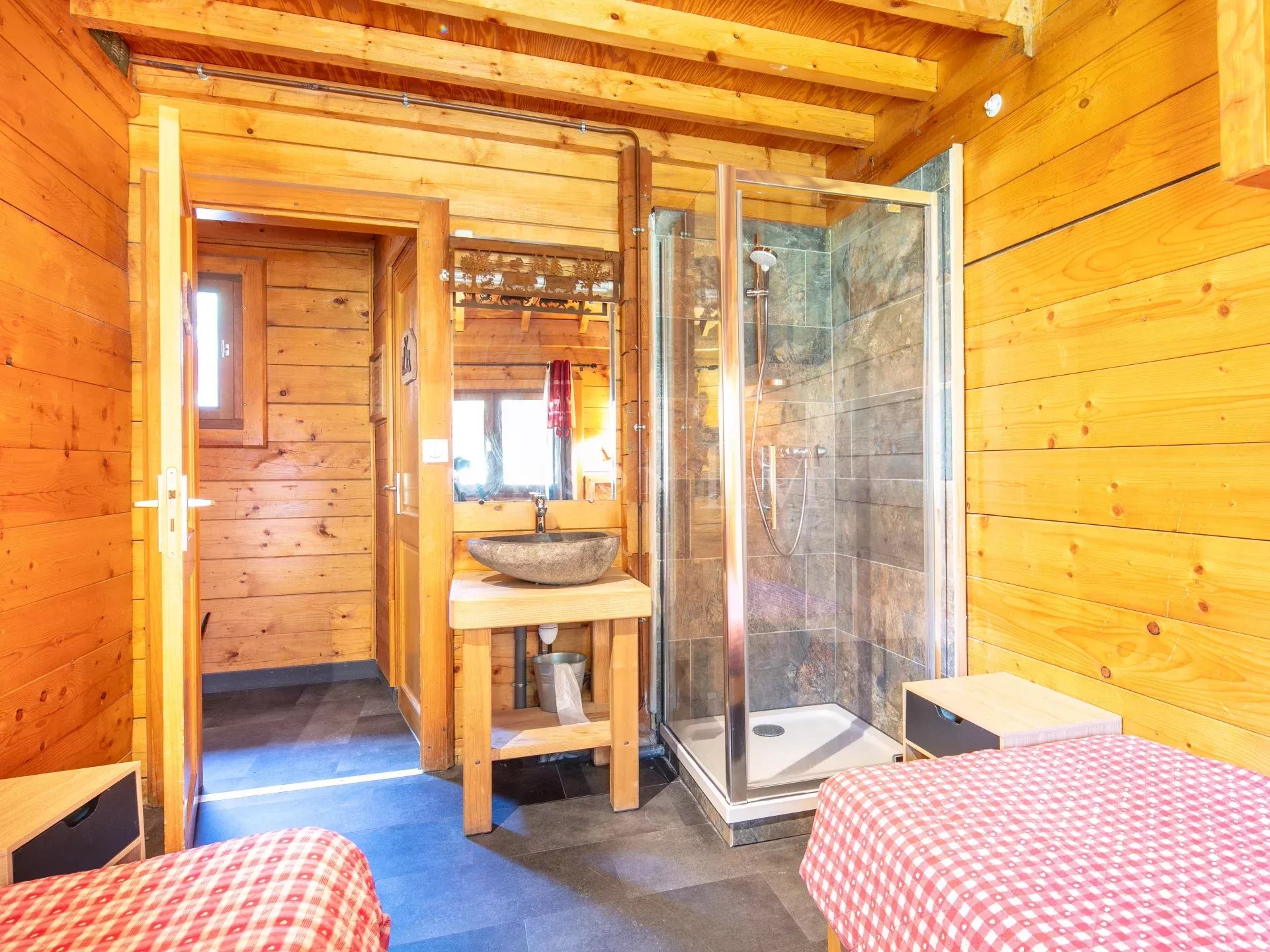 Ces 2 chalets en madrier massif, chacun avec sa piscine privée, se composent comme suit :