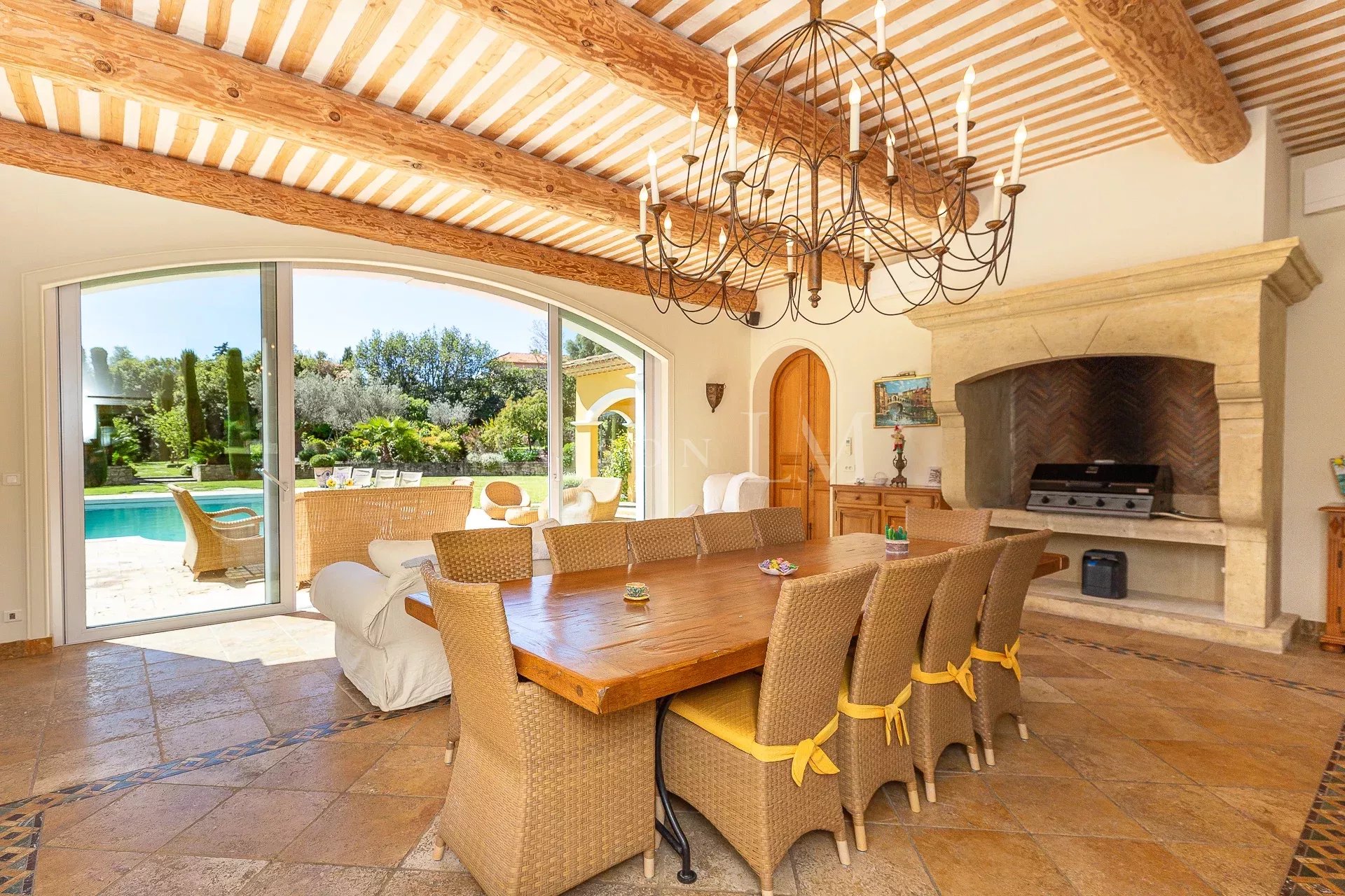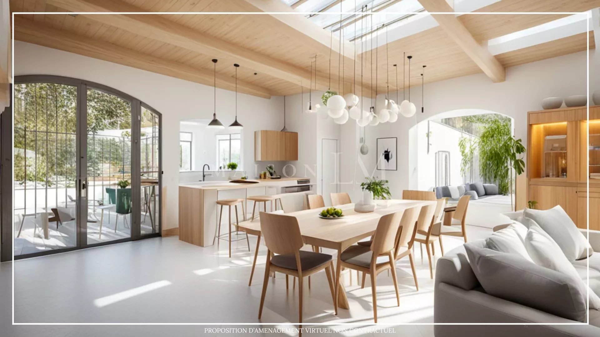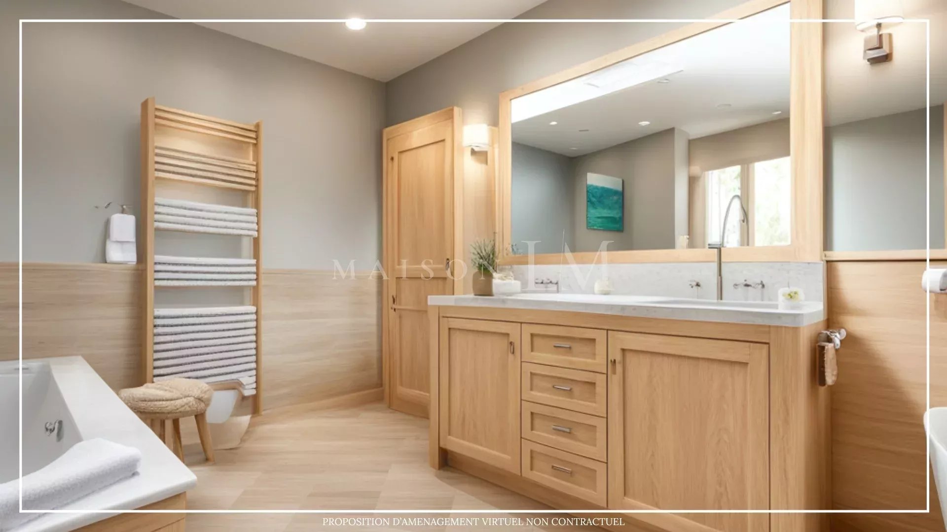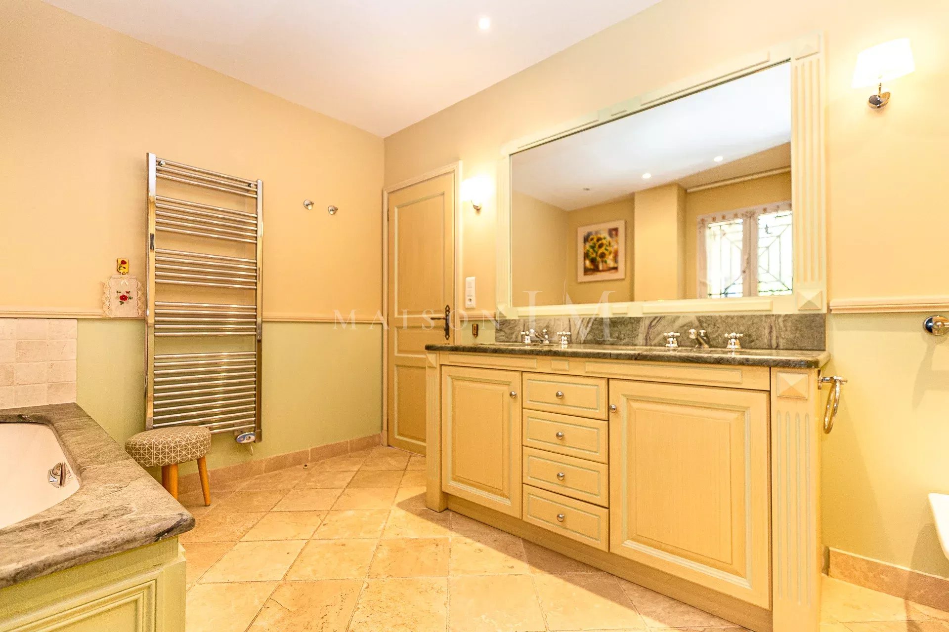 Dès l'entrée, un vaste séjour baigné de lumière vous accueille avec un piano, une cheminée et une bibliothèque, parfait pour des moments de détente ou de réception. Le salon, équipé d’un bar et d'une cheminée, s'ouvre sur une splendide terrasse prolongée par une piscine chauffée, invitant à la détente en plein air. La cuisine entièrement équipée avec sa salle à manger ravira les amateurs de gastronomie. Au rez-de-chaussée, trois chambres dont une suite parentale de 100 m² avec dressing et salle de bain privée offrent confort et intimité.