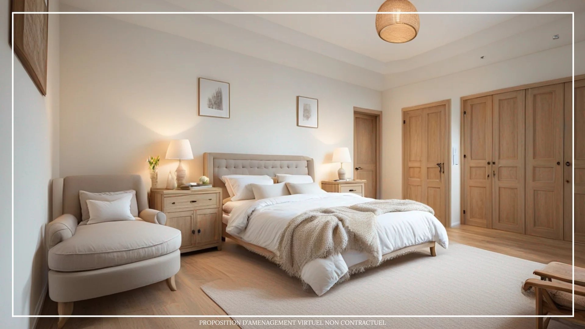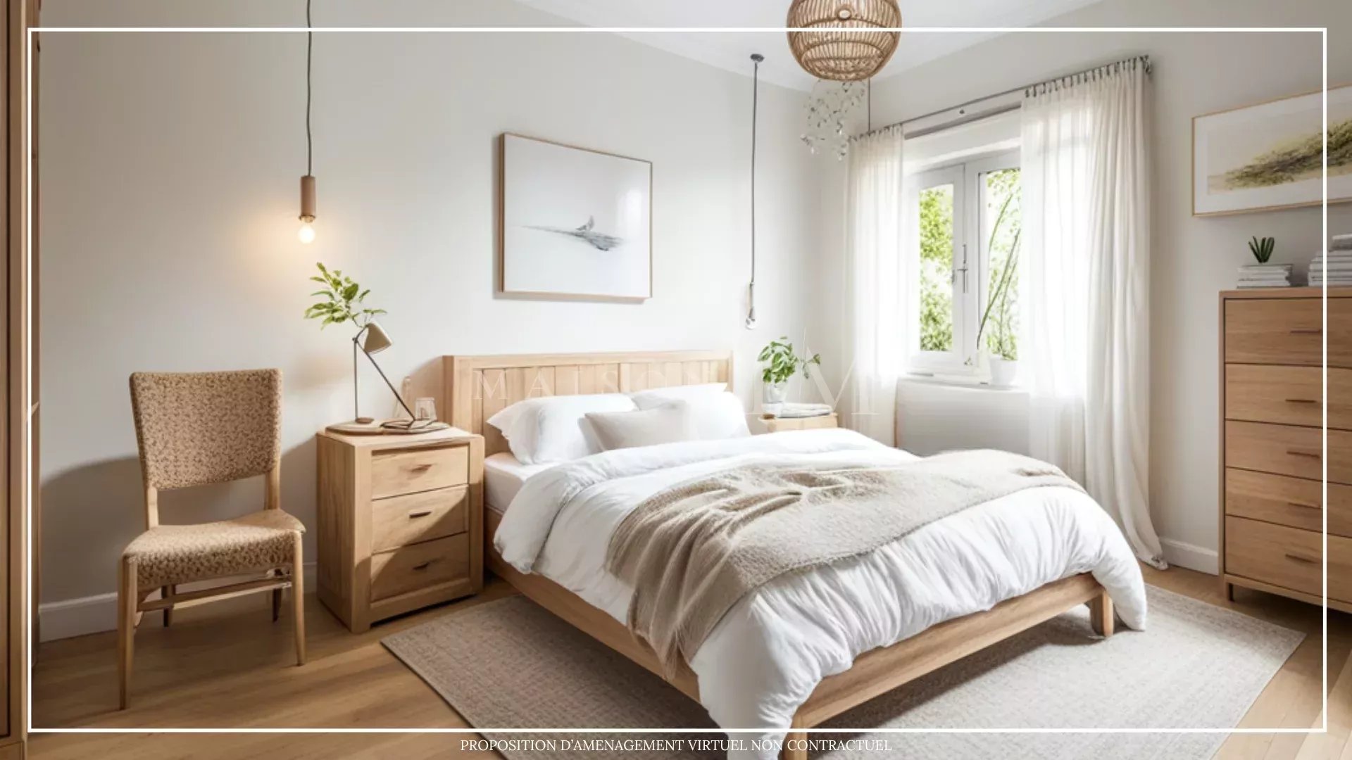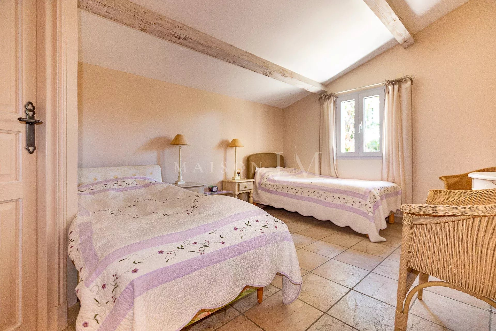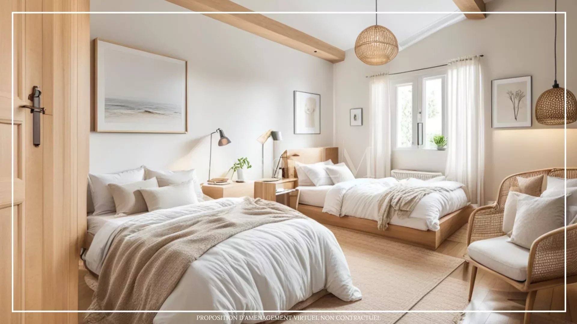 À l'étage, quatre chambres lumineuses avec balcons privés et salles de bain attenantes vous assurent un espace de repos élégant, ainsi qu'une chambre dédiée au personnel.