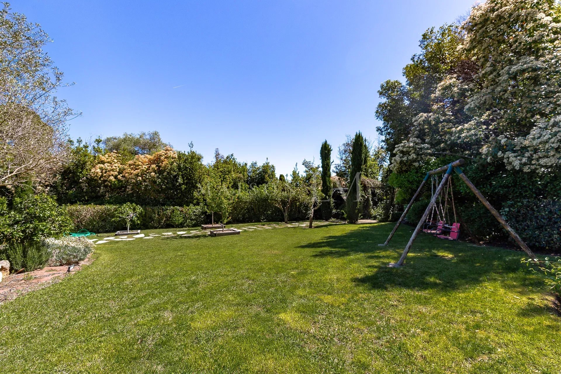 Le terrain plat de 4 300 m², magnifiquement aménagé, est un véritable écrin de verdure. Vous y trouverez un bassin à poissons, des rosiers parfumés, une élégante fontaine, et une grande piscine chauffée, idéale pour se ressourcer. Un système de surveillance par caméras assure la sécurité de votre foyer.