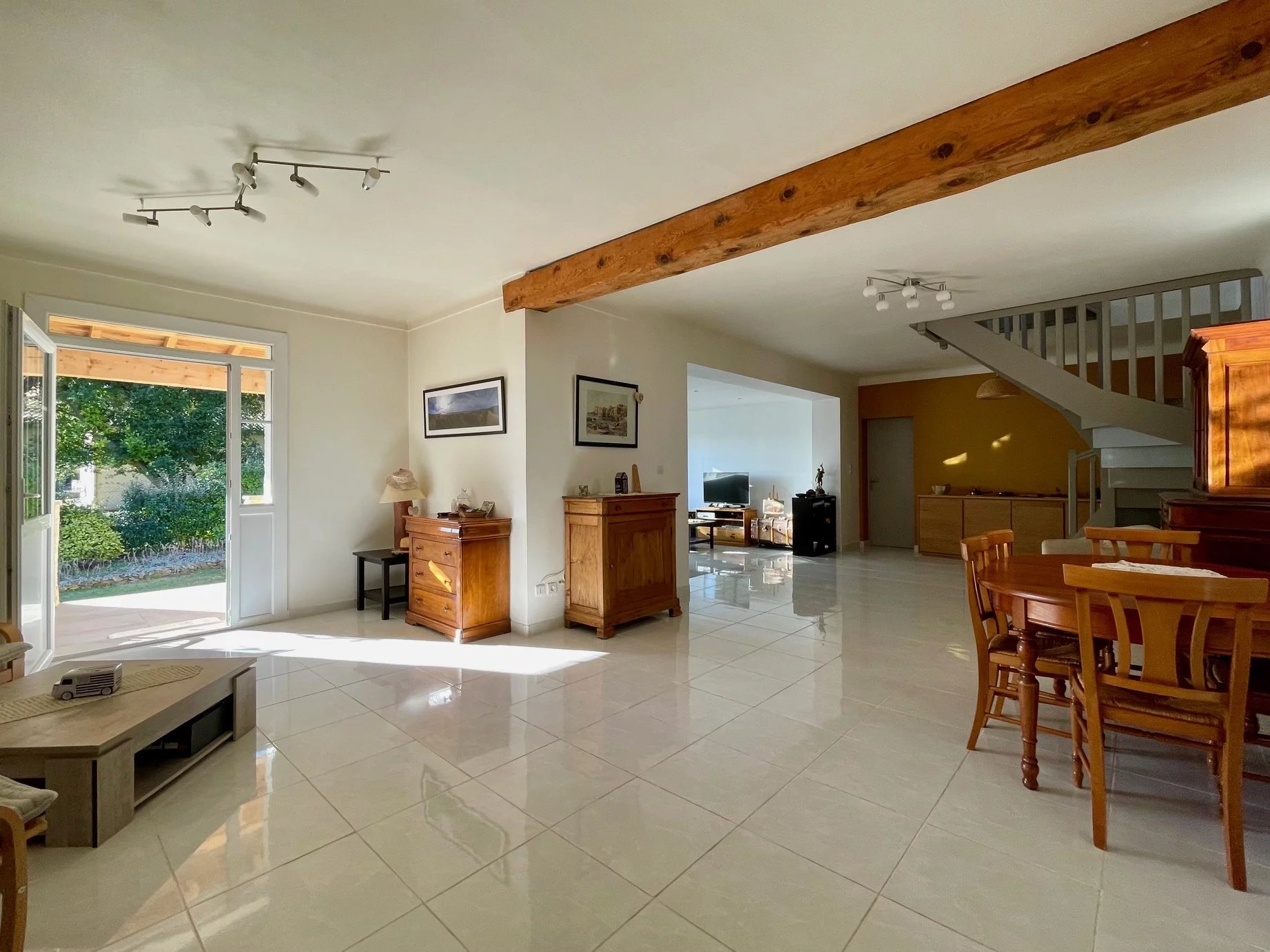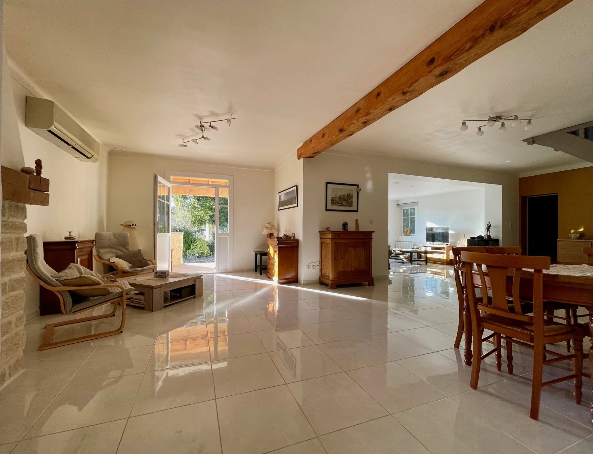 A 40 mn D'Avignon TGV, 5 mn de L'Isle sur la Sorgue, villa d'environ 215 m². Principalement de plain-pied avec Hall d'entrée, grand salon séjour cheminée, 4 chambres, 2 salles d'eau, 2 wc, cuisine équipée, cellier et garage buanderie.