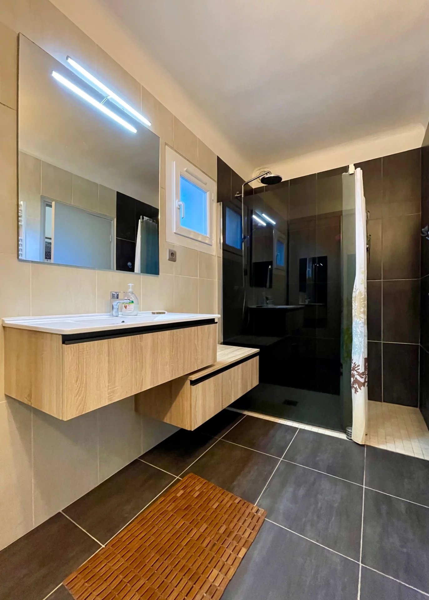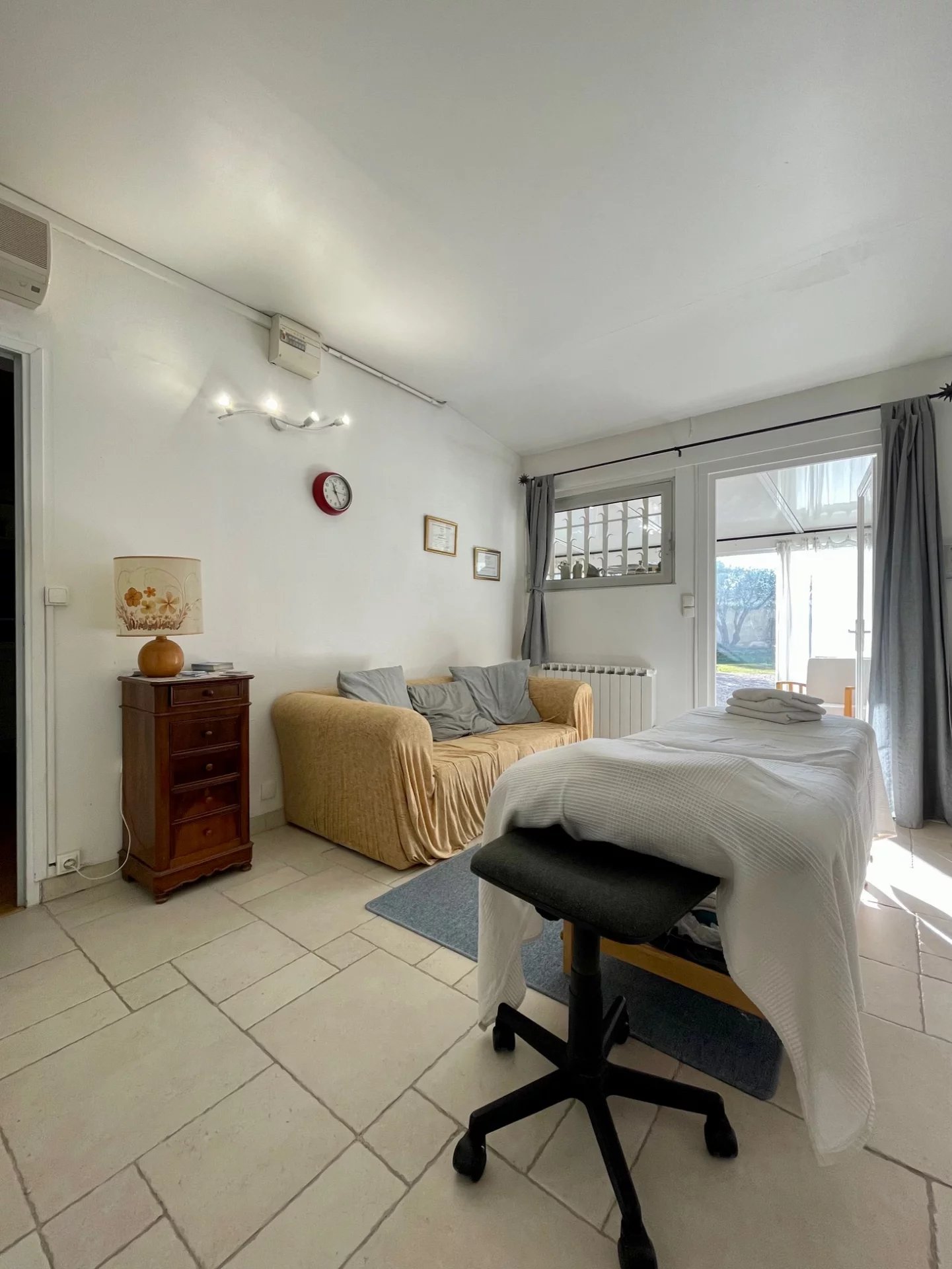 Climatisation, eau de ville, edf, téléphone, assainissement individuel, portail automatisé, interphone, menuiseries double vitrage, volets bois.