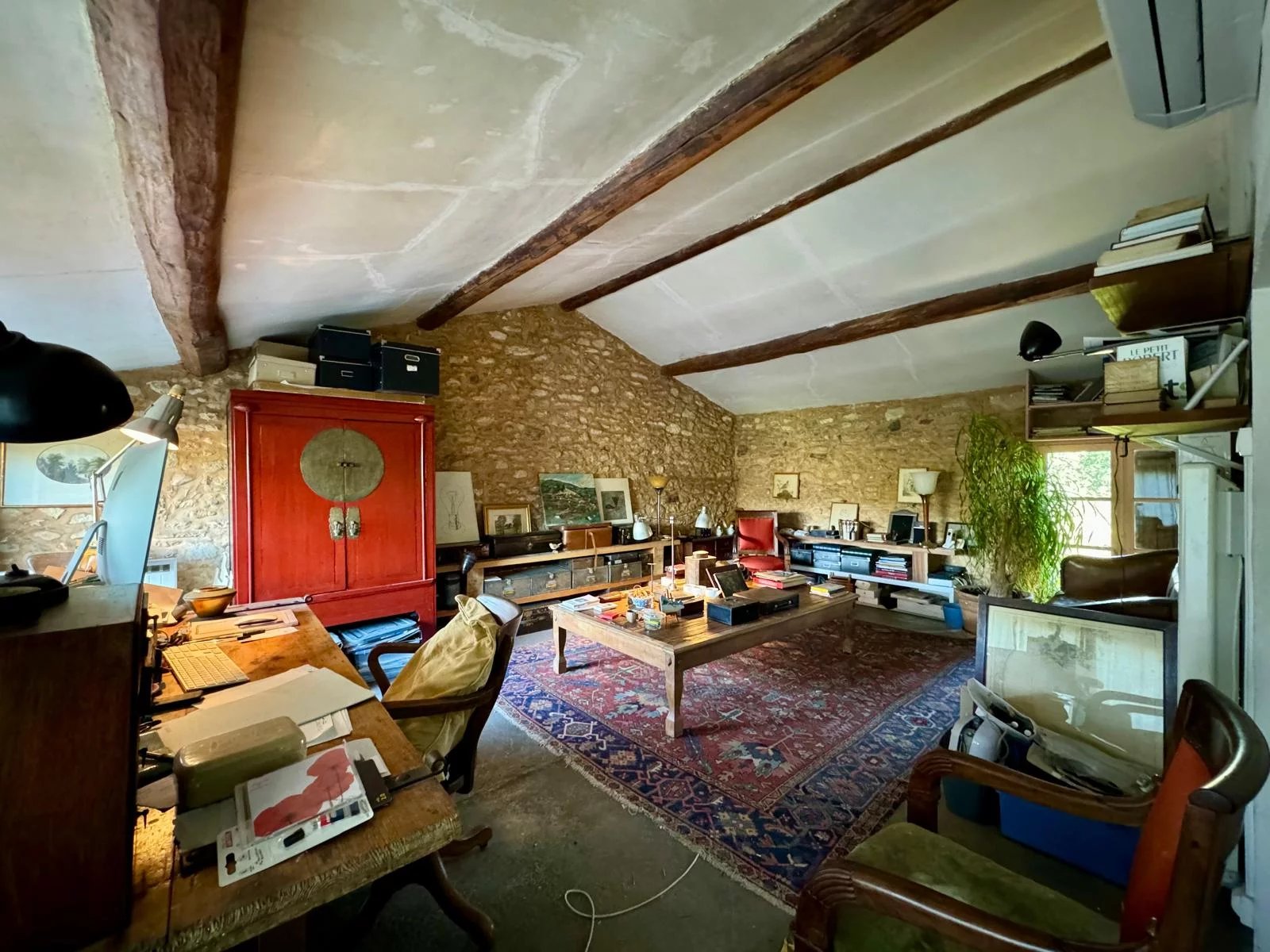 À l’étage, deux chambres spacieuses d’environ 15 m² chacune, accompagnées d’un vaste salon donnant accès à une terrasse ensoleillée, idéale pour profiter des douces soirées provençales. Un grand atelier d’environ 40 m², complète cet étage, parfait pour les artistes ou les amateurs de grands espaces créatifs. À noter que deux pièces supplémentaires, à aménager selon vos envies, sont accessibles directement depuis le bureau du rez-de-chaussée.