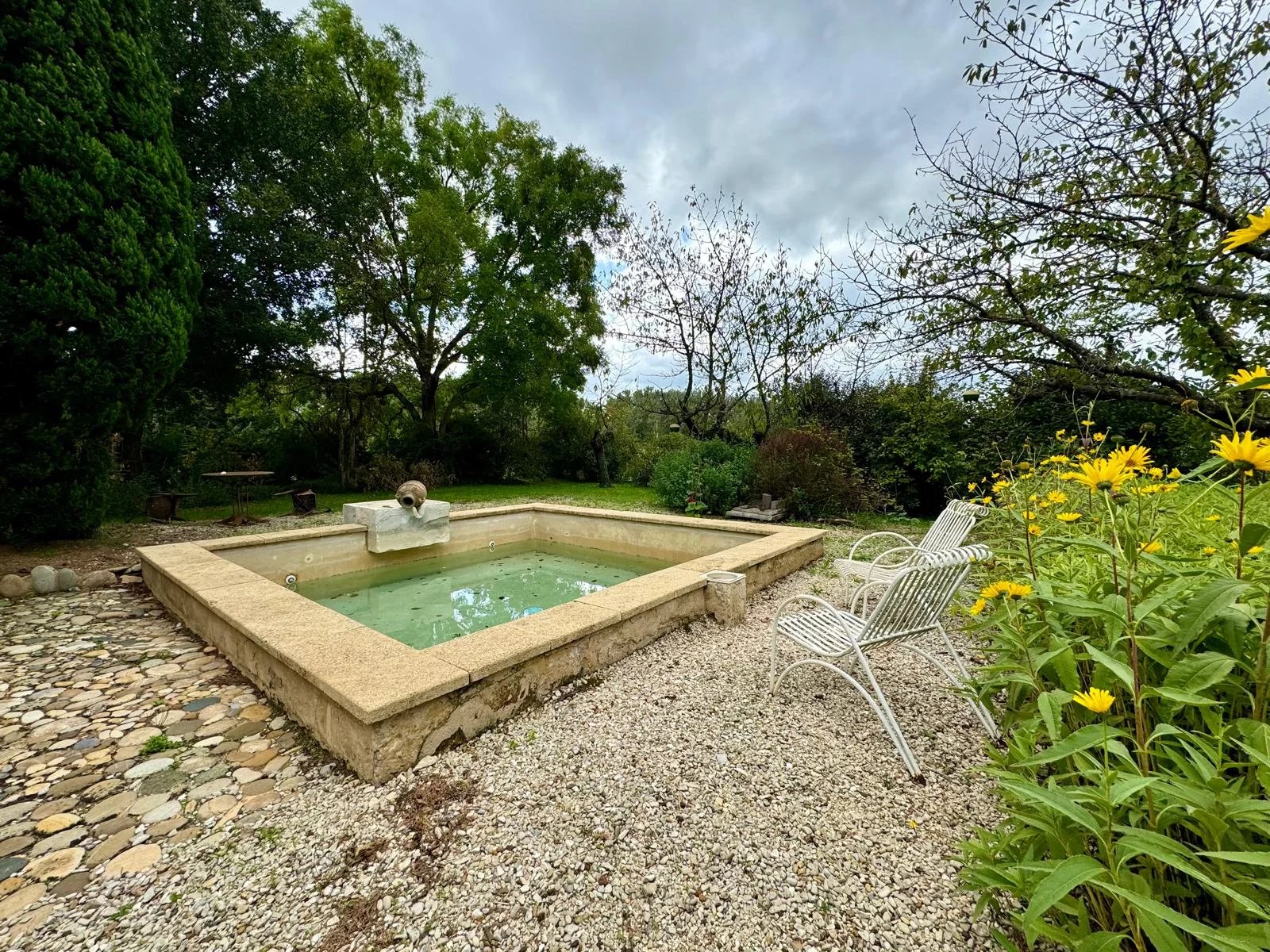 Le jardin, véritable écrin de verdure, est embelli par un charmant bassin et un majestueux chêne bicentenaire, ajoutant une note de poésie à cet ensemble unique.