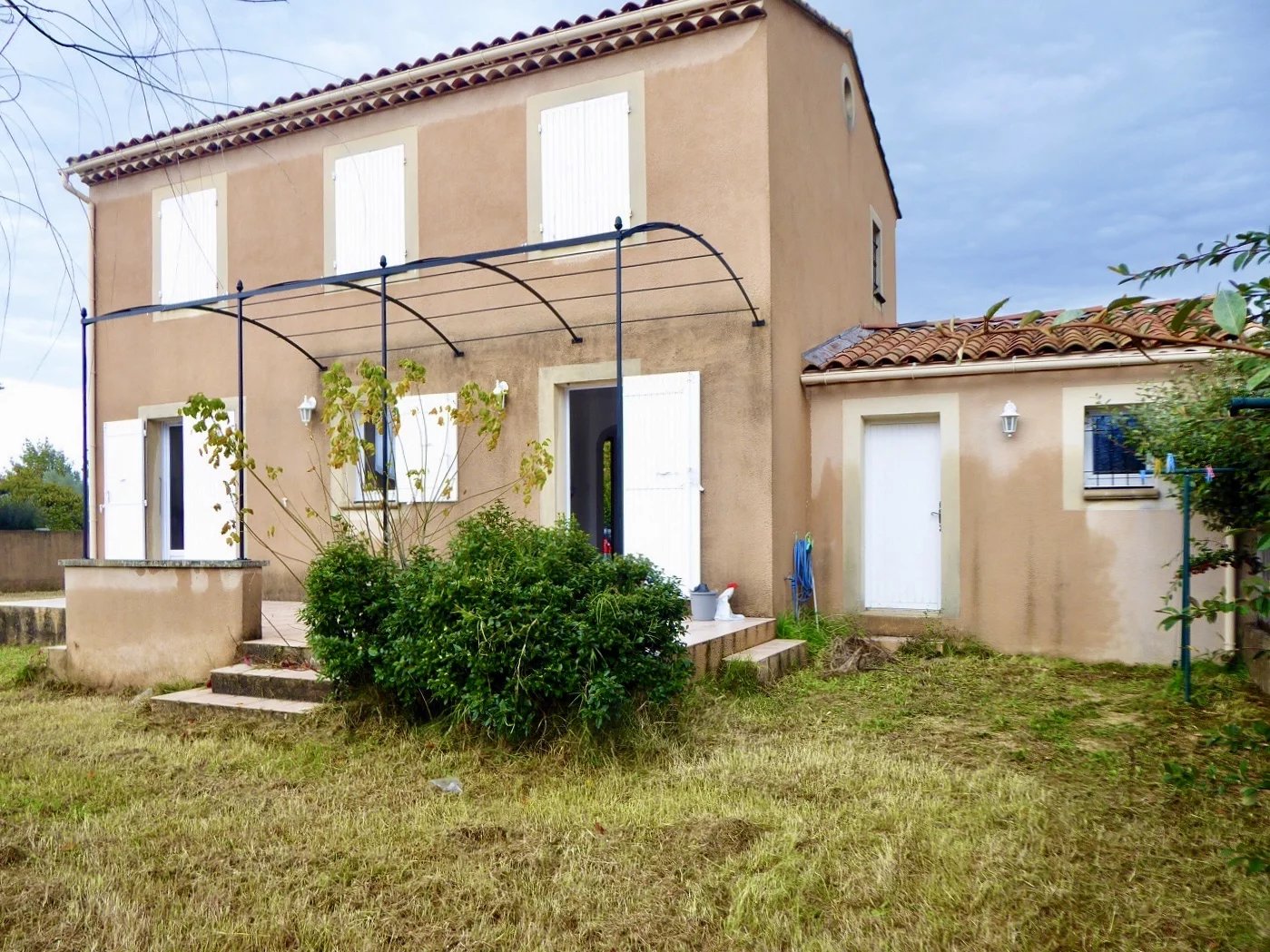 Villa sur 2 niveaux, environ de 101 m² habitables sur environ 500 m² de terrain clos avec garage attenant, comprenant au rez-de-chaussée: Hall d'entrée, séjour, cuisine aménagée, wc indépendant, cellier, terrasse carrelée avec pergola. A l'étage, palier, trois chambres, salle de bains, wc, bureau. Propriété au calme proche de tous les commerces à l'année et à 15 mn d'Avignon.