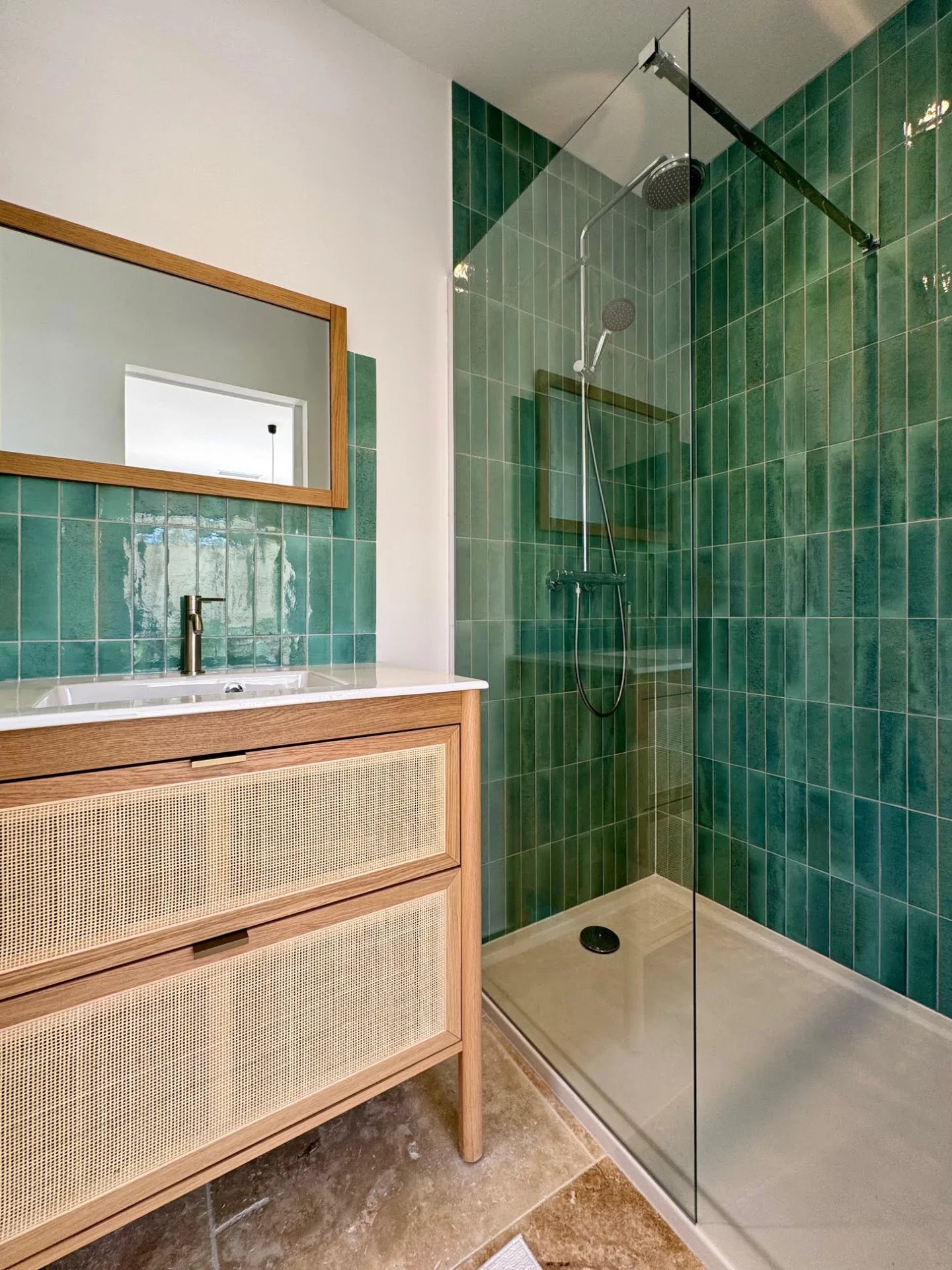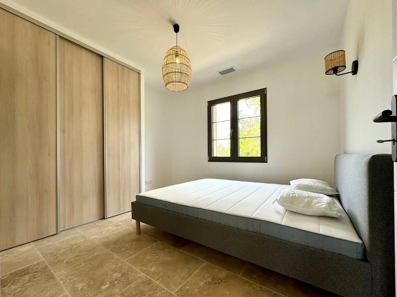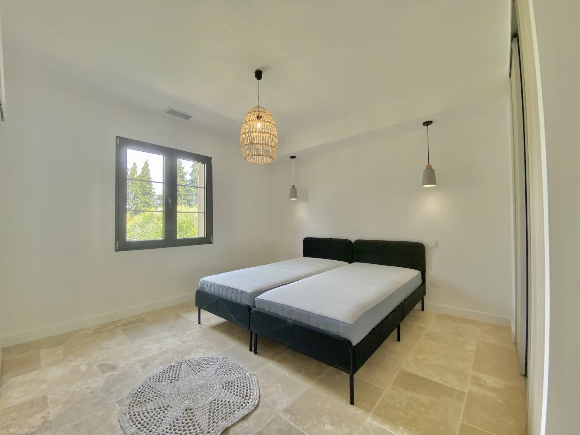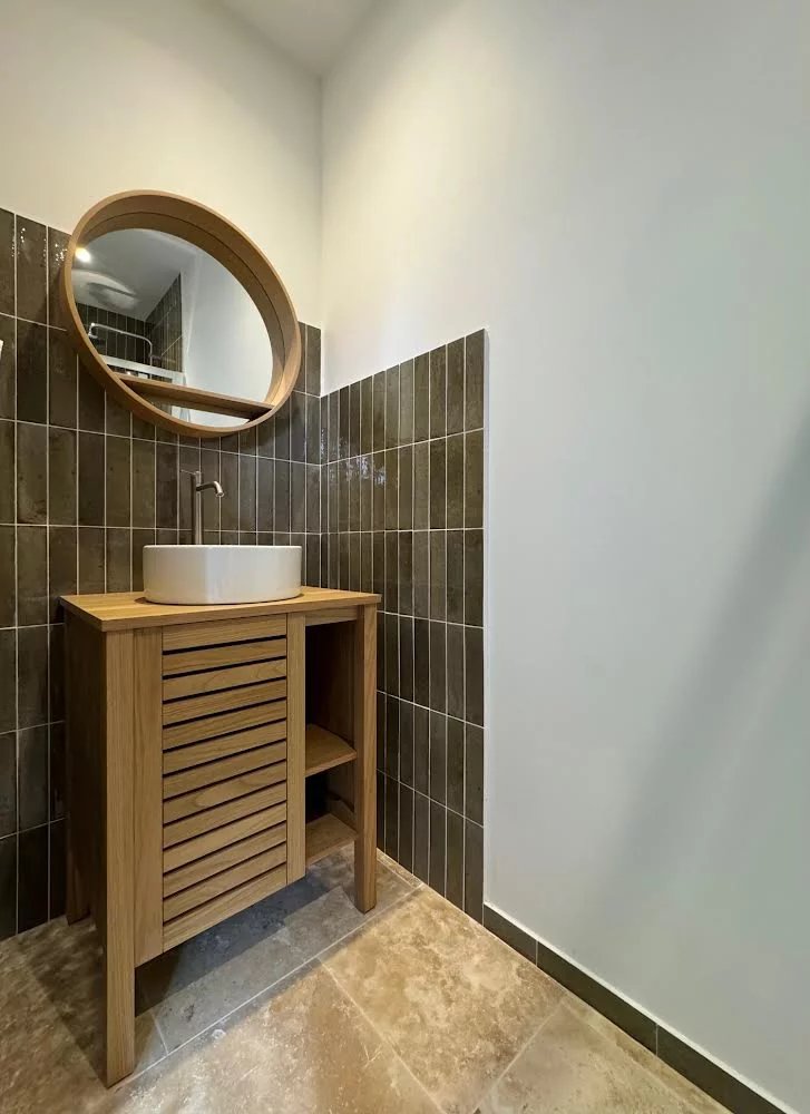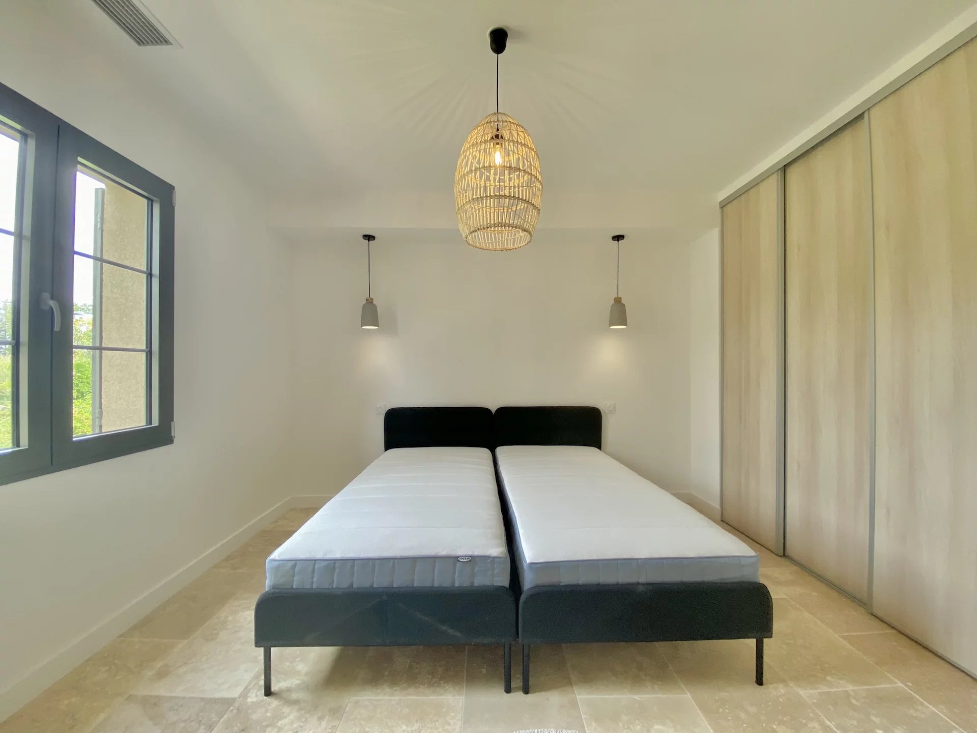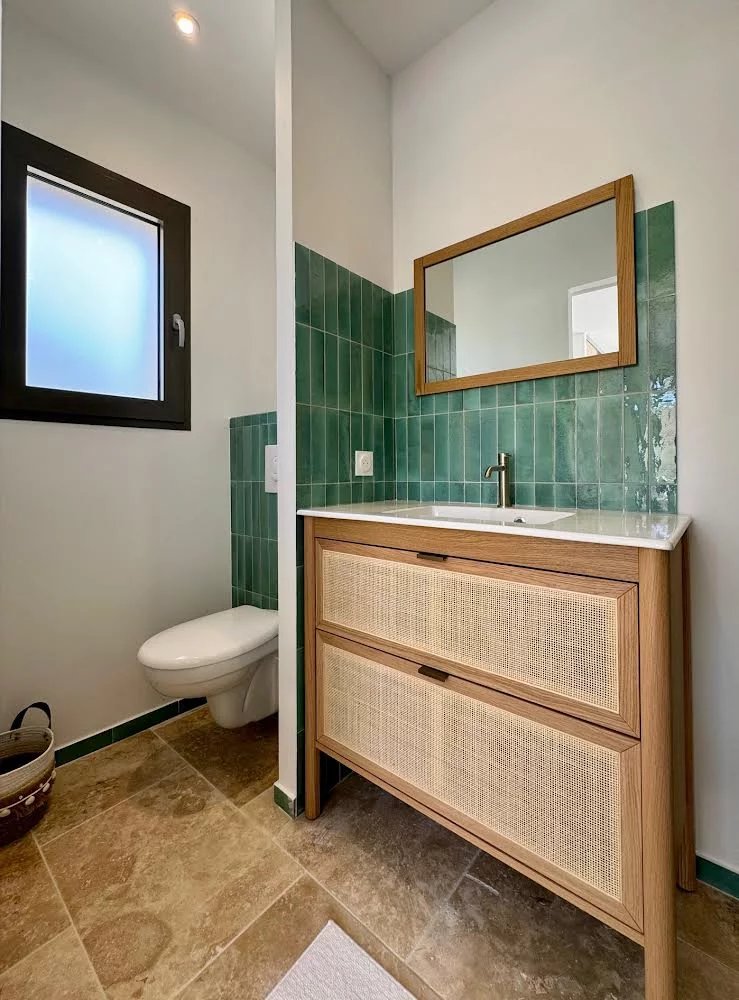 Elle comprend trois chambres en suite dans la maison principale et une suite indépendante d'environ 20 m² ouvrant sur le jardin, parfaite pour accueillir famille et amis. La chambre principale bénéficie d'un accès direct à la terrasse. Toutes les chambres sont dotées de placards coulissants.