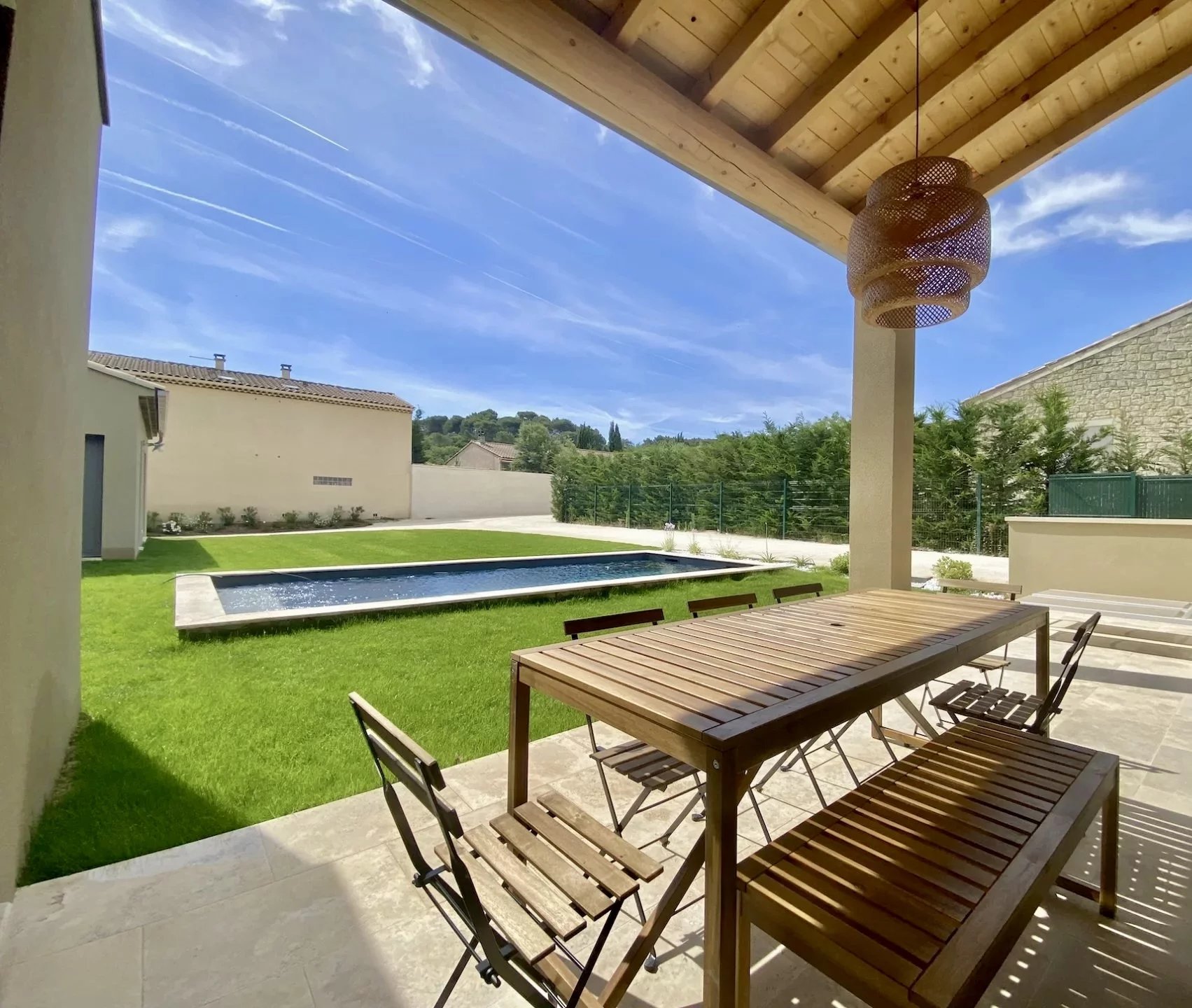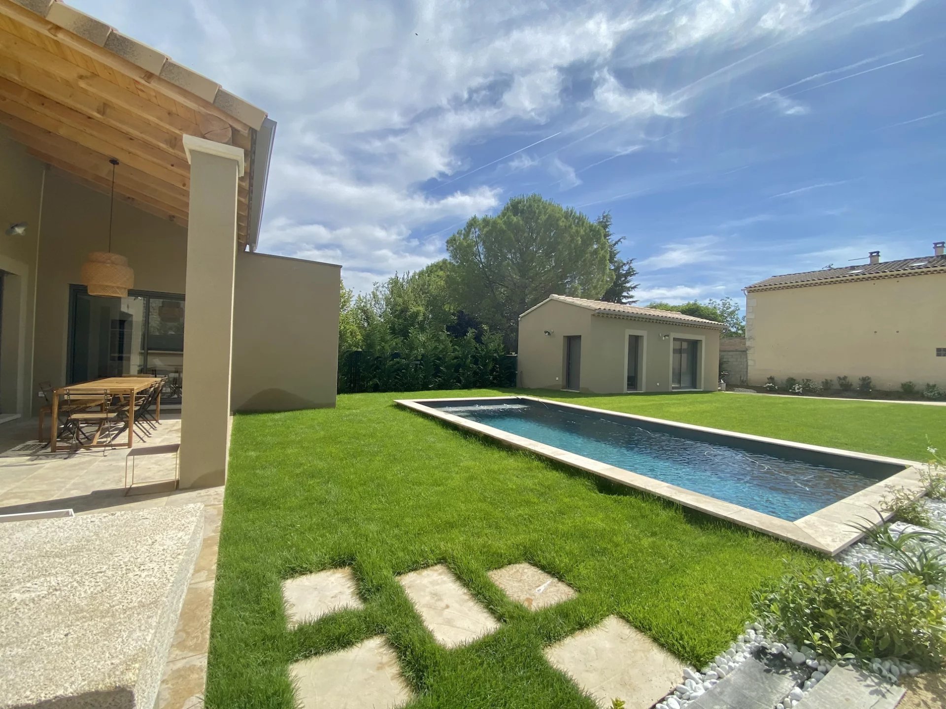 Le jardin est agrémenté d'une élégante piscine de 8x3 mètres, idéale pour se rafraîchir et se détendre.