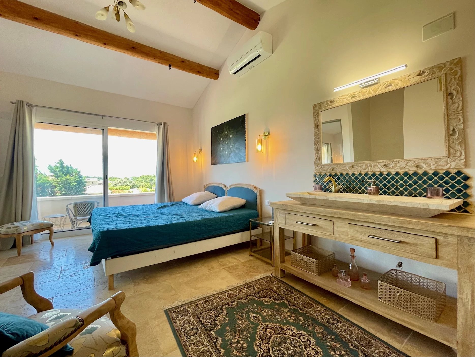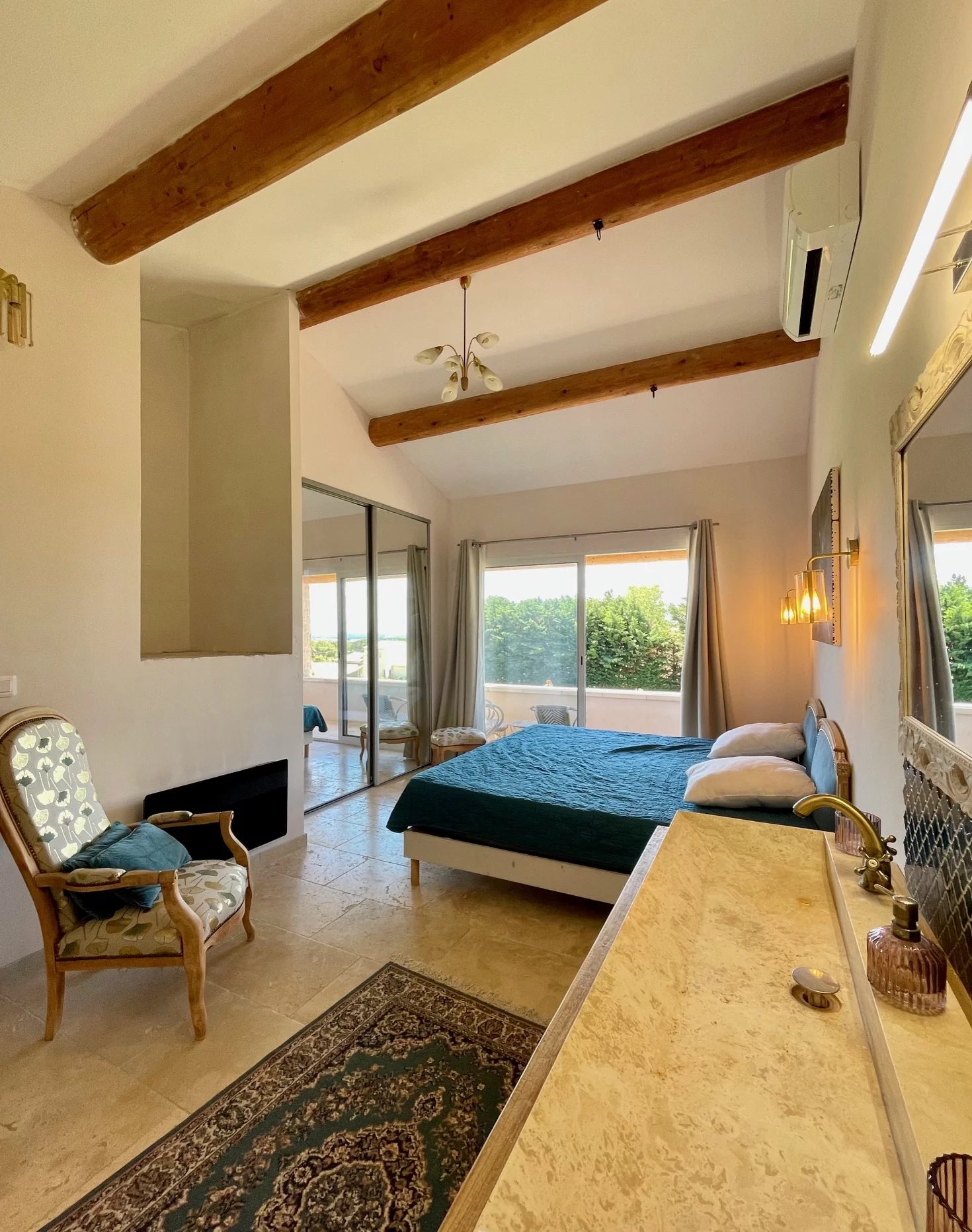 Piscine pool-house, Exposition Sud, menuiseries double vitrage, fosse septique, eau de ville, eau de forage, radiateurs radiants et poêle à bois, climatisations réversibles.