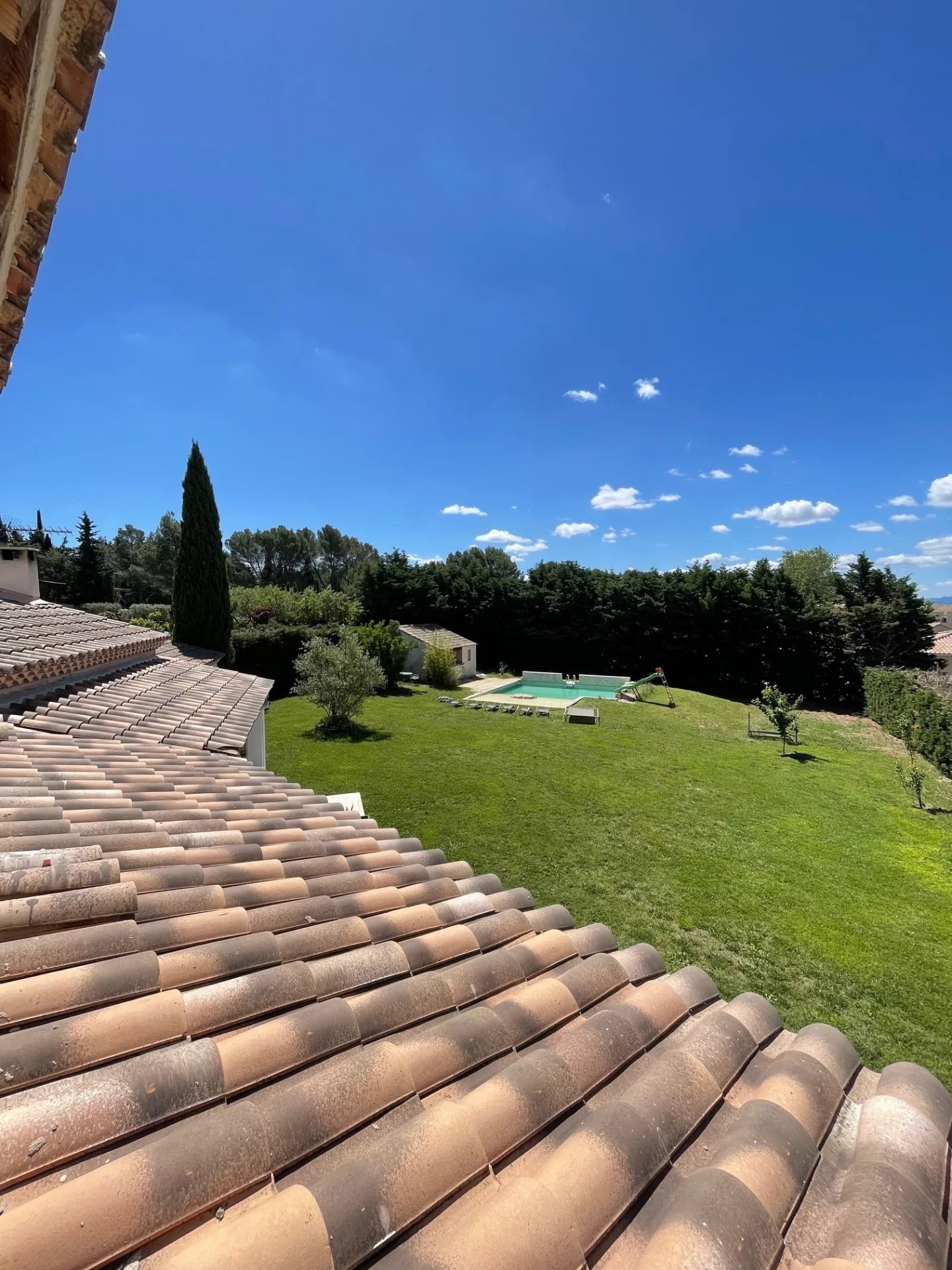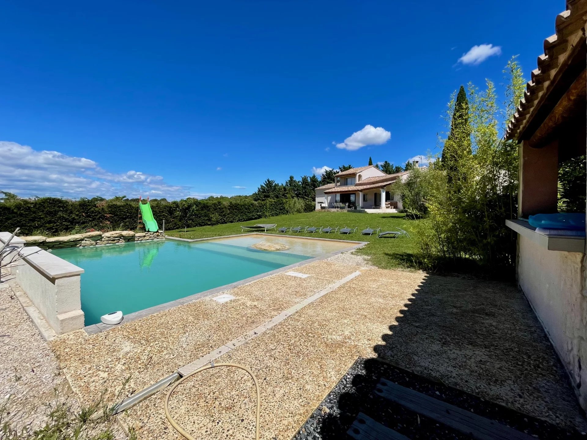 Au calme, 40 mn d'Avignon TGV, 5 mn de l’Isle sur la Sorgue et en quartier résidentiel, Villa d’environ 180 m² sur deux niveaux, appartement attenant indépendant piscine et pool-house, l'ensemble totalisant 6 chambres et 4 salles d'eau, l'ensemble sur un terrain clos et arboré en position dominante sur la partie Ouest de la propriété.