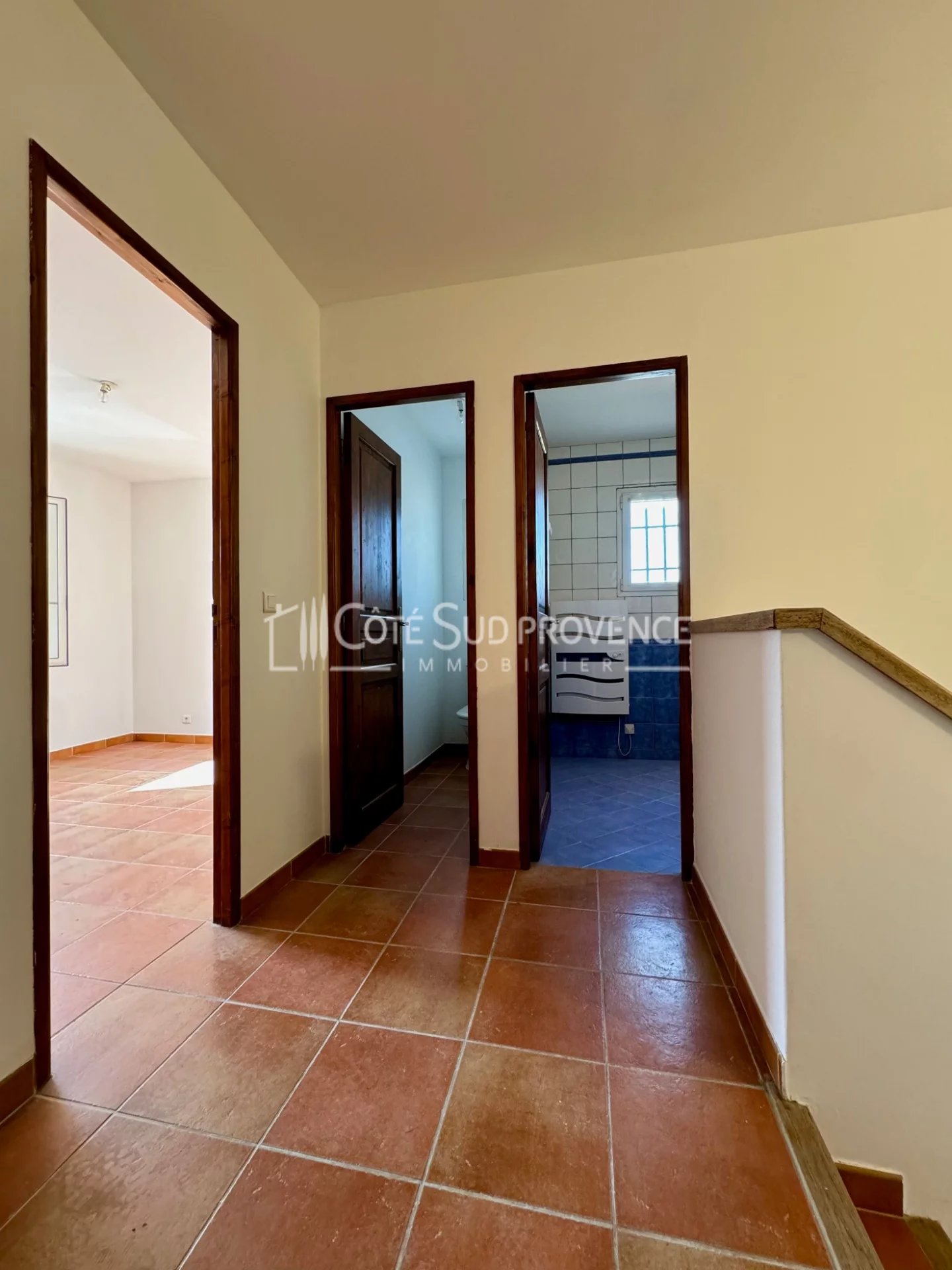 A 20 mn d'Avignon TGV, au calme, 2 mn à pieds de tous les commerces du village, villa construite en 2005 d'environ 110 m² sur deux niveaux, Hall d'entrée, wc indépendant, salon séjour cuisine, escalier, palier, 3 chambres avec placards, salle de bain, wc indépendant, buanderie, jardinet au Sud cloturé, l'ensemble sur une parcelle de terrain clos d'environ 150 m². Menuiseries aluminium, volets roulants automatisés, climatisations réversibles, assainissement collectif.