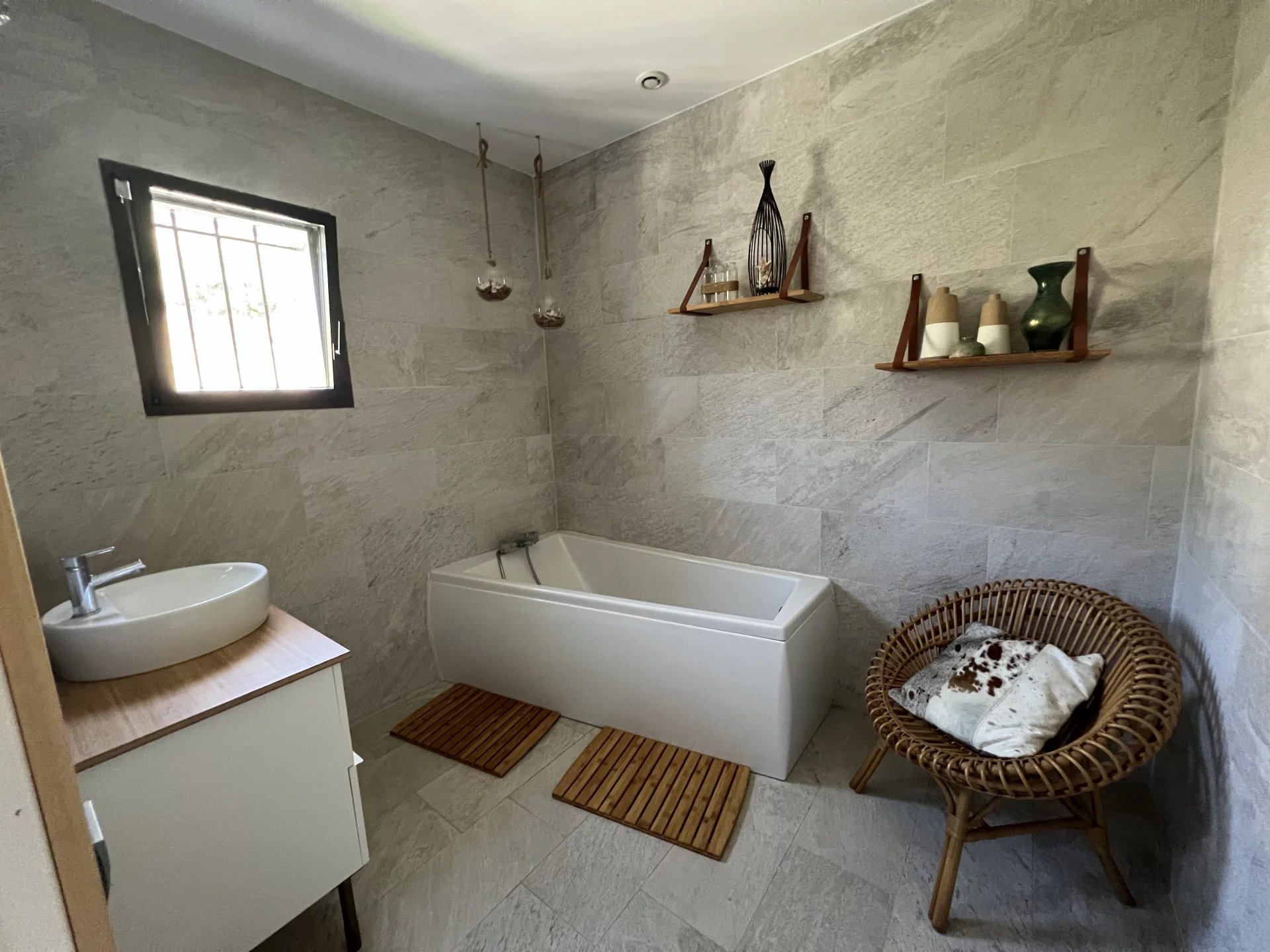 A découvrir cette superbe villa contemporaine sur une parcelle de plus de 4000m2 à seulement 15 minutes de Perpignan! Ultra lumineuse cette villa vous surprendra dès l'entrée . Une vaste pièce de vie de plus de 60m2 avec une cuisine américaine de qualité disposant d'un ilot central pouvant accueillir 10 personnes donnant sur des terrasses sans aucun vis à vis et exposée plein sud. Une magnifique cheminée vous permettra de belles soirées cocooning. Sur le même niveau un cellier et une très jolie suite parentale avec sa douche à l'italienne . Au second niveau trois chambres supplémentaires dont une suite et une salle de bain indépendante Enfin au rez de jardin une salle de sport de 70m2 , un dressing de 40m2 et un atelier de même surface . De multiples possibilités d'aménagement dans cet espace si vous souhaitez en changer la destination . La villa est implantée sur une belle parcelle de pus de 4000m2 et dispose d'un carport et est plantée d'essences méditerranéennes . Vous disposerez également d'une écurie . Enfin le coin de paradis de cette propriété : l'espace piscine ! à l'abri de tous les regards une sublime piscine avec une cuisine d'été entièrement équipée de tout le confort nécessaire . Un produit unique à voir sans tarder !