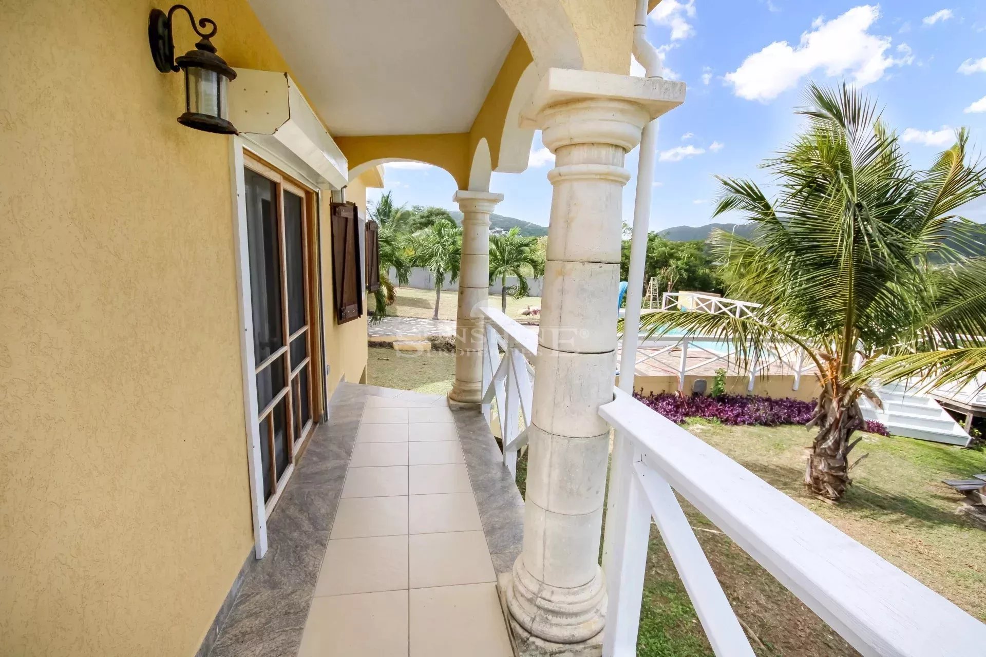Sur un terrain plat de 1923 m^(2), vous trouverez cette villa de 3 chambres et 2,5 salles de bains ainsi qu'un appartement séparé de 2 chambres et 2 salles de bains. Chaque propriété possède sa propre entrée privée.