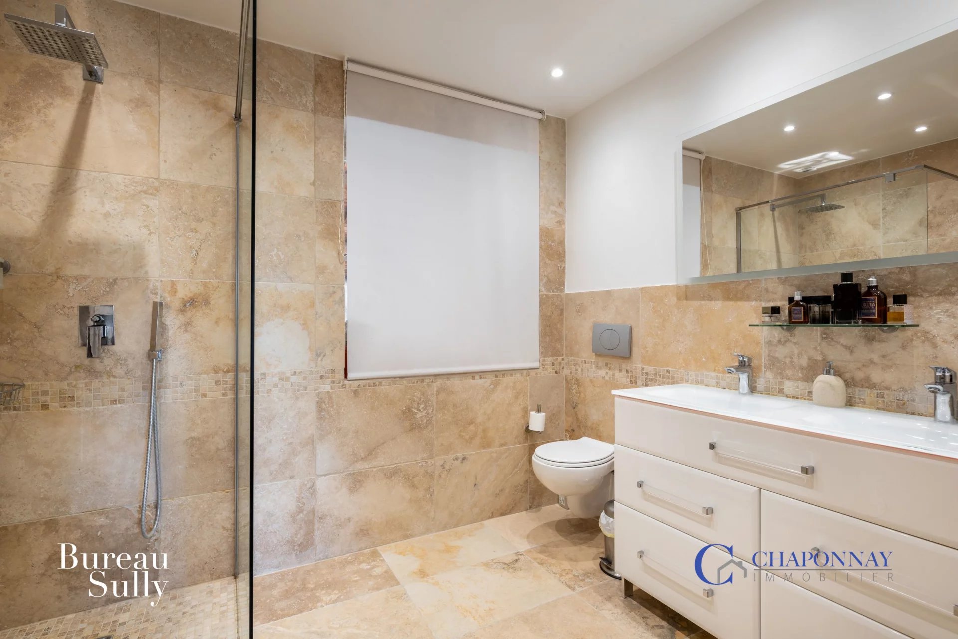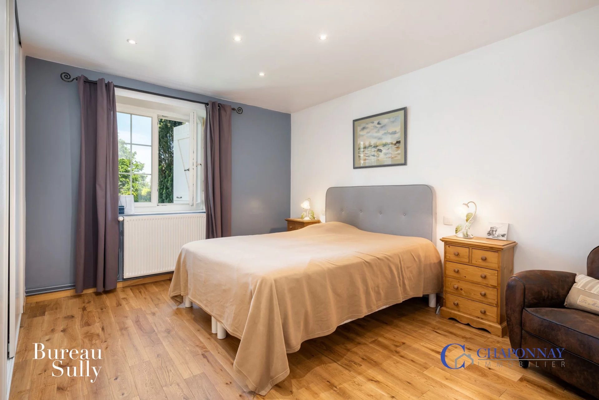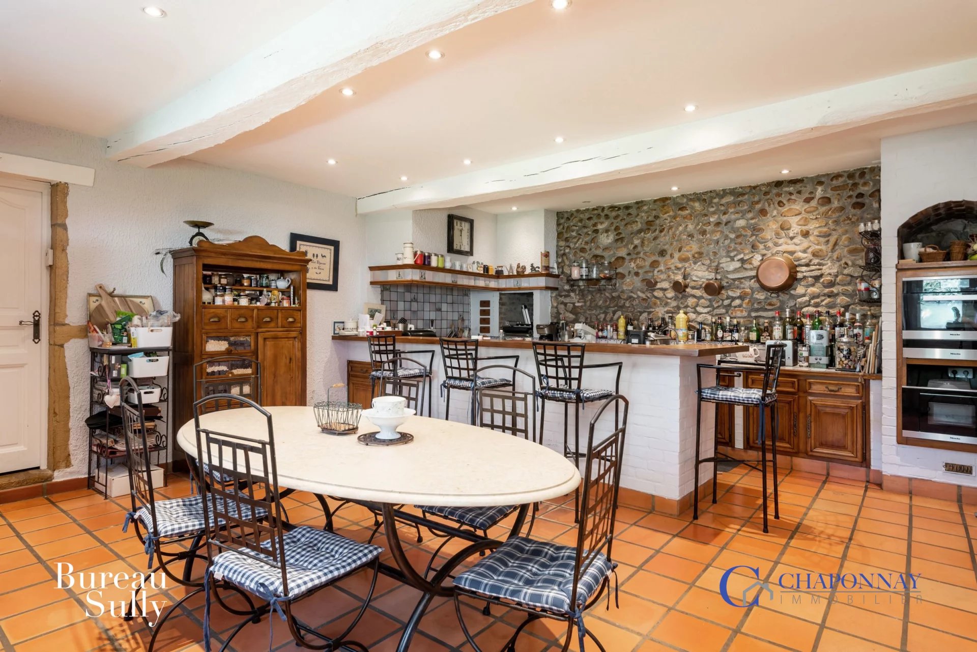 La partie principale se compose d'une grande cuisine équipée et son cellier attenant, un salon-séjour (72m²) déplafonné en partie et très lumineux, 3 chambres dont 2 avec leur salle d'eau privative, un bureau (pouvant devenir une 4ème chambre) une buanderie, 2 WC, et une cave enterrée.