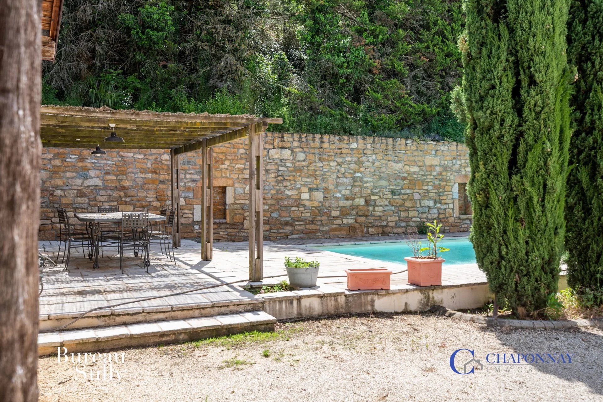 Le terrain joliment aménagé et paysagé avec goût d'une surface de 1350m² environ se prolonge par une partie boisée de 1000m² supplémentaires...