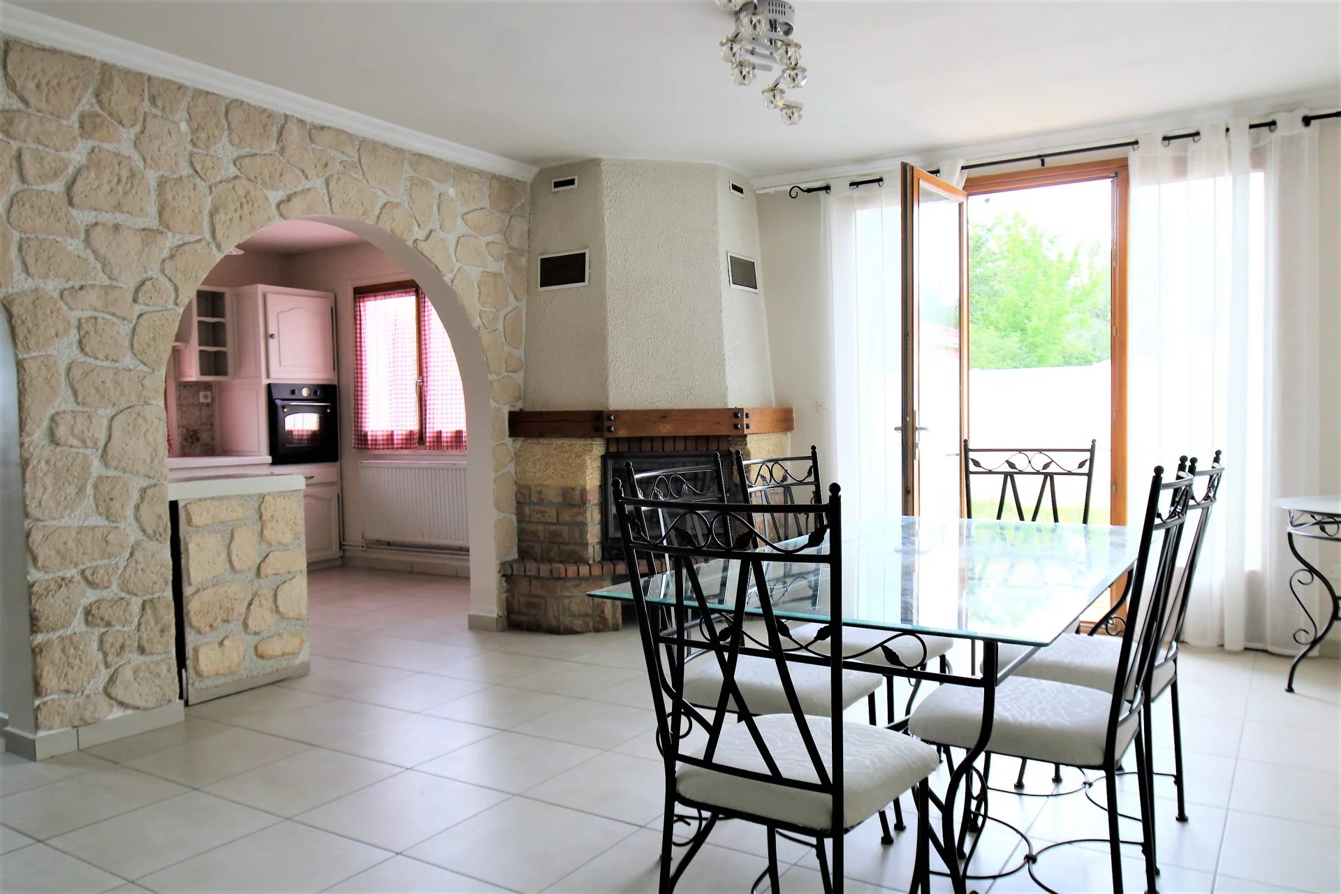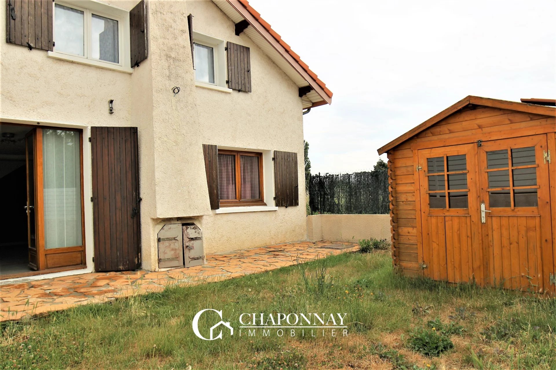 Belle maison familiale, mitoyenne par le garage, de 129m² habitables + garage sur un terrain de 523m² (environ 360m² utiles). Elle se compose au RDC d'une belle pièce de vie (avec cuisine semi-ouverte) ouvrant sur la terrasse et le jardin exposé Sud, une salle d'eau, un WC séparé et une pièce annexe de 17m² pouvant convenir pour un bureau... A l'étage: 4 chambres, une salle de bains et un second WC. Le côté Nord du terrain permet le stationnement de plusieurs véhicules. Terrain complètement clos et portail motorisé. Chauffage central électrique et cheminée à foyer fermé. A visiter sans attendre avec Chaponnay Immobilier