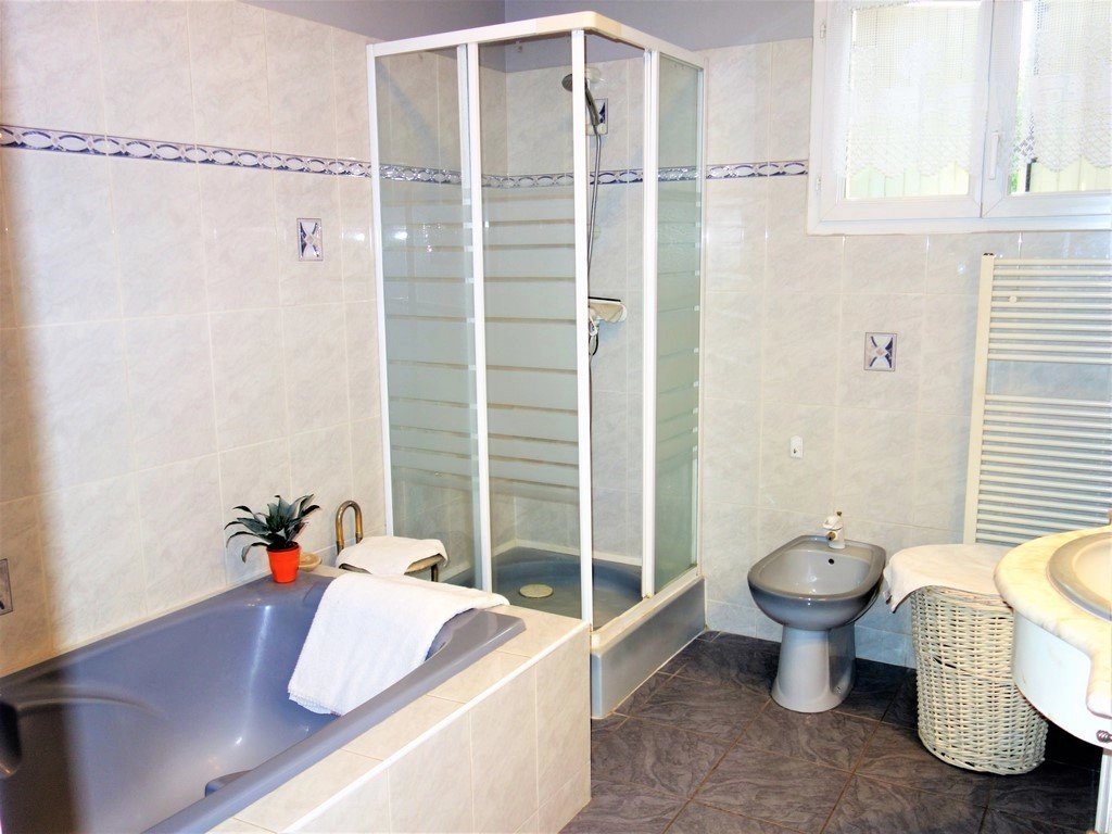 Très belle maison de construction traditionnelle de 145m² composée en rez-de-jardin d'une cuisine séparée, un salon-séjour de 45m² avec cheminée, 3 chambres, une salle de bains et un WC.