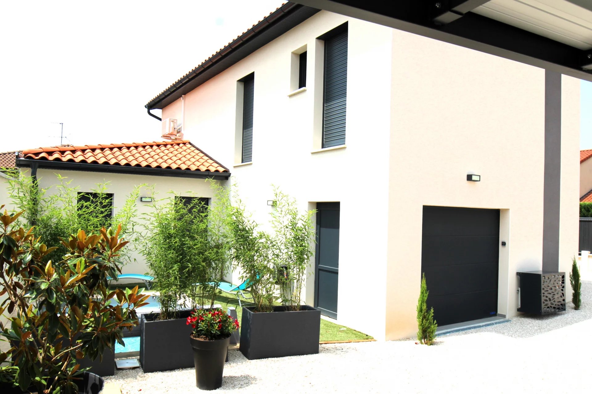 Les prestations comprennent: menuiseries ALU double vitrage, volets roulants à lames orientables électriques et centralisés, chauffage et climatisation par PAC gainable et au sol pour le RDC, visiophone, portail et porte de garage motorisés, alarme, arrosage des massifs automatisé...