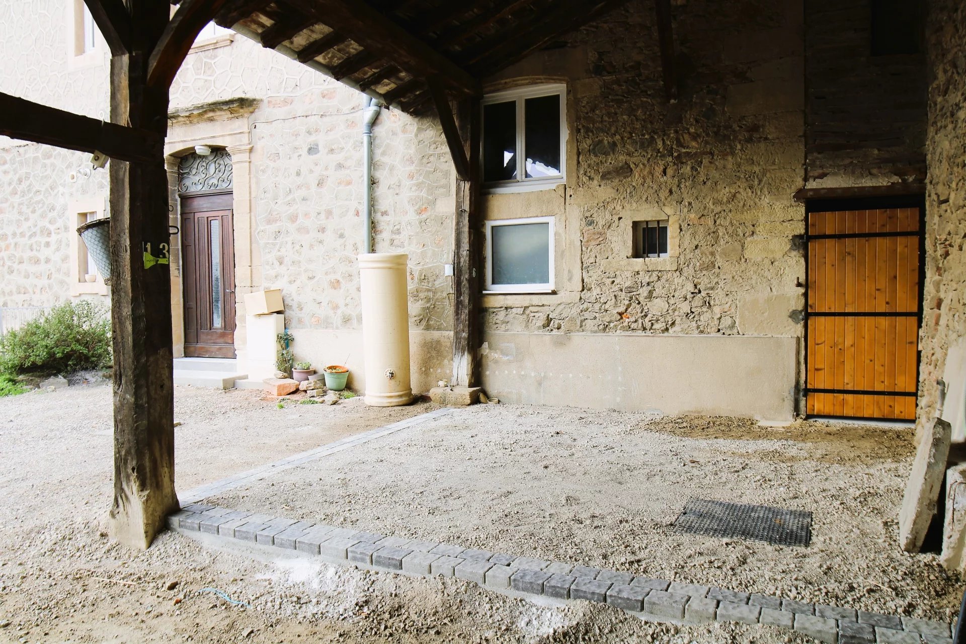 Une place de stationnement couverte sous une grange intégrant un puits restauré !
