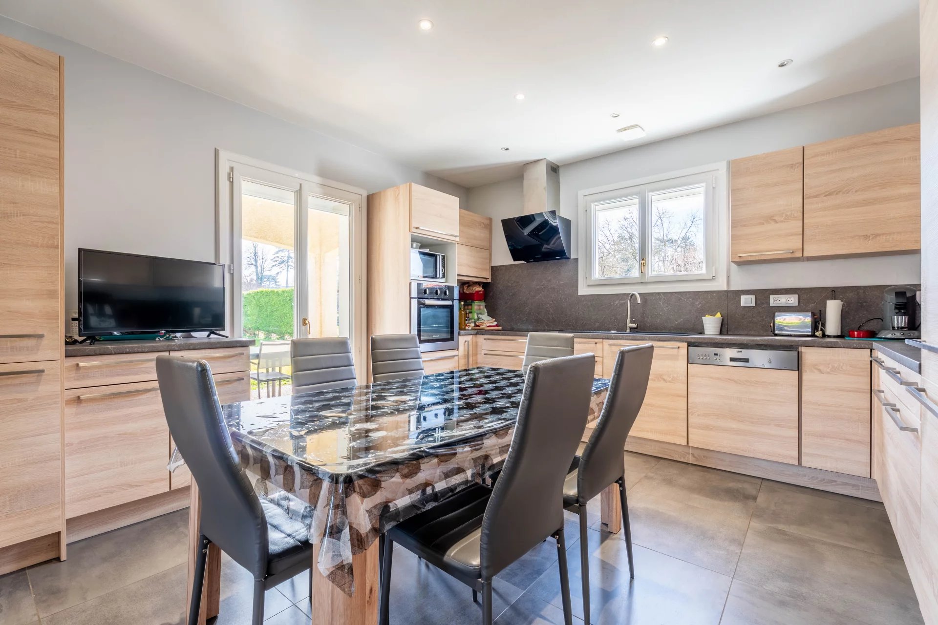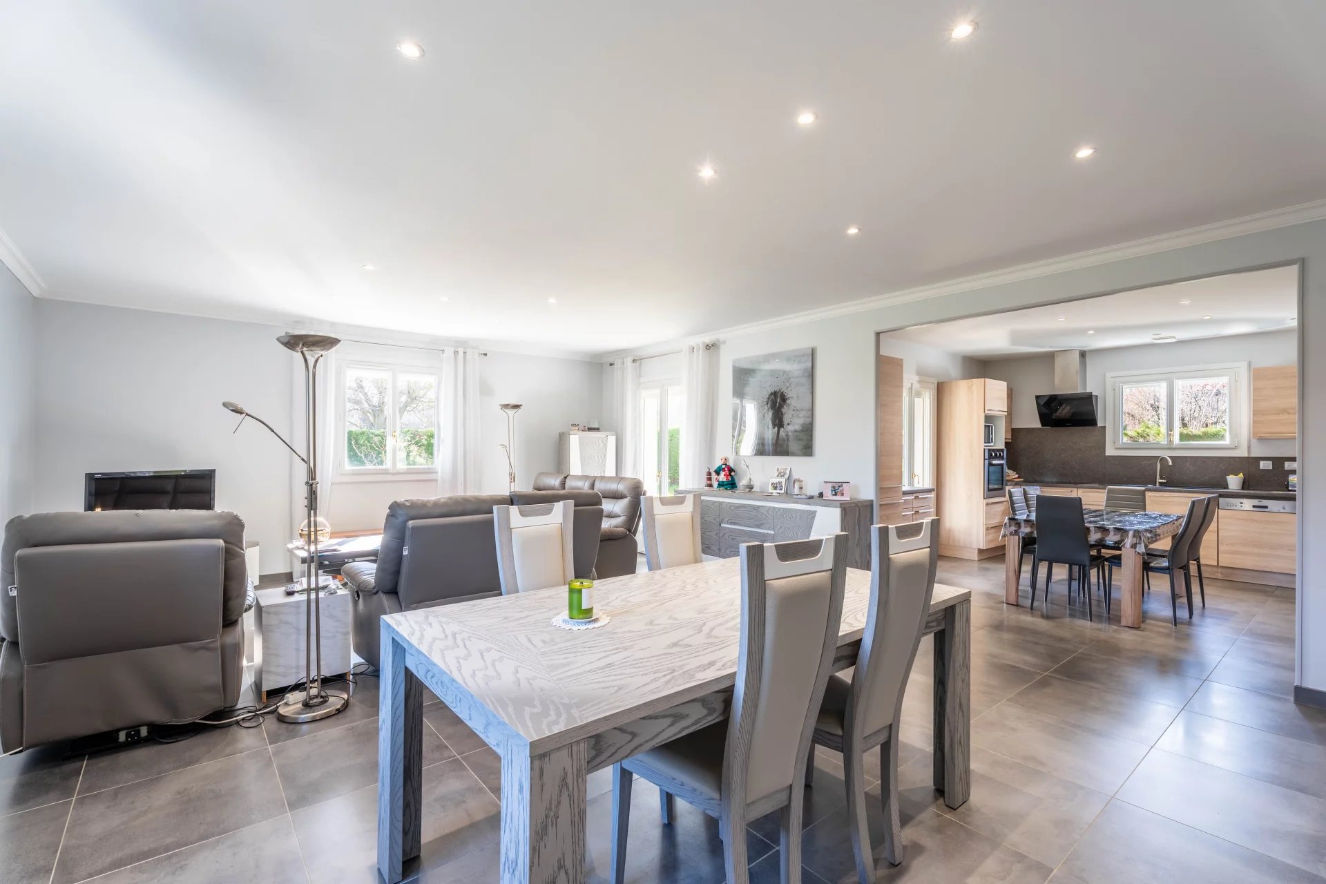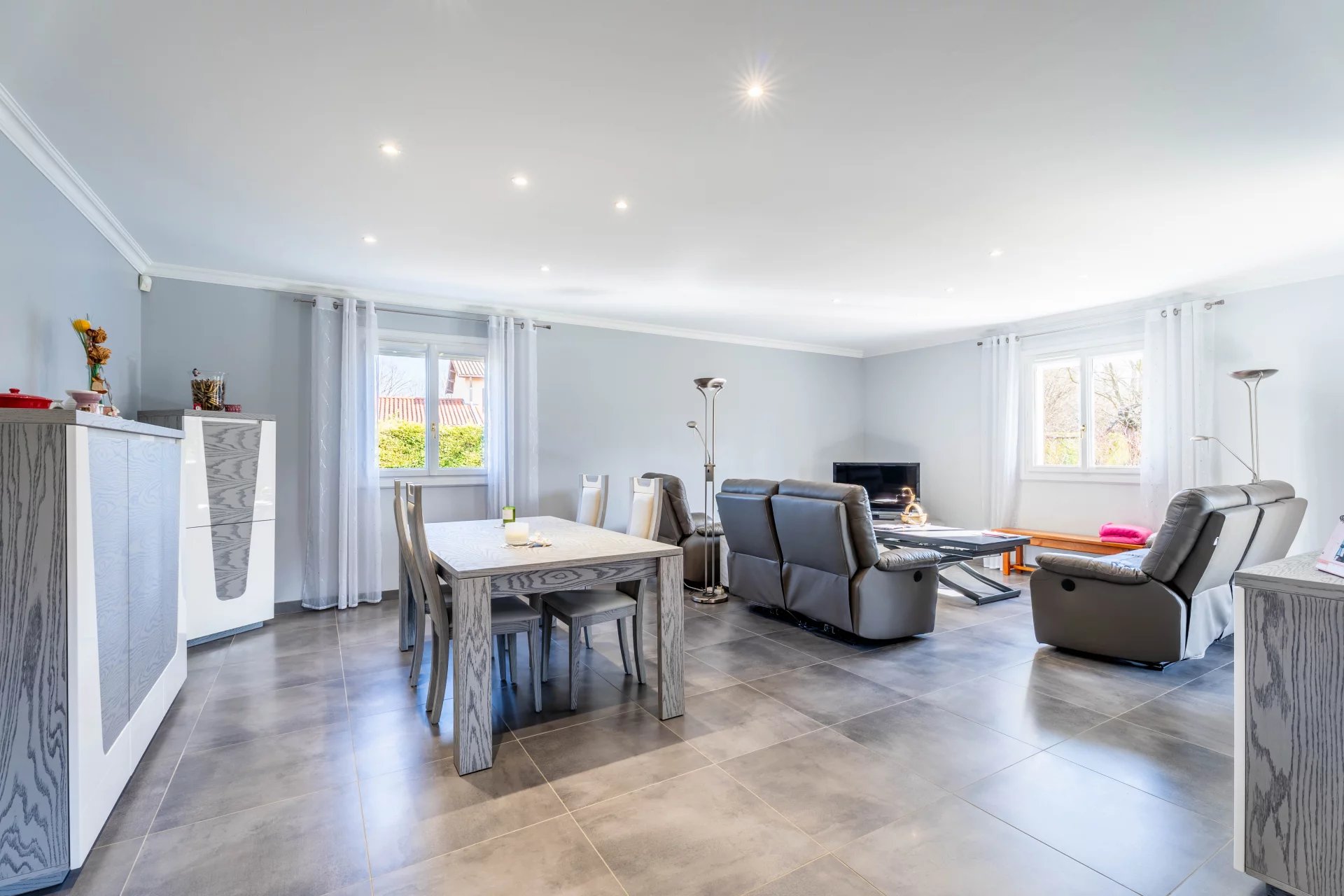 A SImandres, proche du centre du village et située dans un petit lotissement au calme, nous vous proposons cette belle maison de plain-pied de 120m² habitables. Elle se compose d'une grande pièce de vie de 56m² avec une cuisine récente et totalement équipée, 3 chambres, une salle d'eau et un WC séparé. Un garage attenant de 37m² avec point d'eau complète cette maison très bien entretenue. Chauffage au sol par PAC eau/eau, menuiseries PVC, volets roulants électriques, isolation des combles, salle d'eau refaite, portail motorisé, interphone... Le terrain de 1120m² plat et clos permet l'installation d'une piscine côté SUD... EXCELLENT DPE... Coup de coeur assuré !! A visiter sans tarder avec Chaponnay Immobilier
